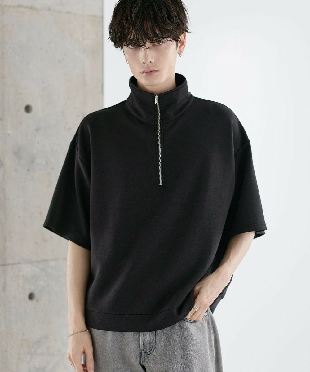 防シワ/抗ピリング ポンチ半袖ハーフジップ