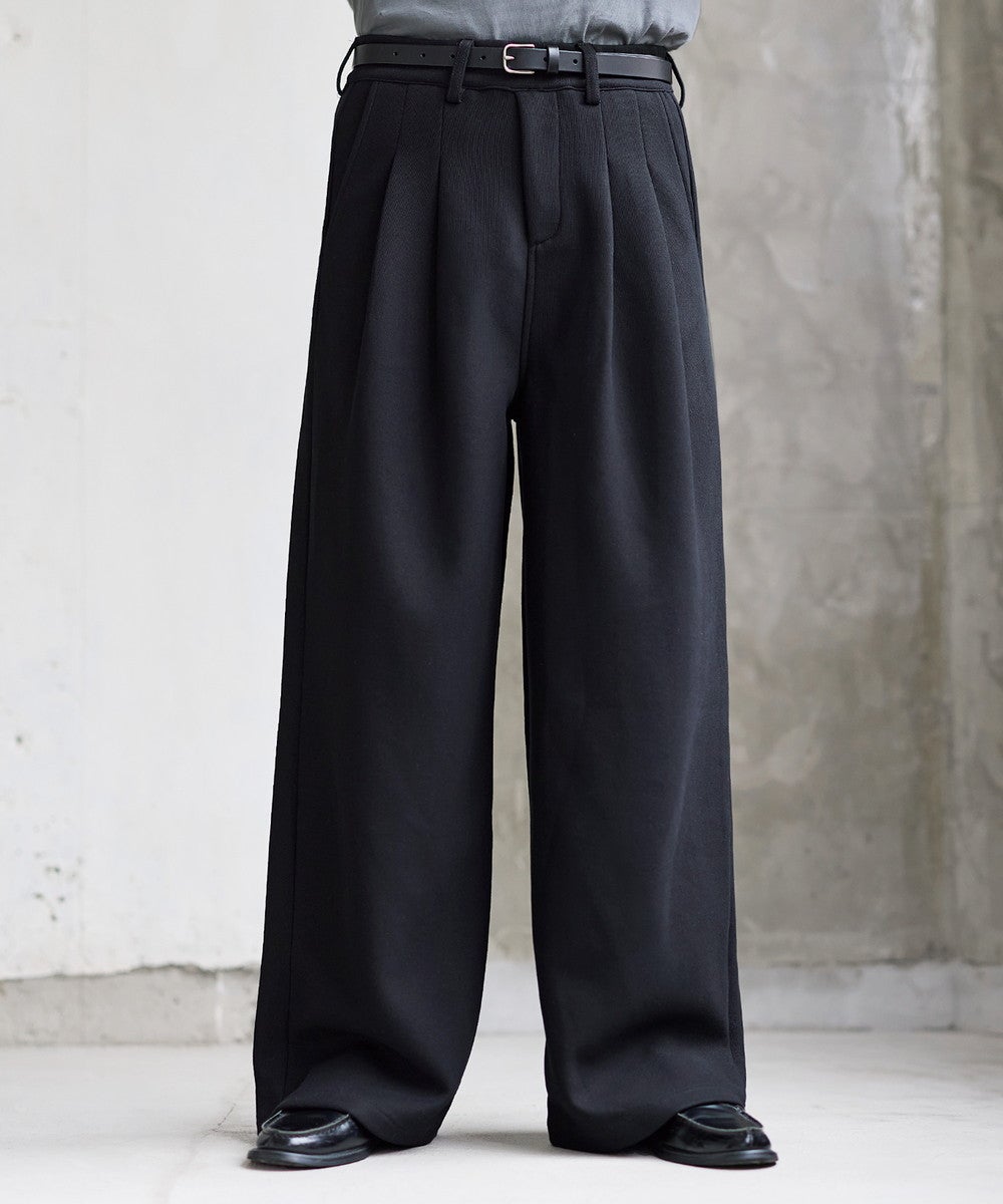 【イージーケア】コットンポンチ2タックスウェットワイドパンツ
