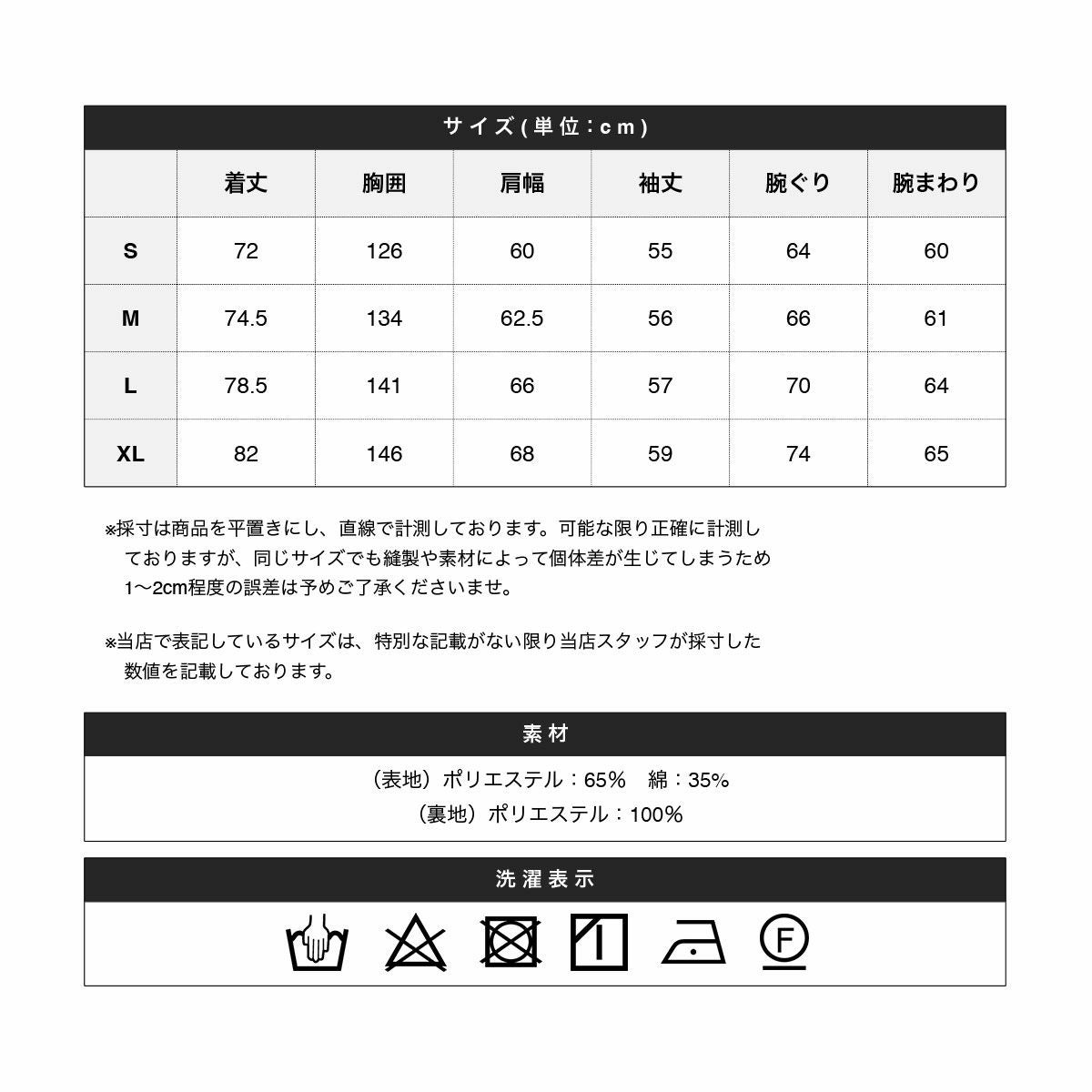 ※商品特性、縫製や素材により同サイズでも、若干の誤差が生じてしまうことを予めご了承ください。