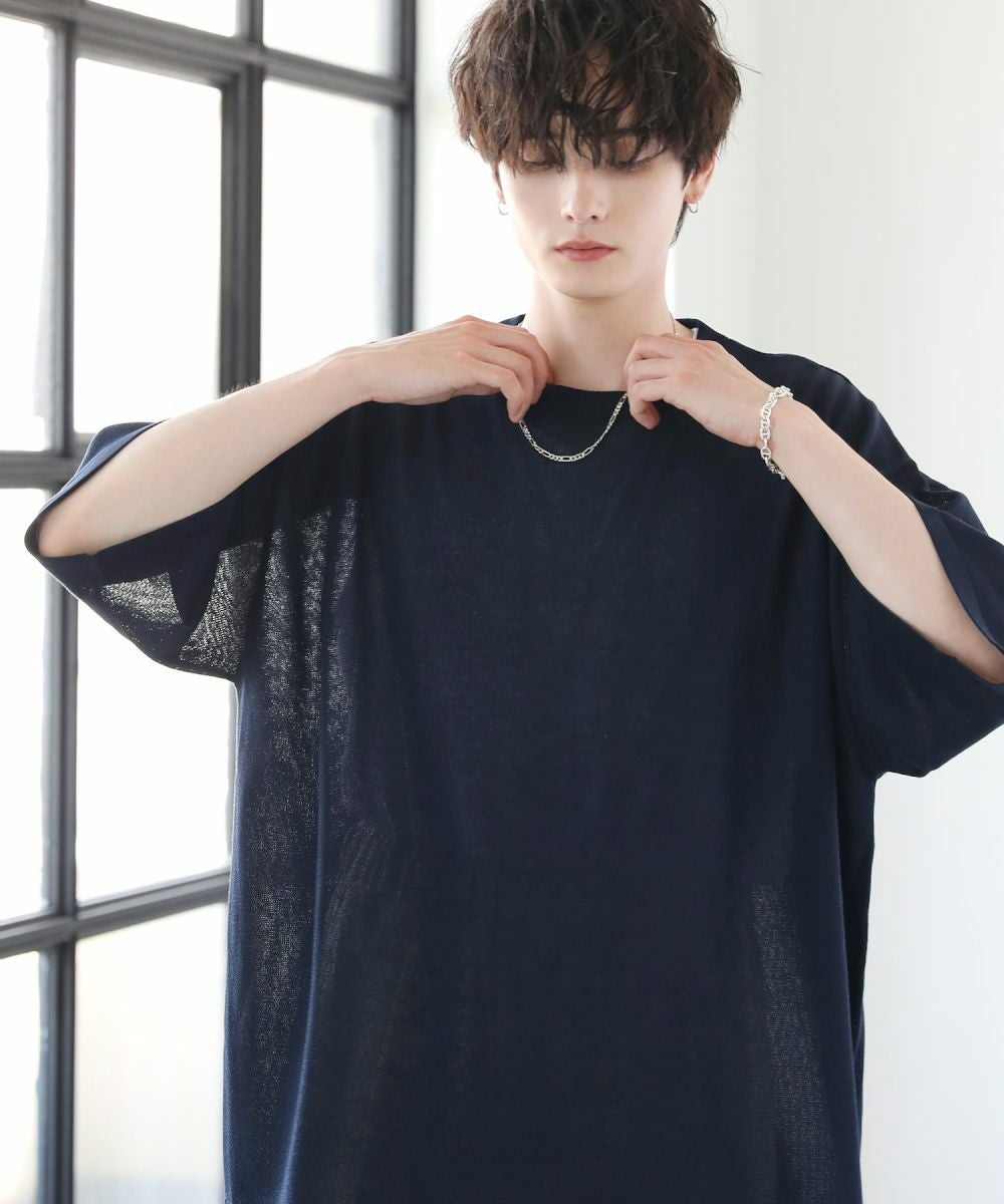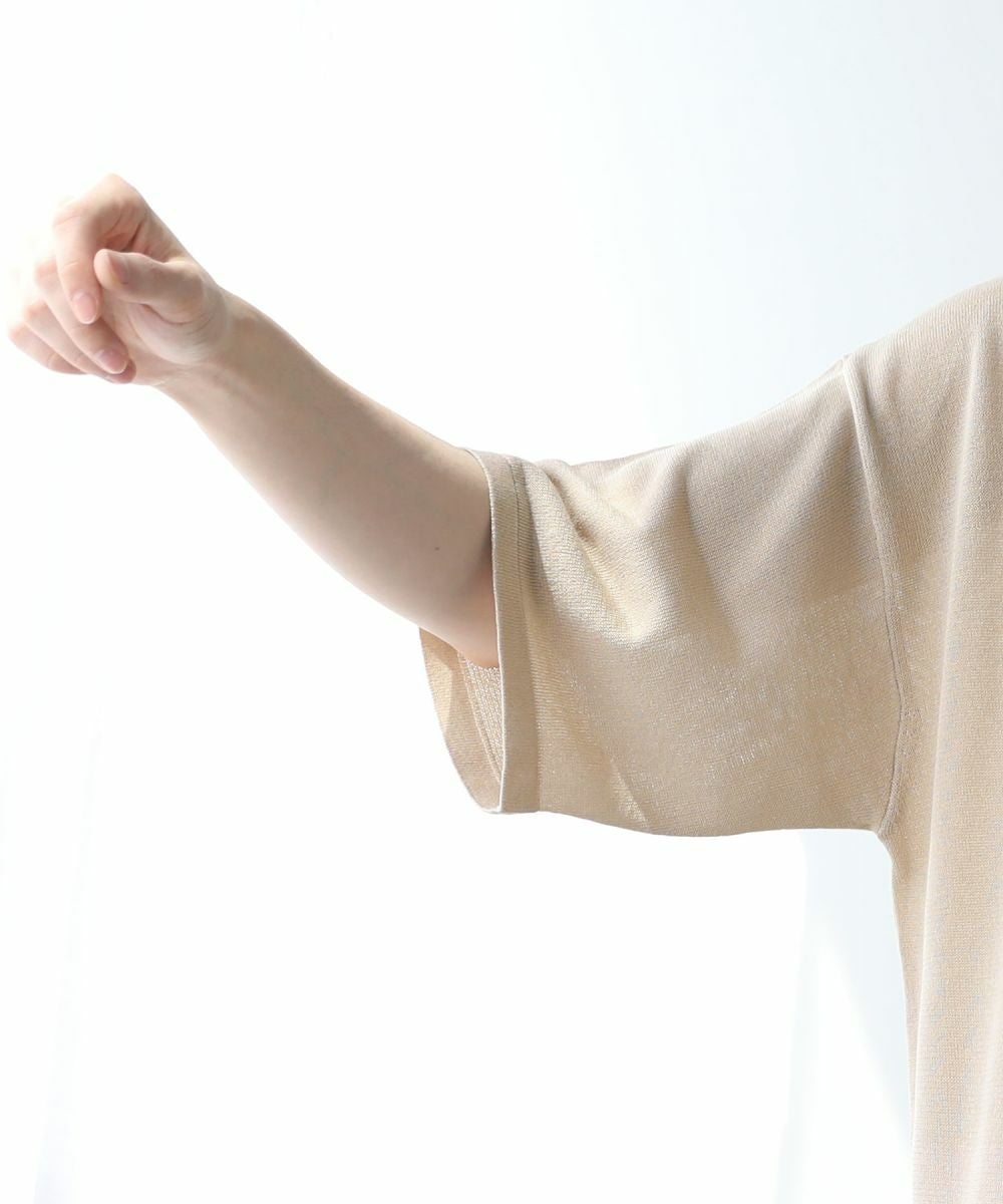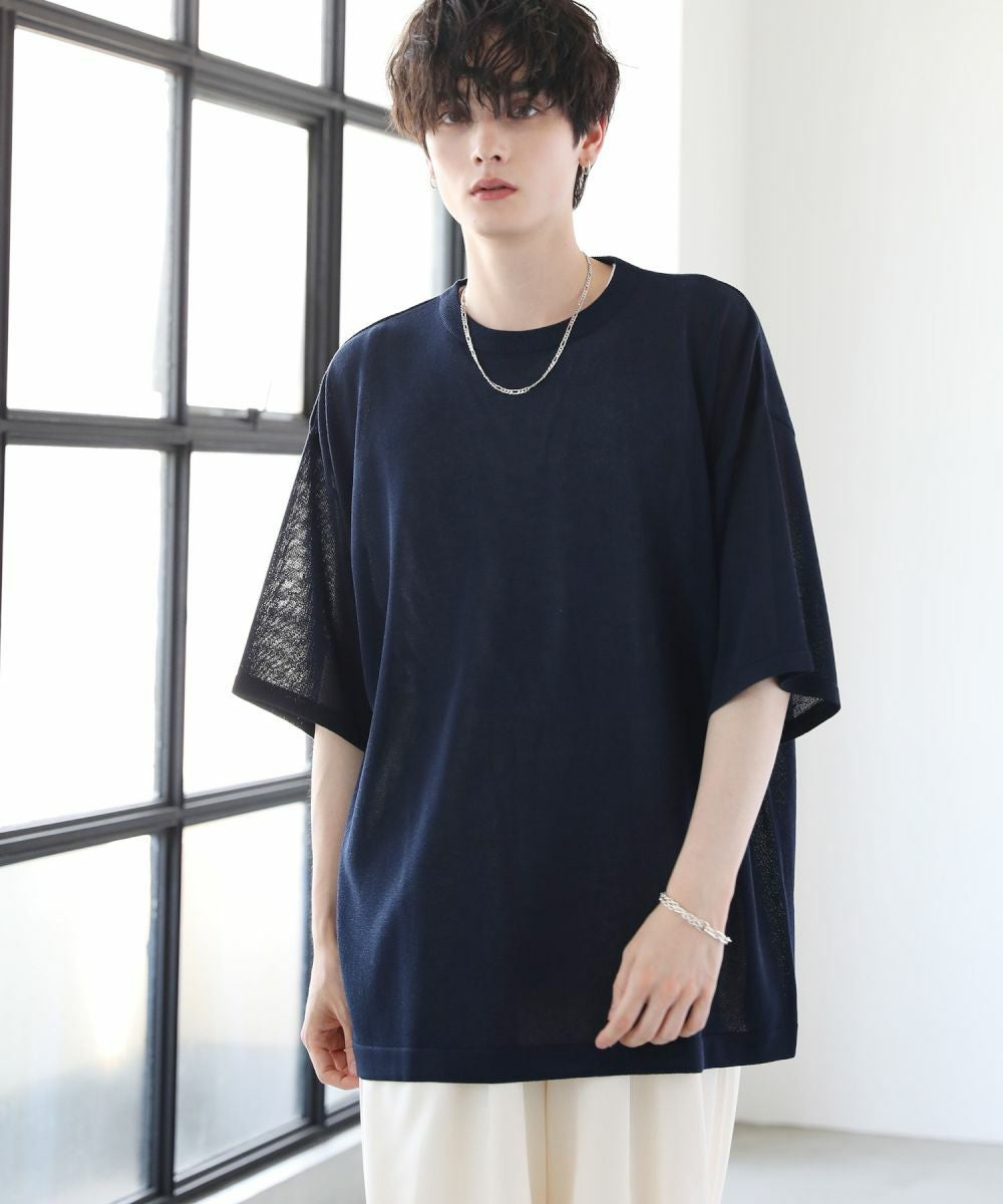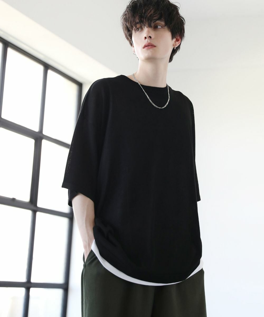 軽やかで涼しいニット編みのプルオーバー。ゆったりとしたシルエットでシアー感が印象的なサマーニット。落ち感のあるドルマンスリーブが柔らかな雰囲気かつこなれたスタイルに。ニット素材なため、Tシャツよりも上品で大人な印象を与えます。ルーズシルエットで1枚で着こなしが決まるアイテムです。