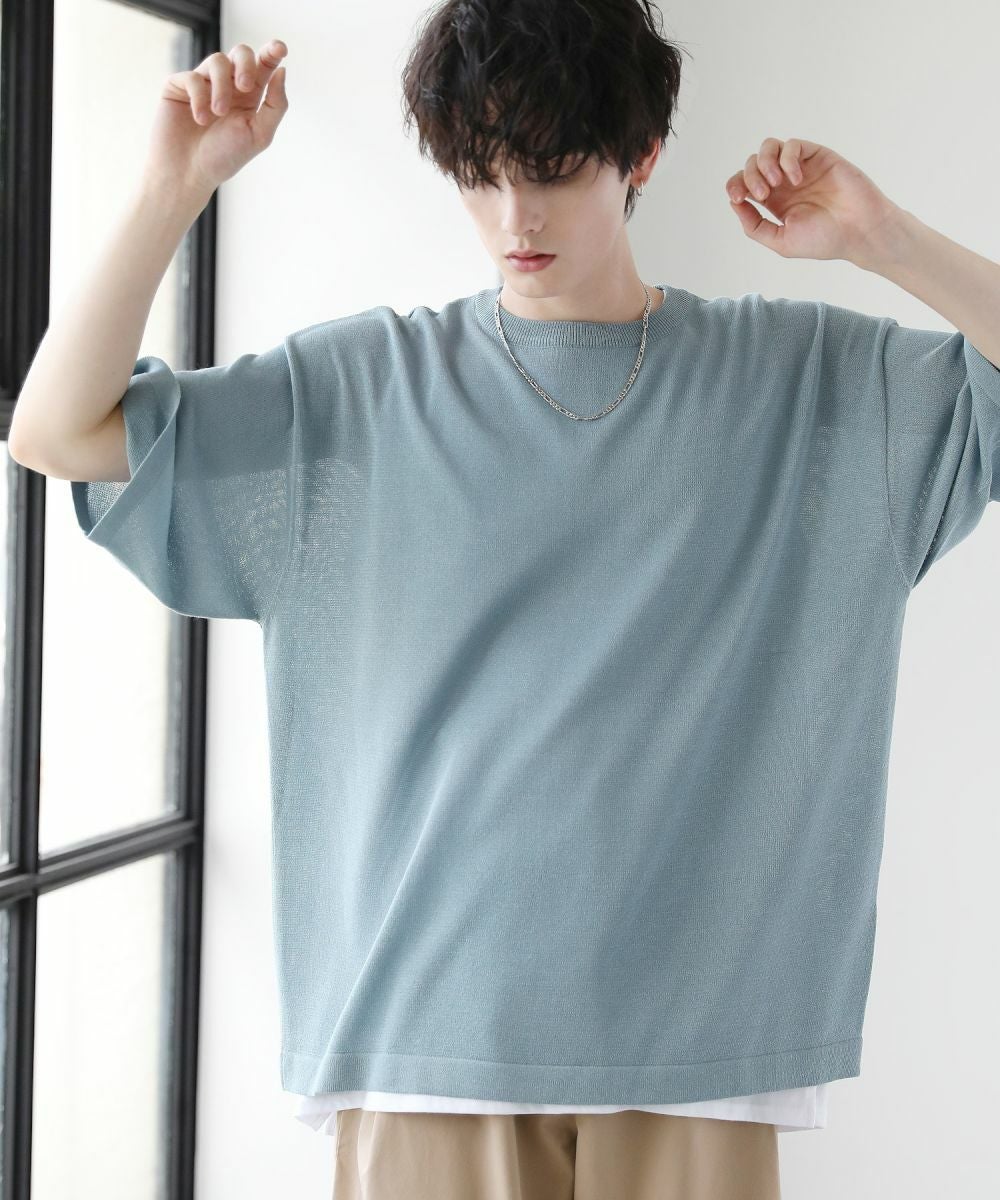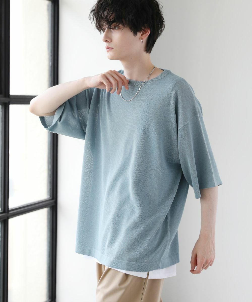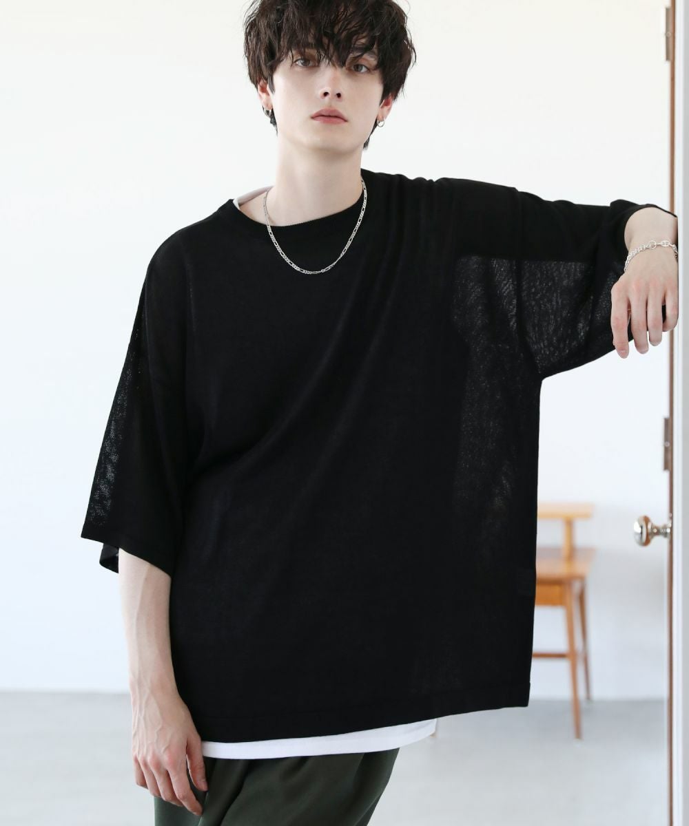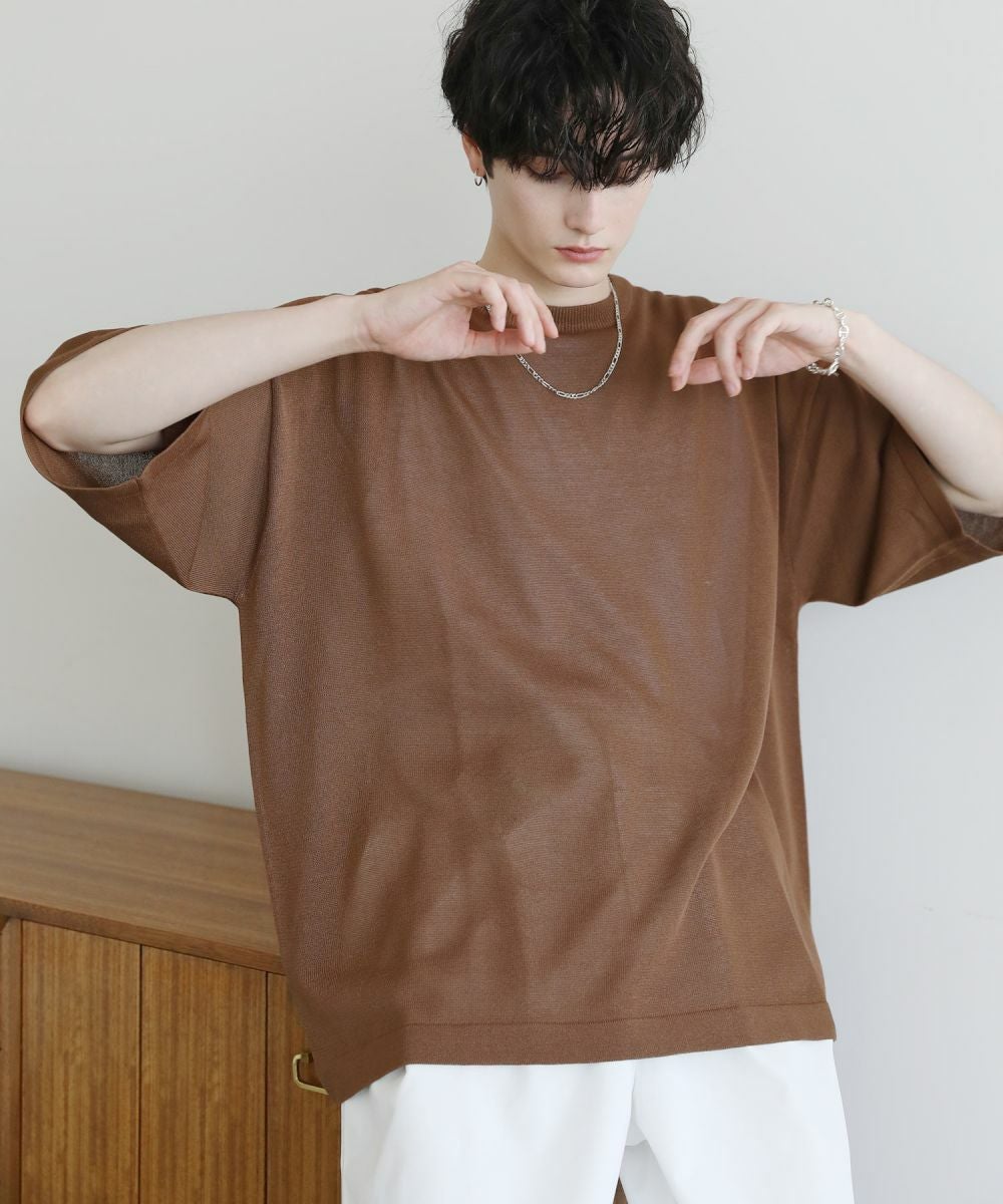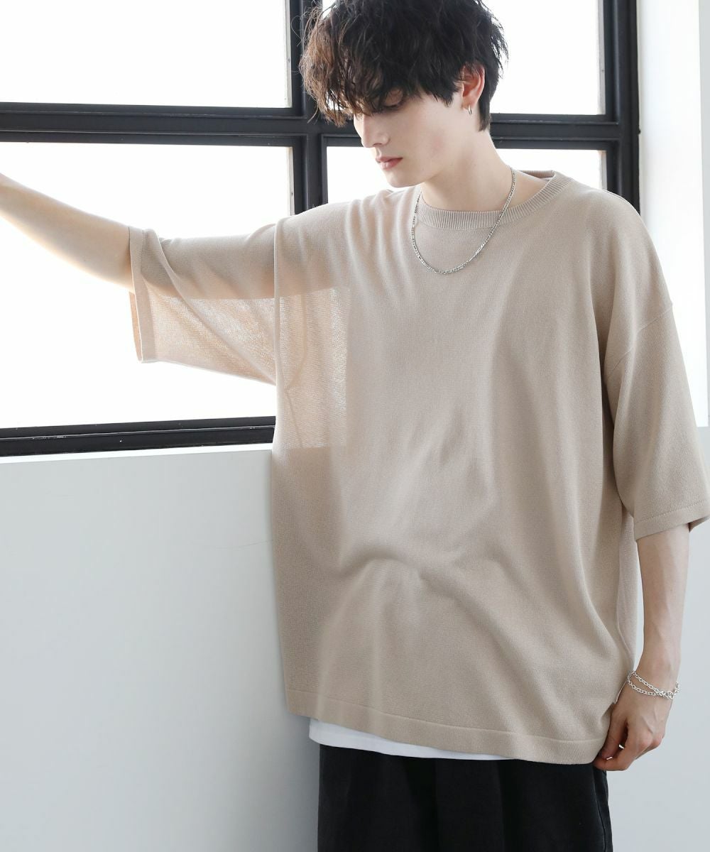 軽やかで涼しいニット編みのプルオーバー。ゆったりとしたシルエットでシアー感が印象的なサマーニット。落ち感のあるドルマンスリーブが柔らかな雰囲気かつこなれたスタイルに。ニット素材なため、Tシャツよりも上品で大人な印象を与えます。ルーズシルエットで1枚で着こなしが決まるアイテムです。