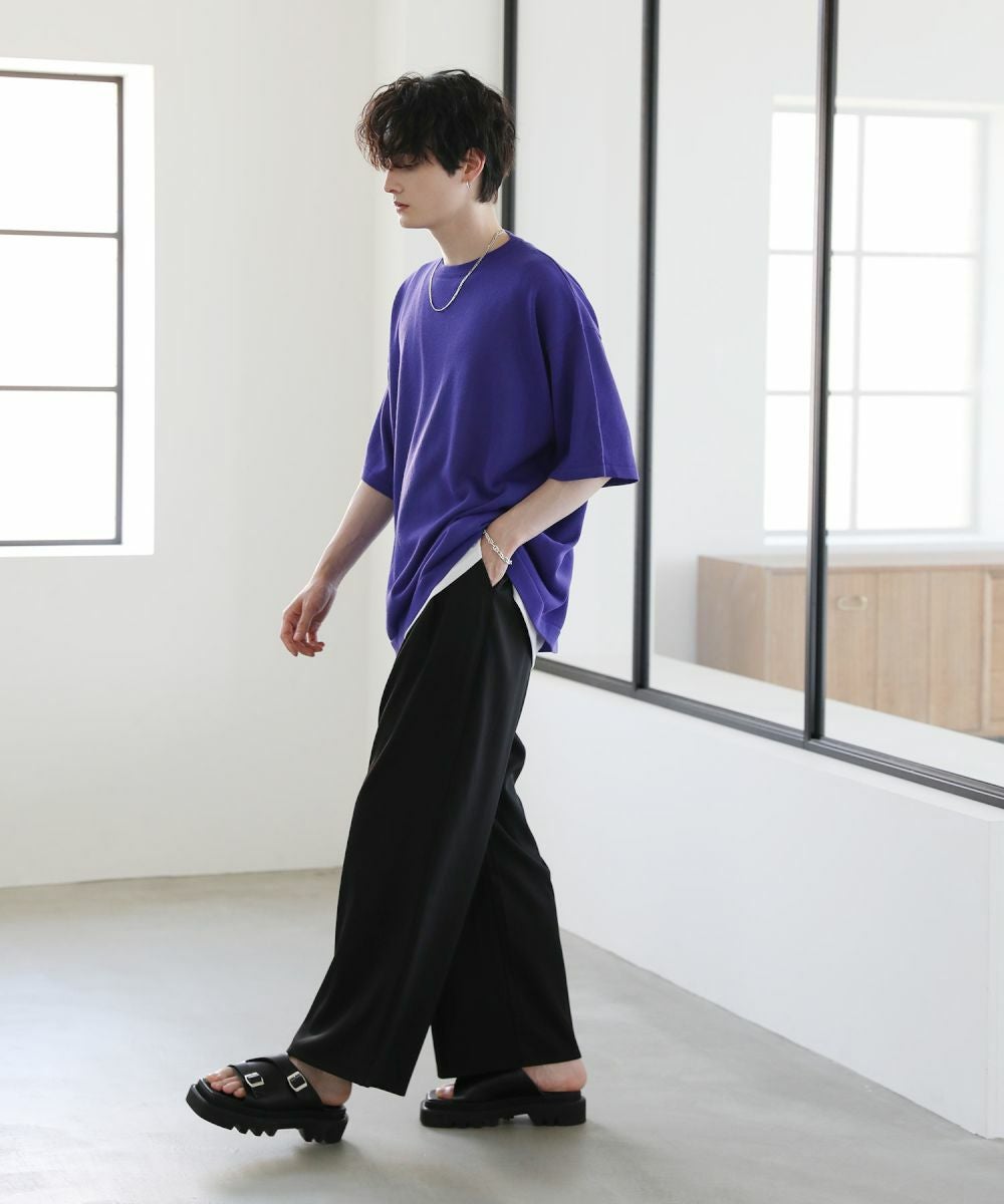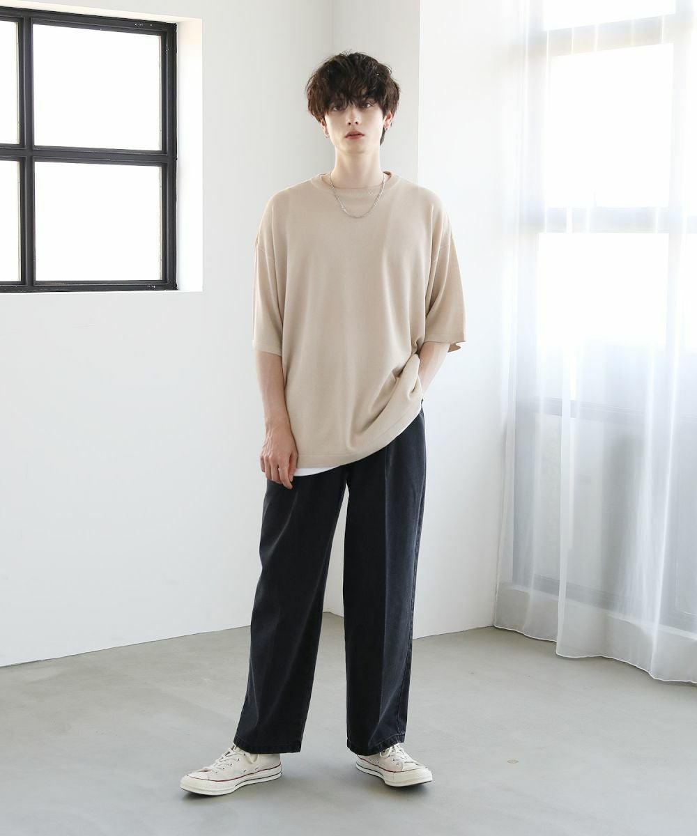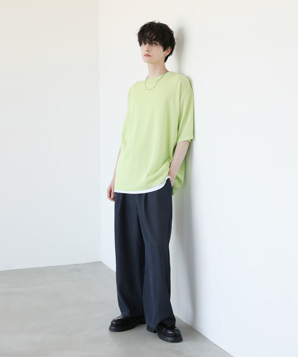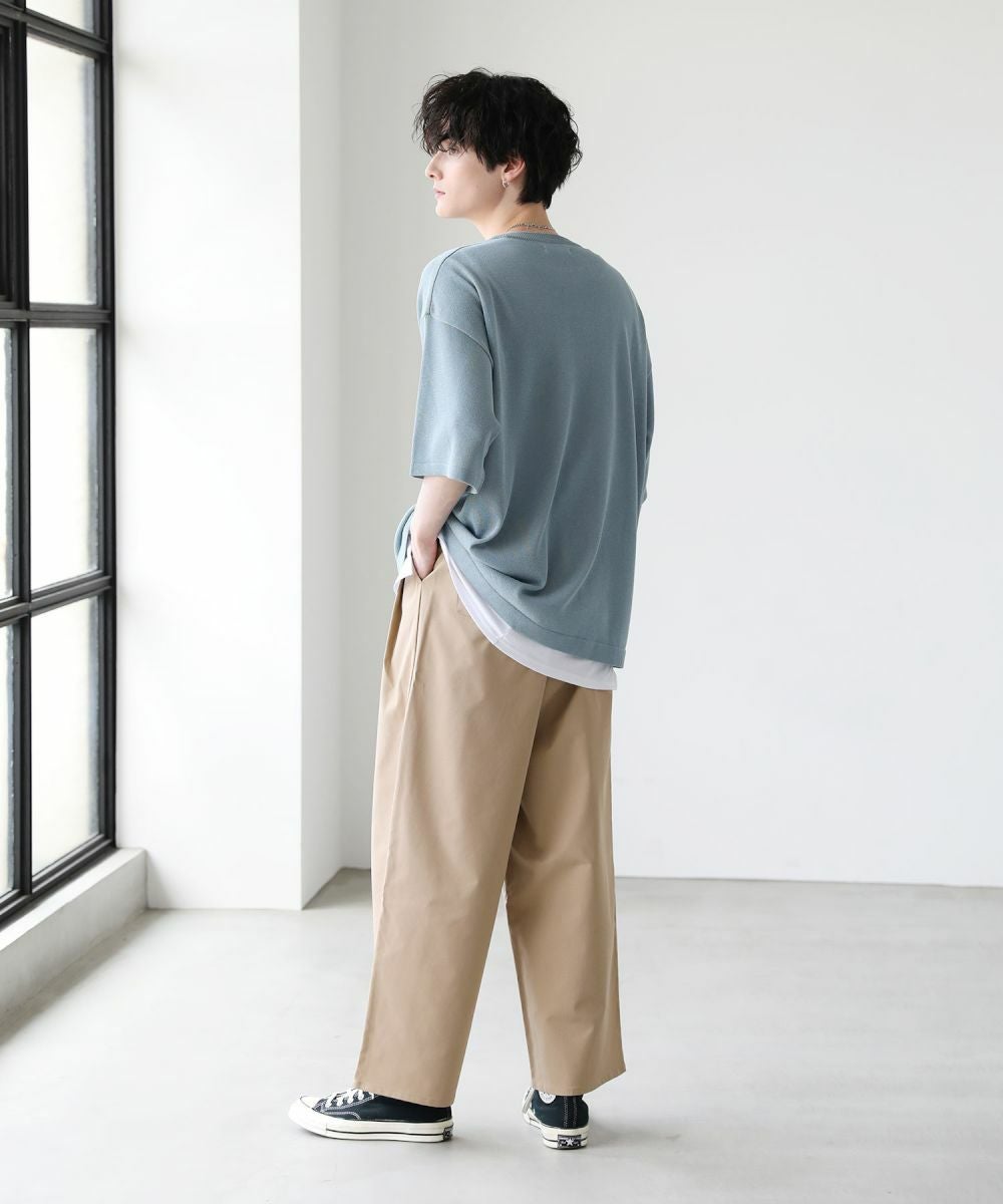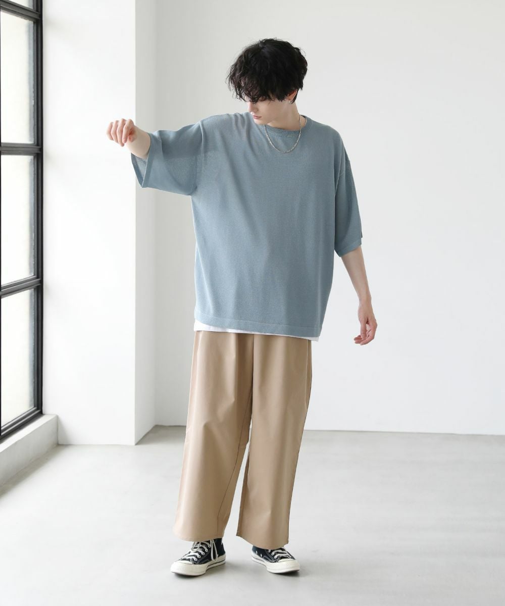 さらさらとした清涼感ある肌触りの接触冷感素材。涼しい着心地で、暑さからのストレスを感じにくくしてくれます。また、ざっくりとした編み地が外からの空気を取り入れてくれるので、汗ばむ季節も通気性が保たれ快適な着心地です。