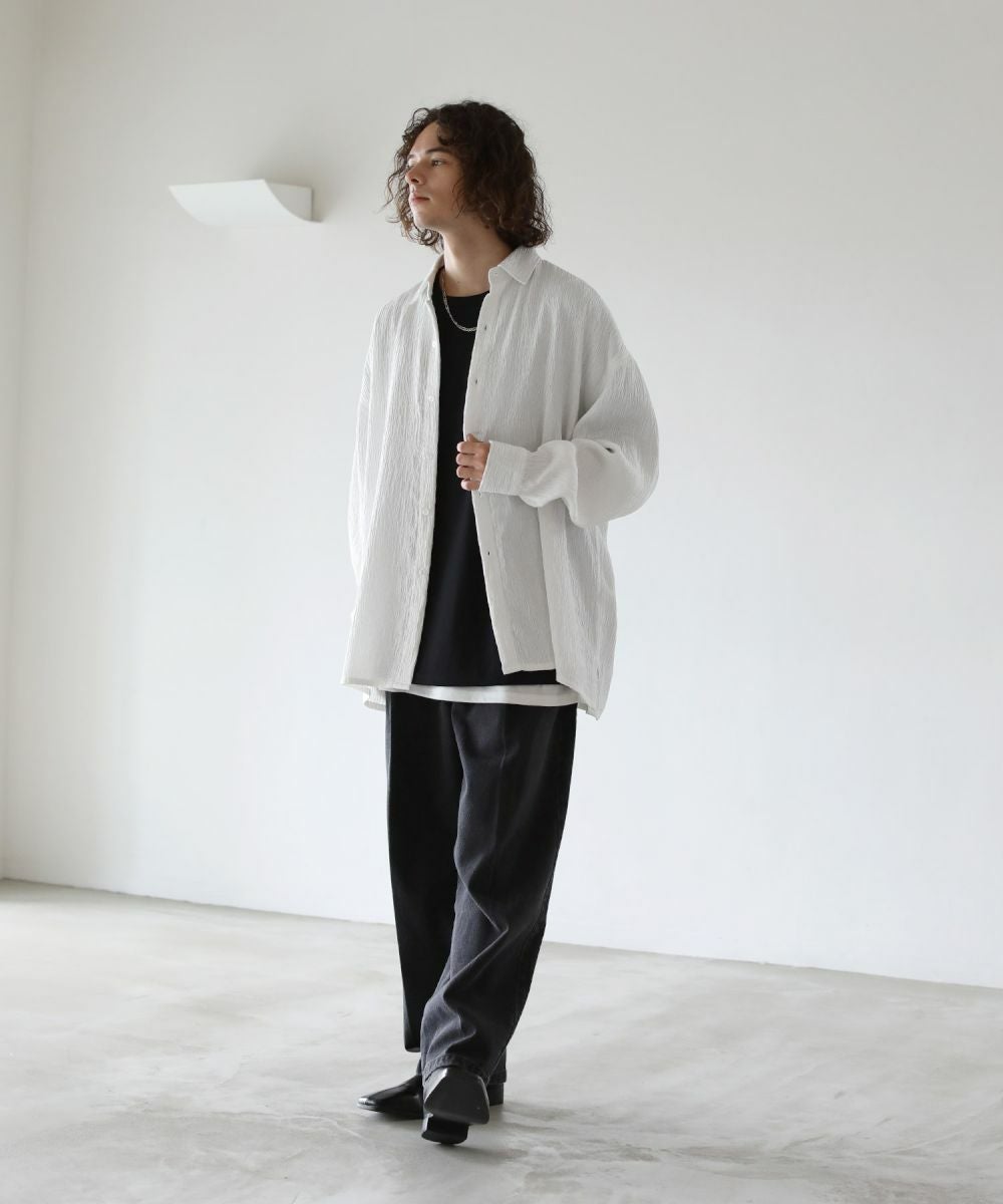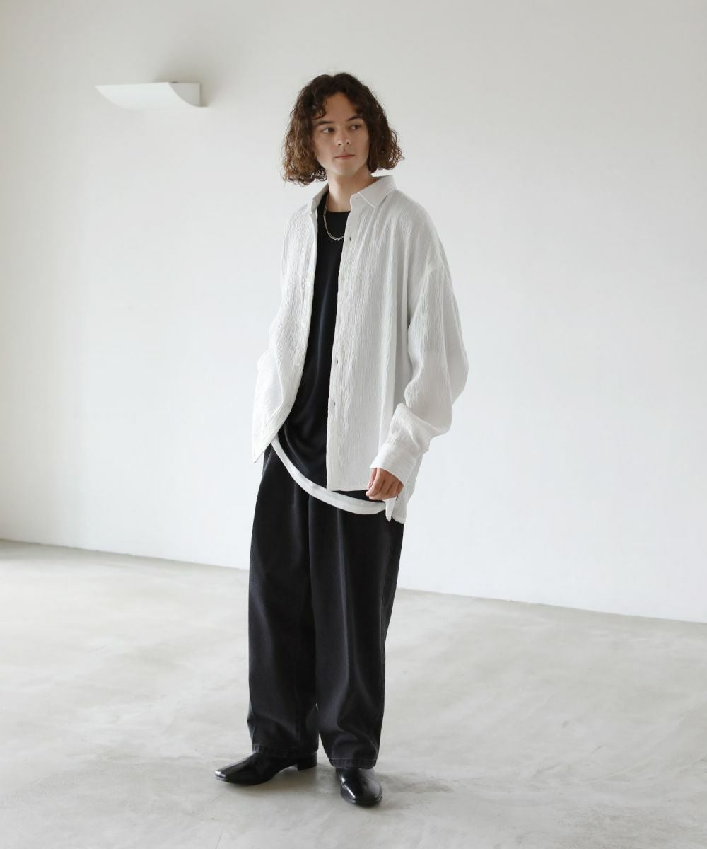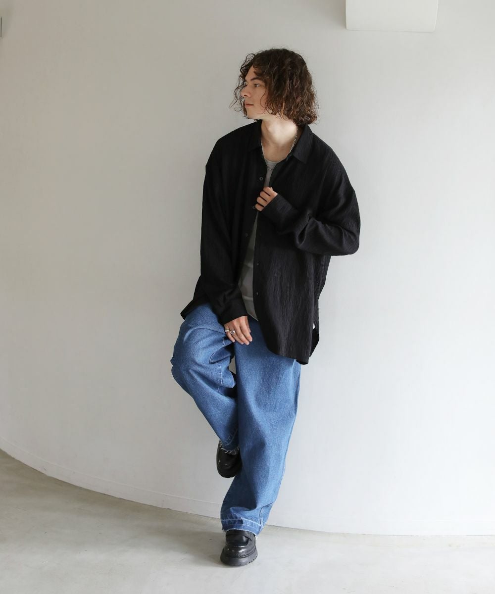 ヘビーウェイト裾フリンジワイドデニムパンツ