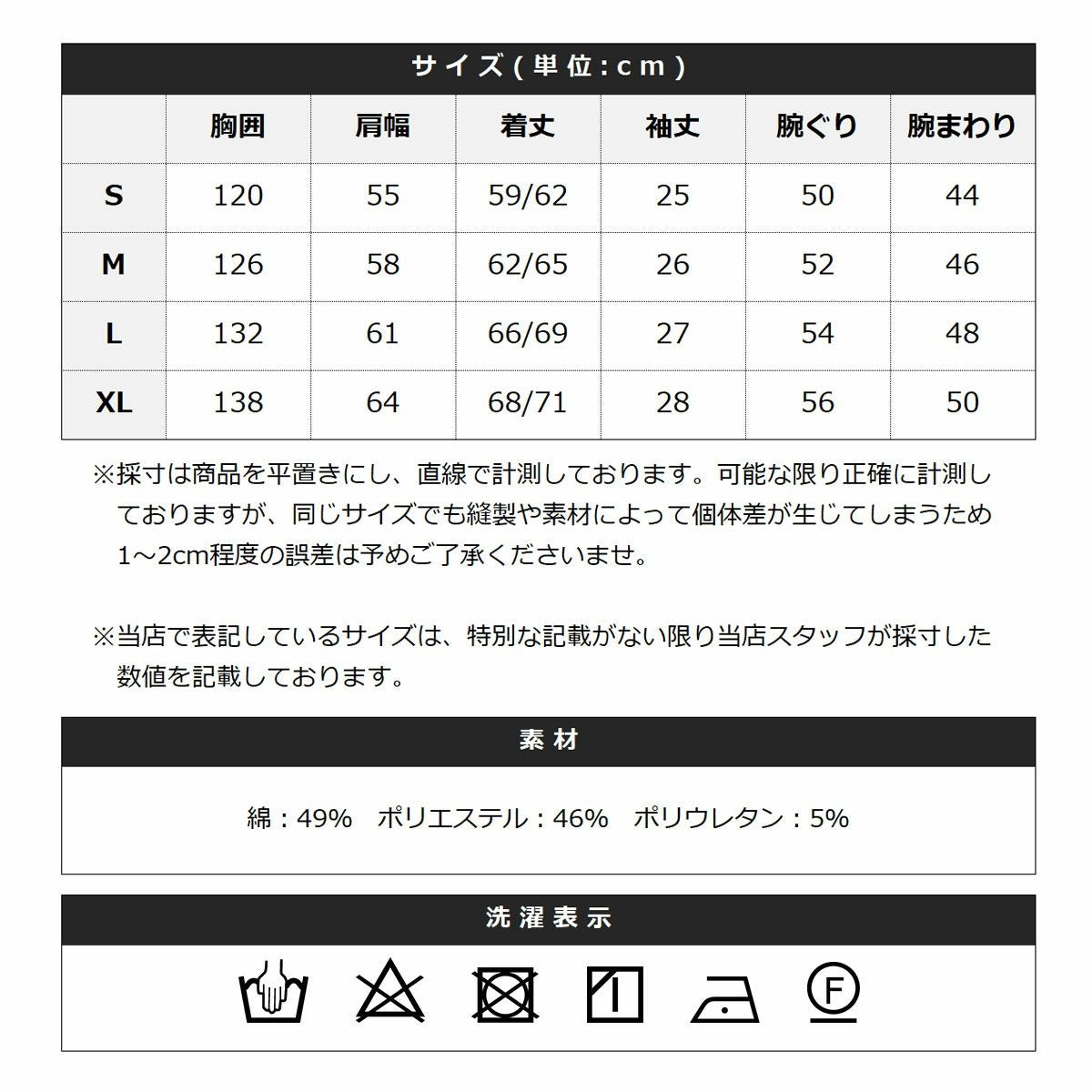 綿:49% ポリエステル:46% ポリウレタン:5%