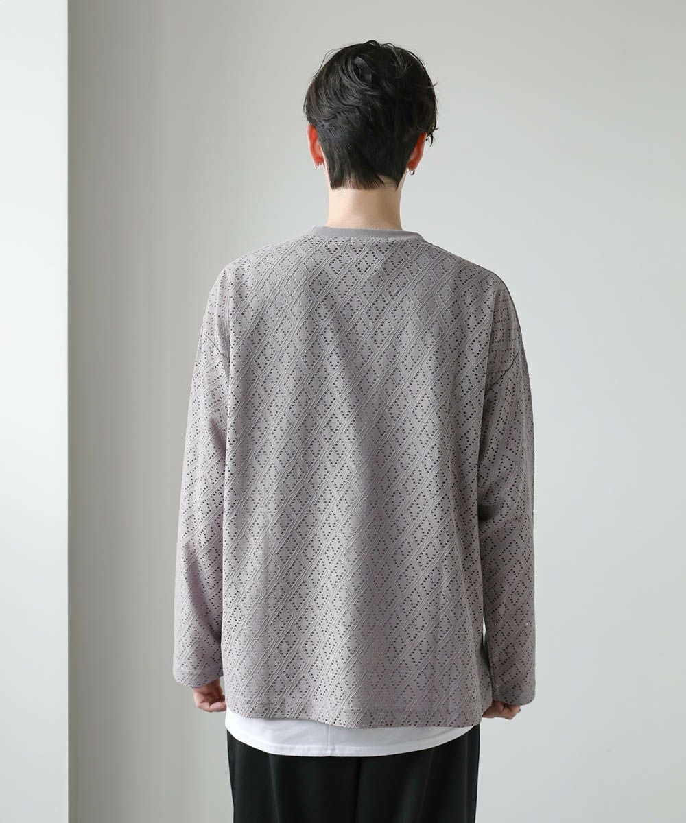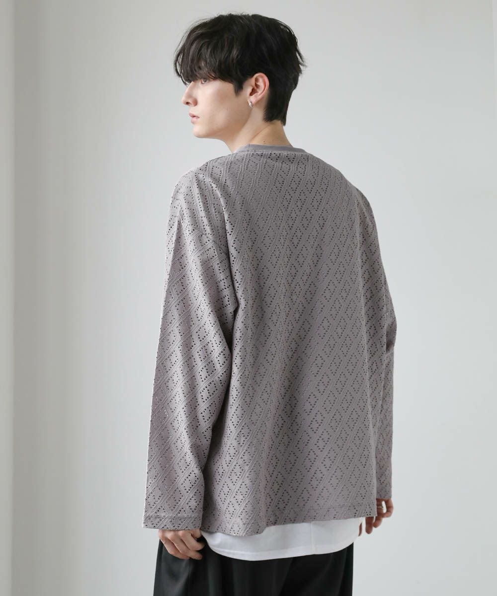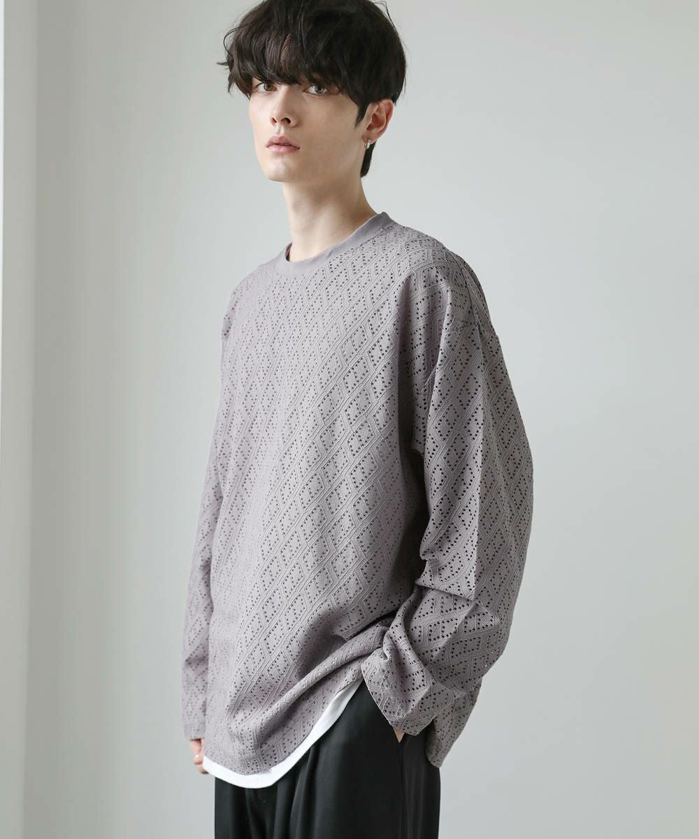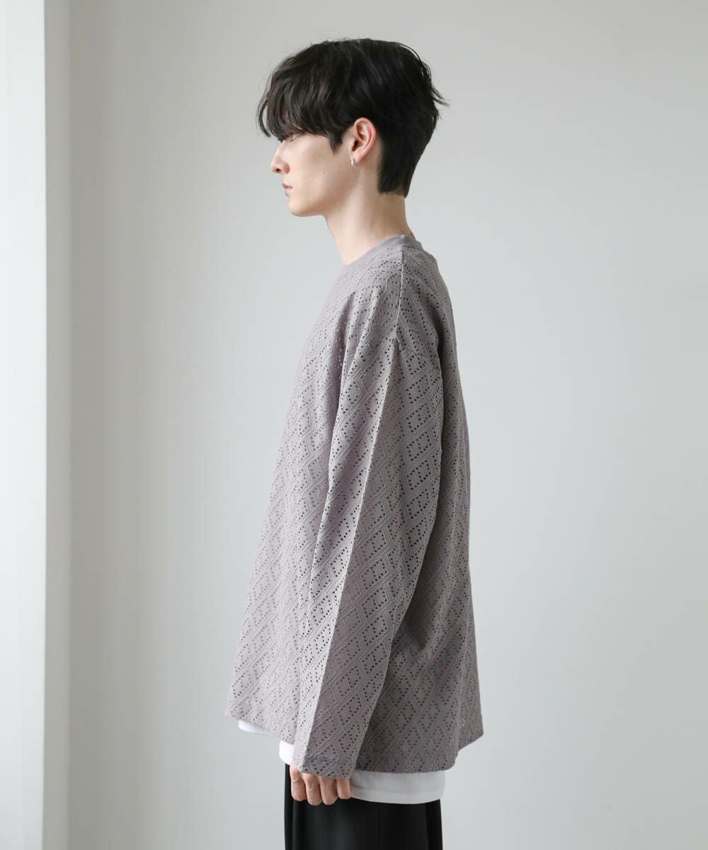透け感のあるレース生地が、トレンドの着こなしを作るプルオーバー。着回しのしやすいシンプルなクルーネックのデザインながら、レース生地がこなれた印象に見せてくれます。透かし編みの抜け感と、身幅や袖にゆとりを持たせたルーズなシルエットが魅力の1枚です。裾にはサイドスリットを施し、デザインとしてはもちろん動きやすいのもポイント。さらっと軽い着心地で、秋や春など季節の変わり目に活躍するアイテムです。