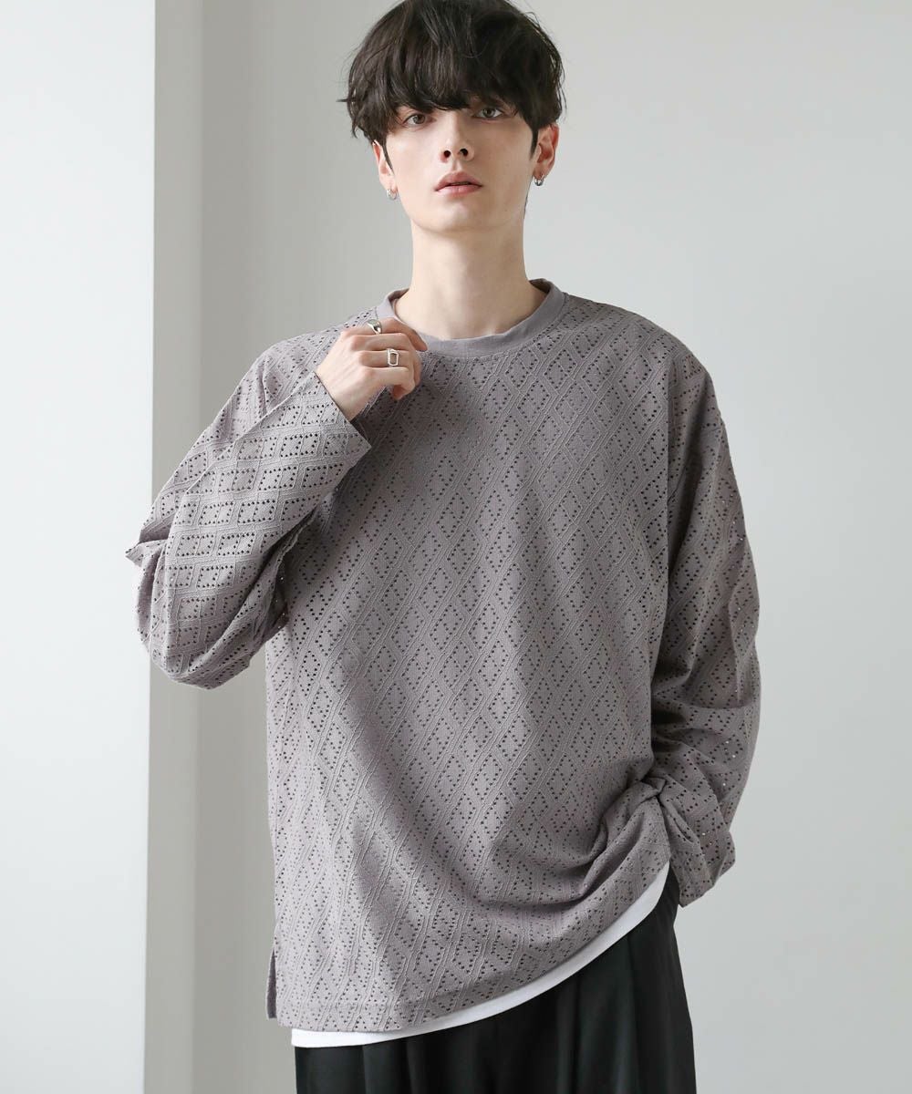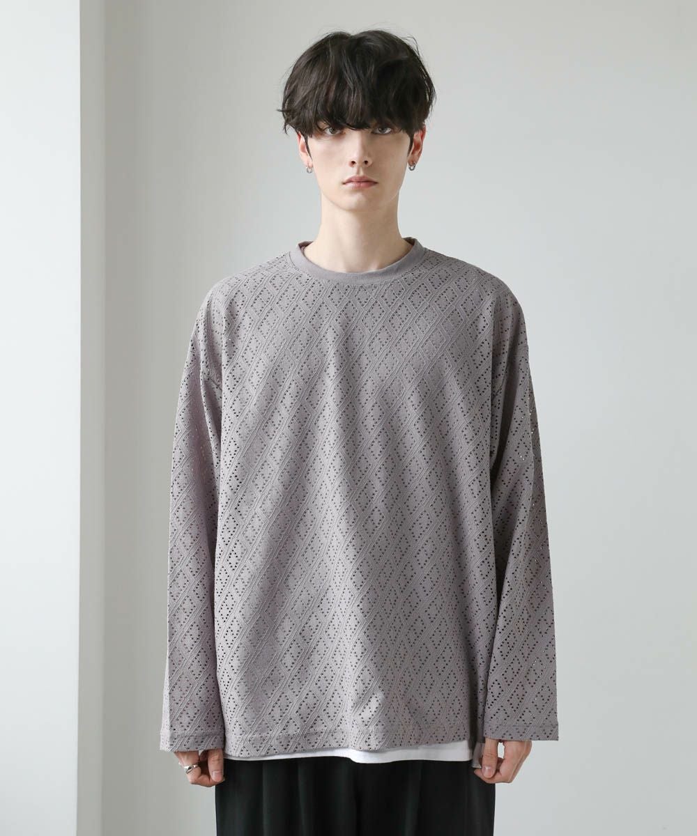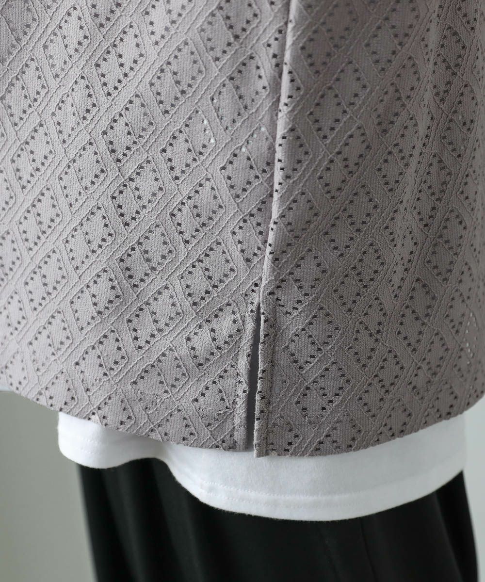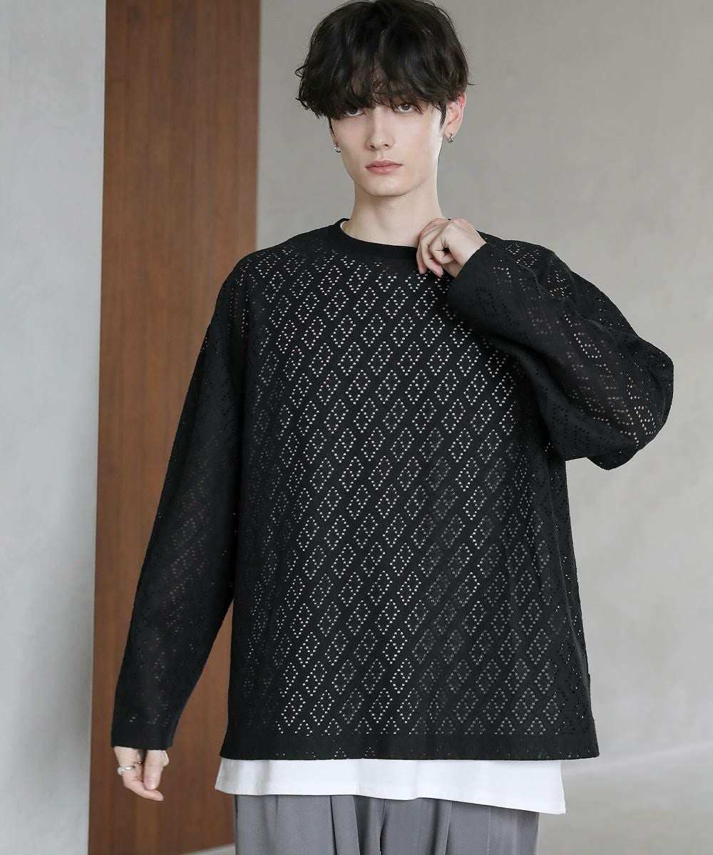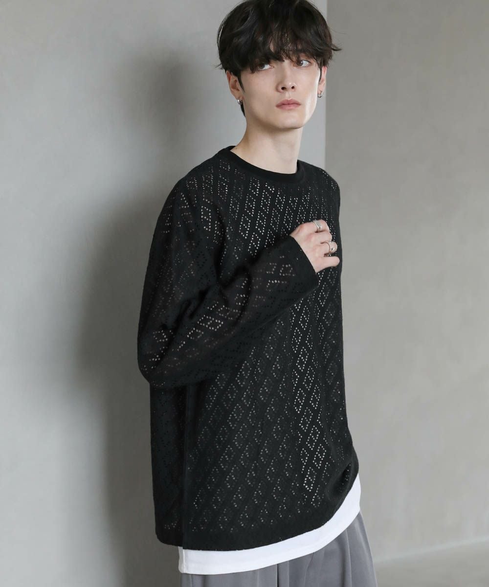 透け感のあるレース生地が、トレンドの着こなしを作るプルオーバー。着回しのしやすいシンプルなクルーネックのデザインながら、レース生地がこなれた印象に見せてくれます。透かし編みの抜け感と、身幅や袖にゆとりを持たせたルーズなシルエットが魅力の1枚です。裾にはサイドスリットを施し、デザインとしてはもちろん動きやすいのもポイント。さらっと軽い着心地で、秋や春など季節の変わり目に活躍するアイテムです。