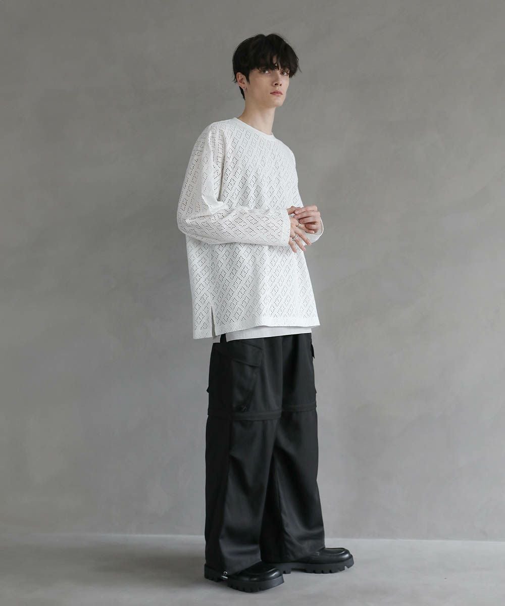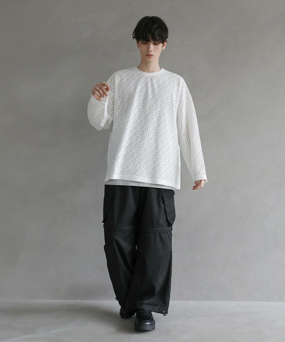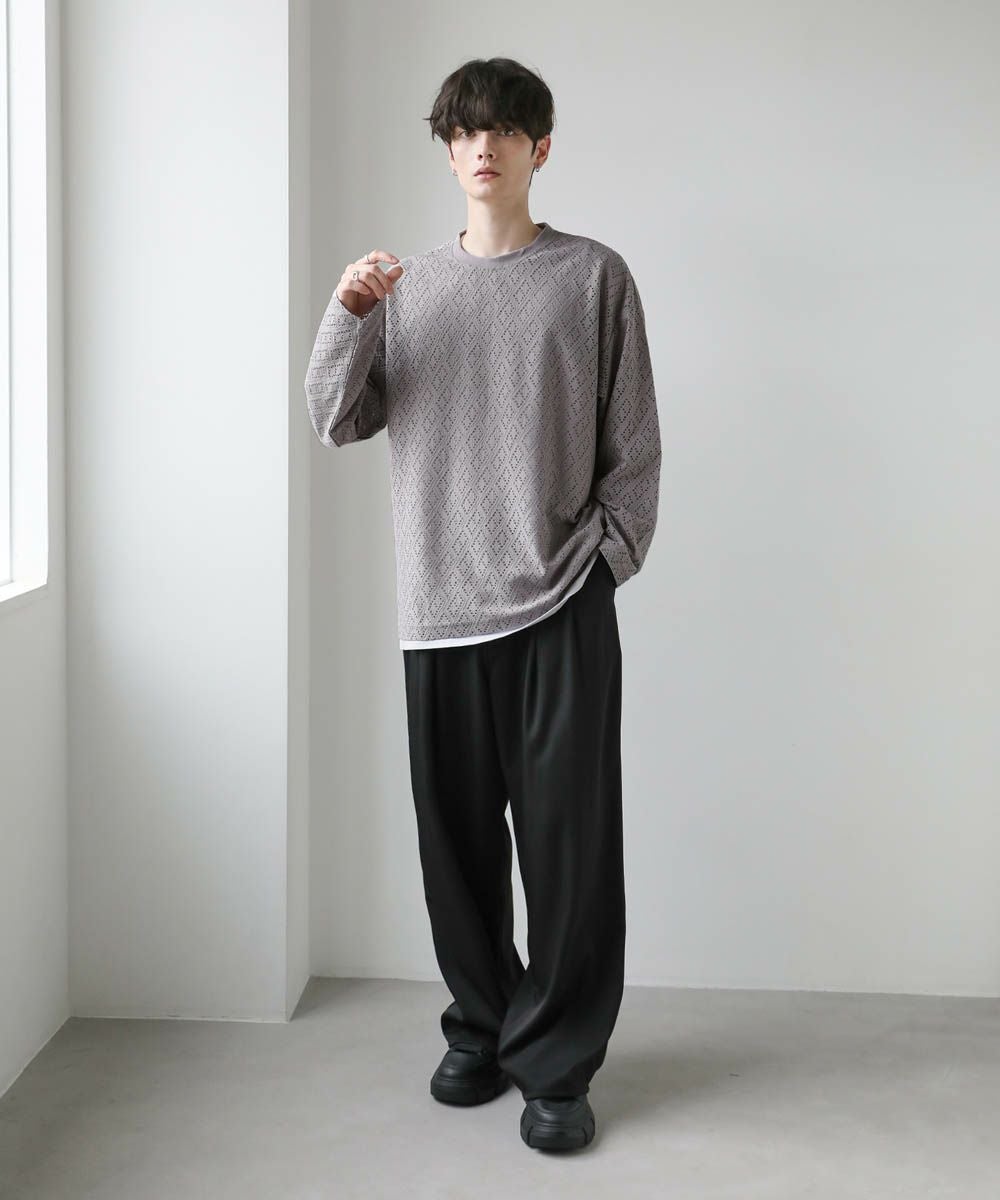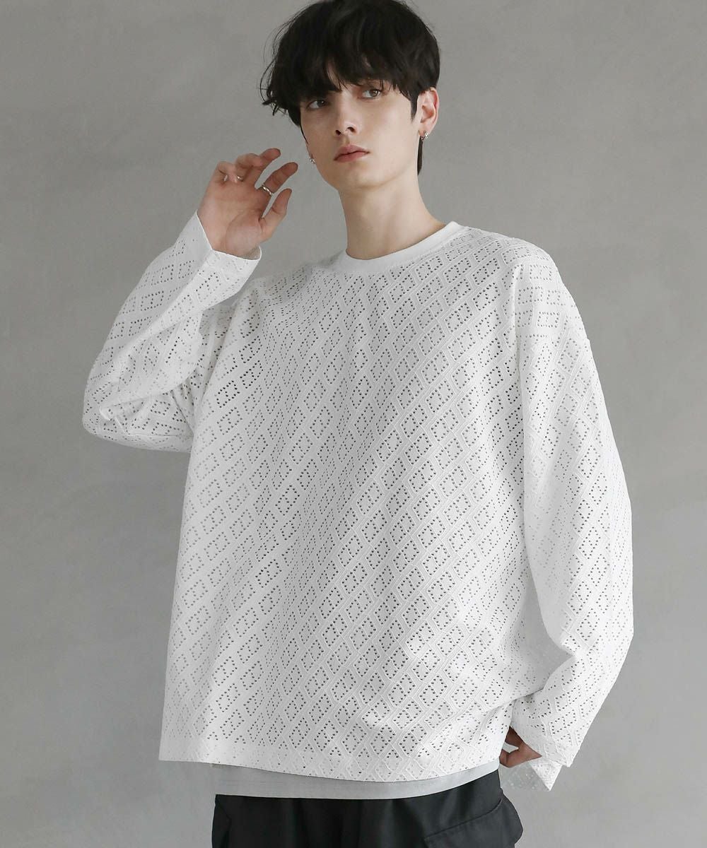 程よい透け感のレース生地で普段の着こなしに取り入れやすく、取り入れるだけでトレンドのスタイルに。ワイドボトムと合わせたリラックス感のある着こなしがおすすめです。