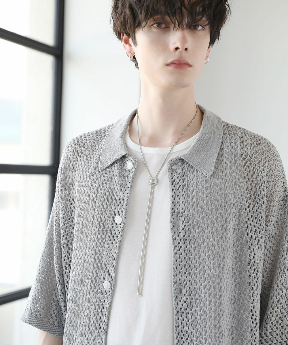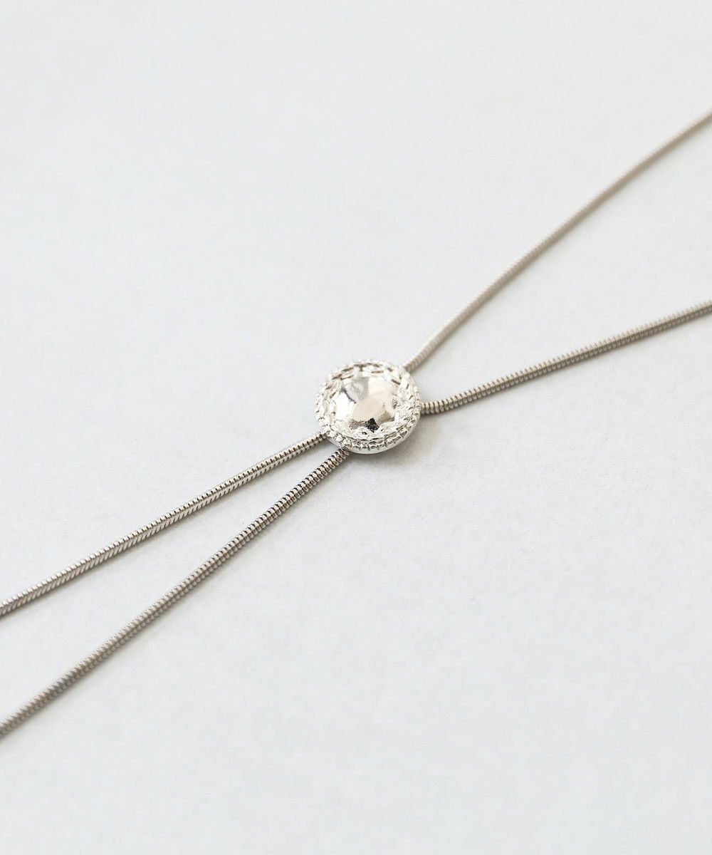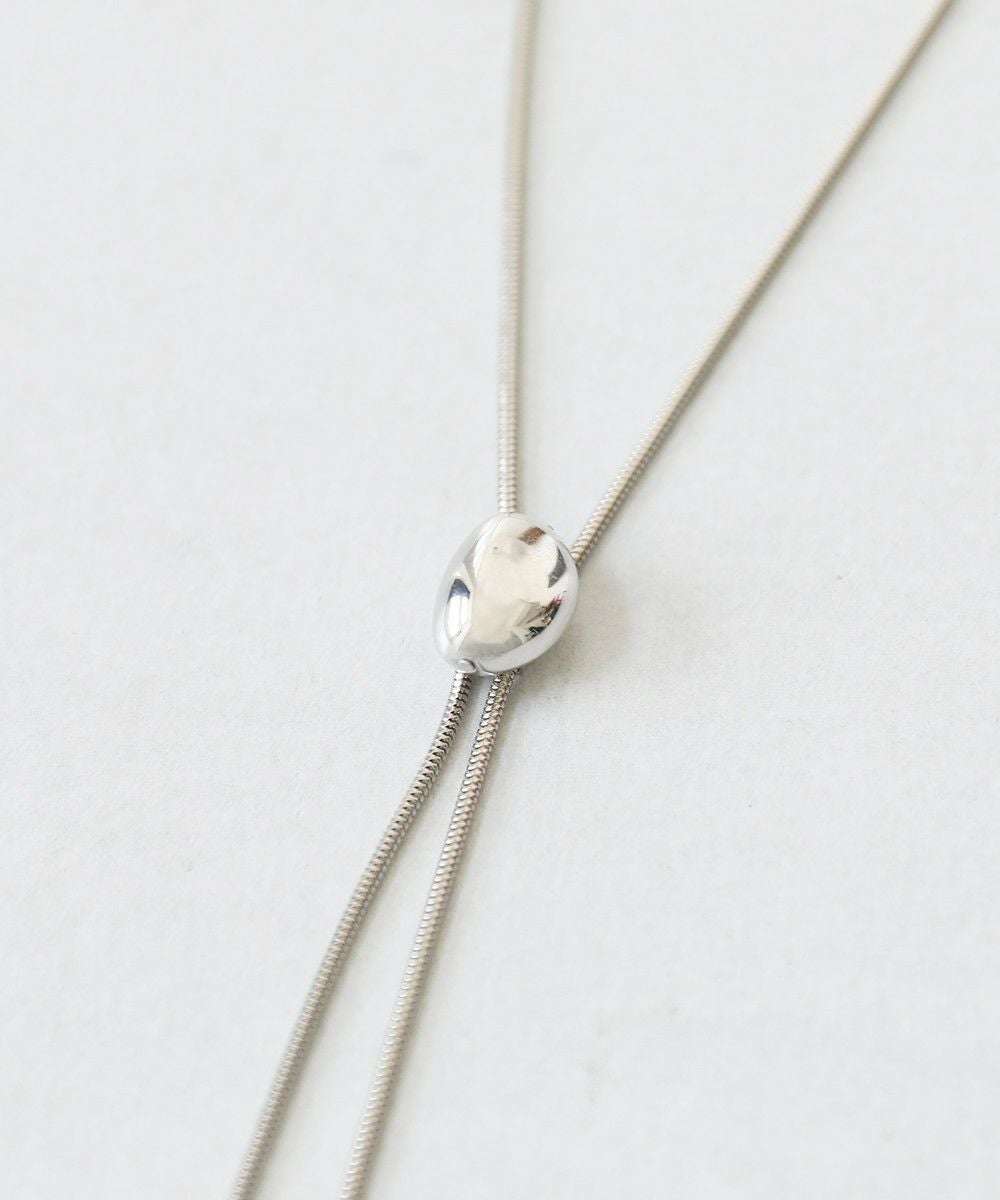 ネックレス感覚で使えるシンプルデザインのループタイ。3種類のパーツから選ぶことができるデザインネックレスで、程よい主張でコーデの品を上げてくれます。滑らかなスネークチェーンが相性良く、雰囲気にマッチしています。