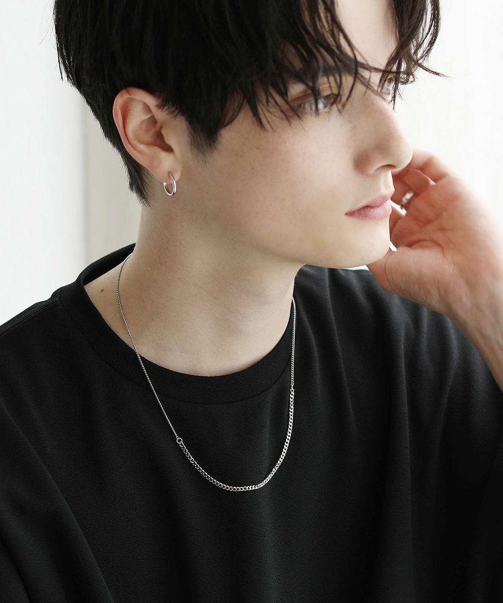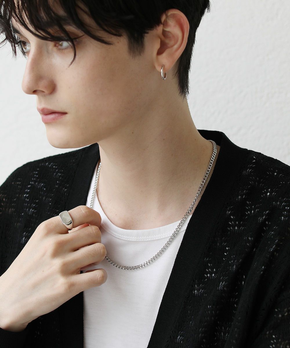 シンプルなデザインで異素材のネックレスとの重ね付けも楽しめます。