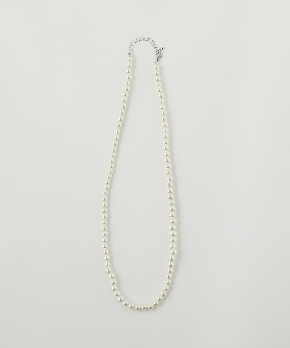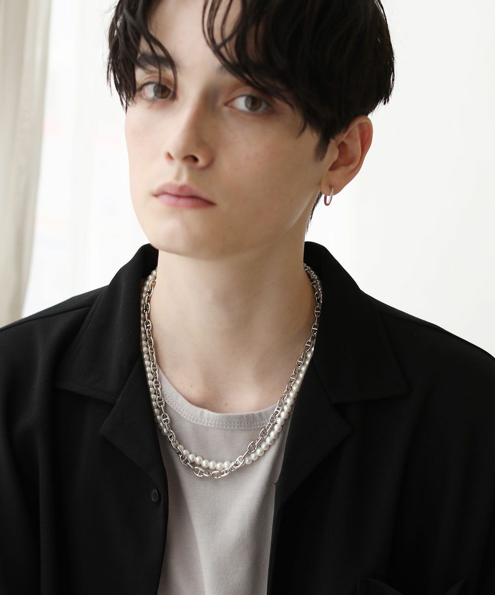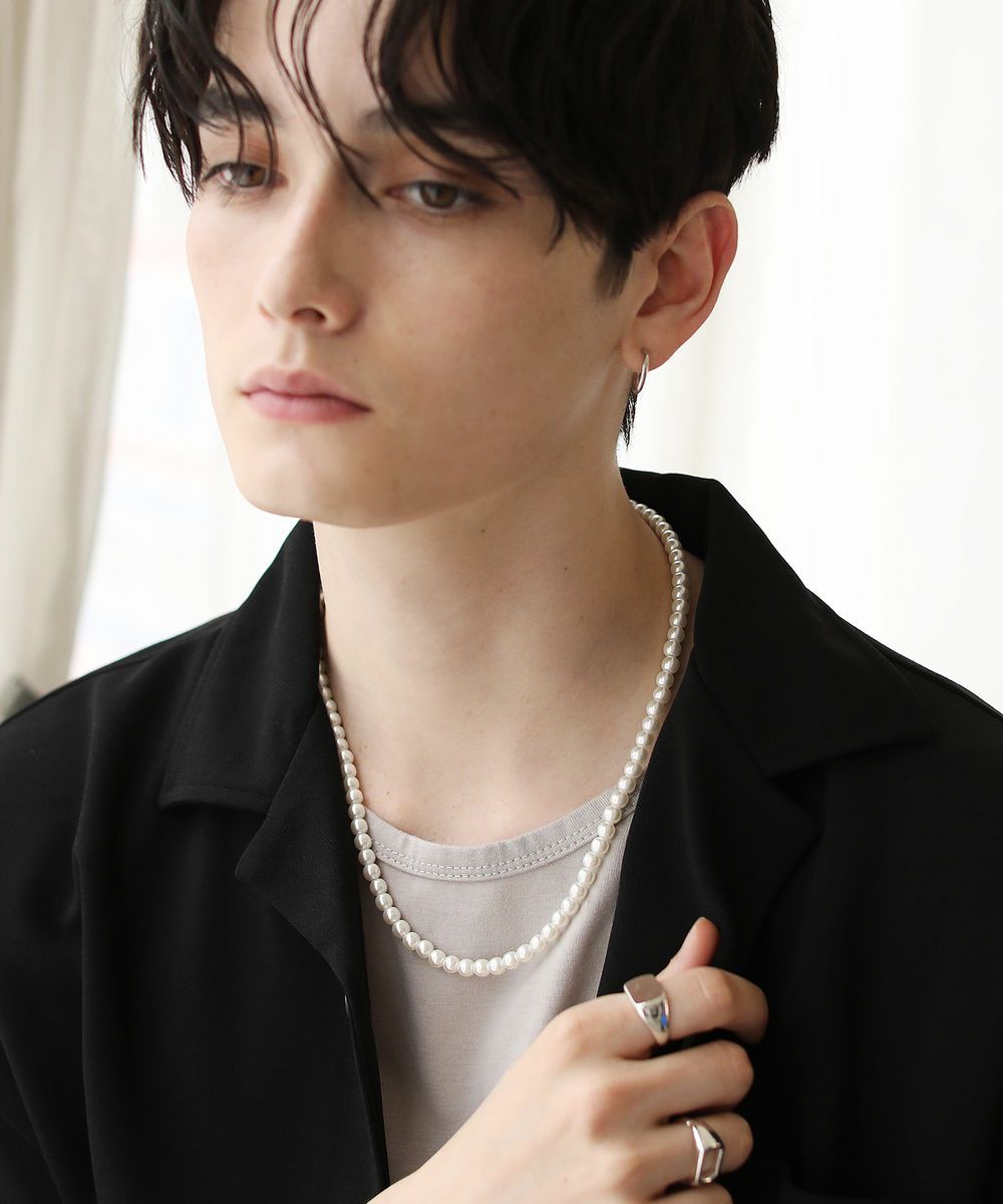 光沢感のある艶やかなアクリルパール。小さめのパールでTシャツやスウェットとも合わせやすく、ストリートな着こなしにもおすすめ。
