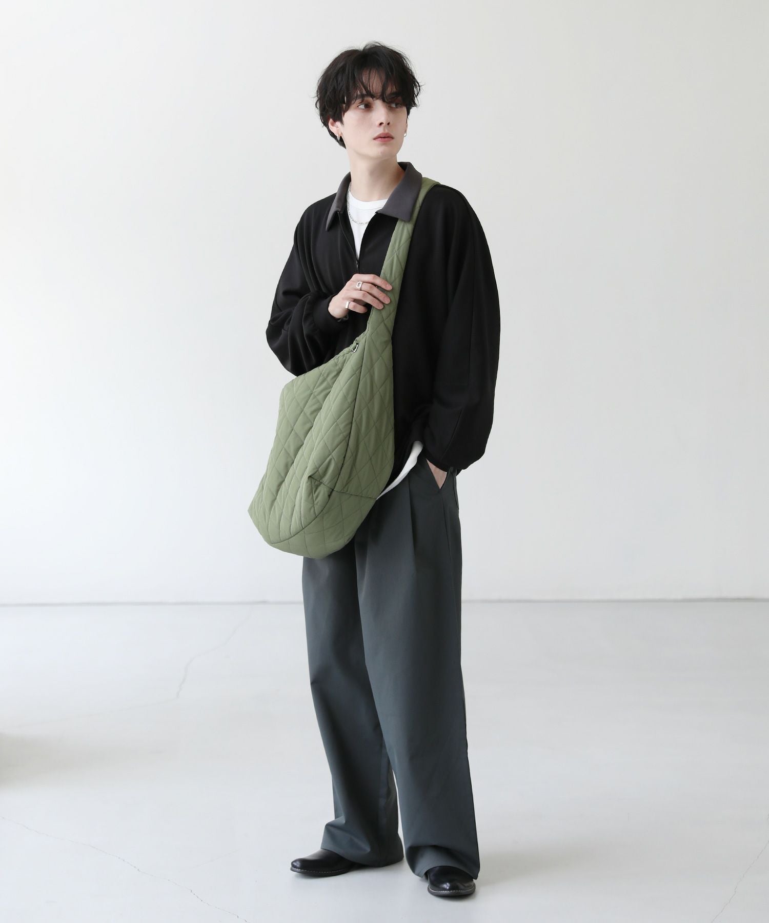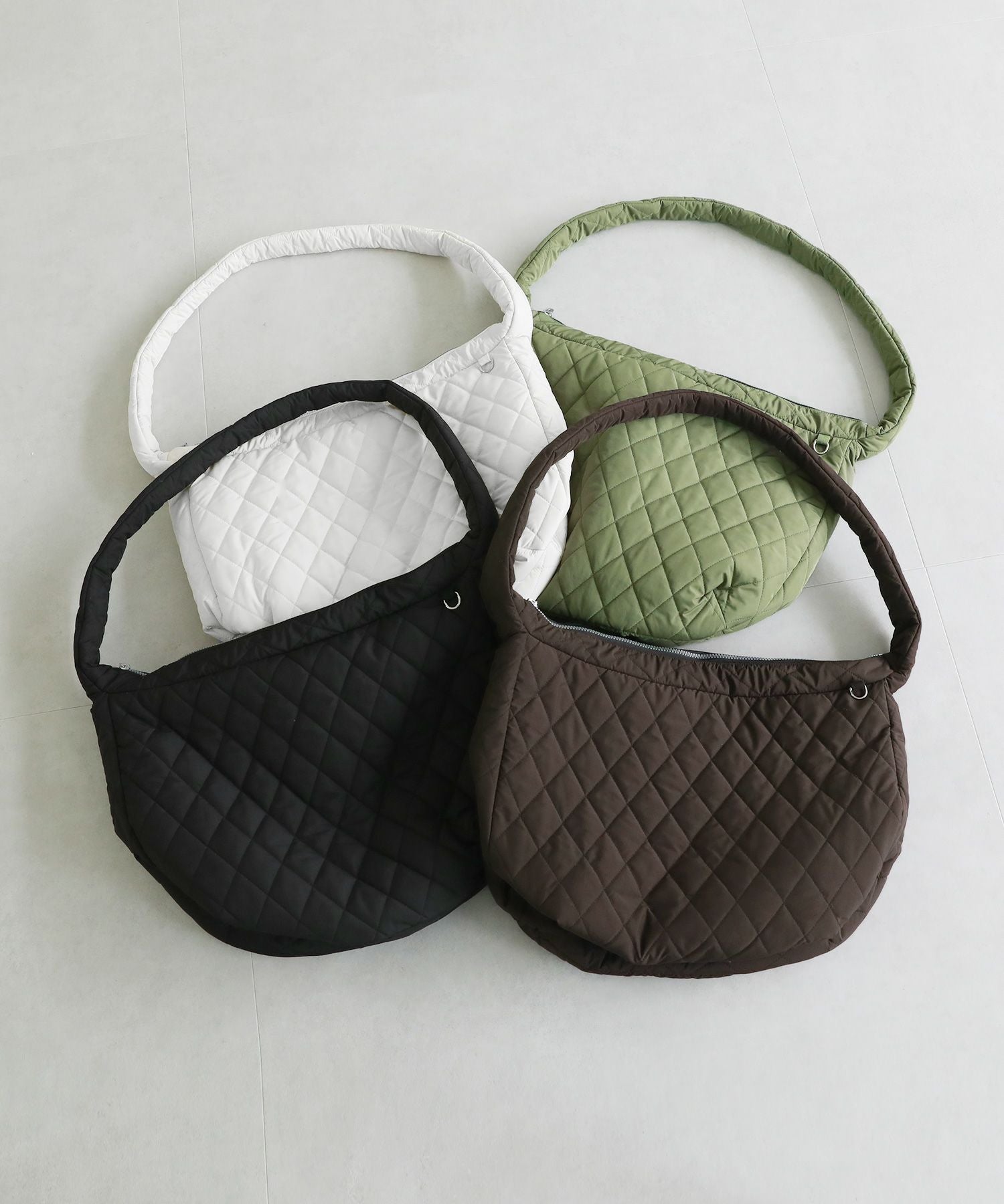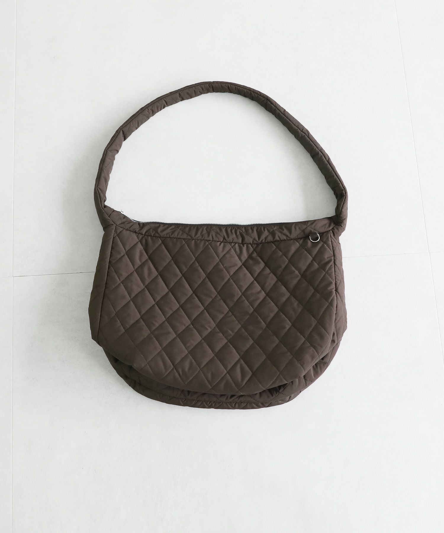 存在感のあるキルティングデザインのショルダーバッグ。肩に掛けても、斜め掛けでもどちらでもお使いいただけます。やわらかい肌触りで、持ち手も柔らかいため肩が痛くならないのもポイント。開閉はファスナー仕様で、内側にはオープンポケットがついているため荷物の仕分けも便利。キーホルダーや鍵を付けられるDカン付き。大容量のオーバーサイズなため、普段使いから通勤、通学、旅行でも活躍するアイテムです。
