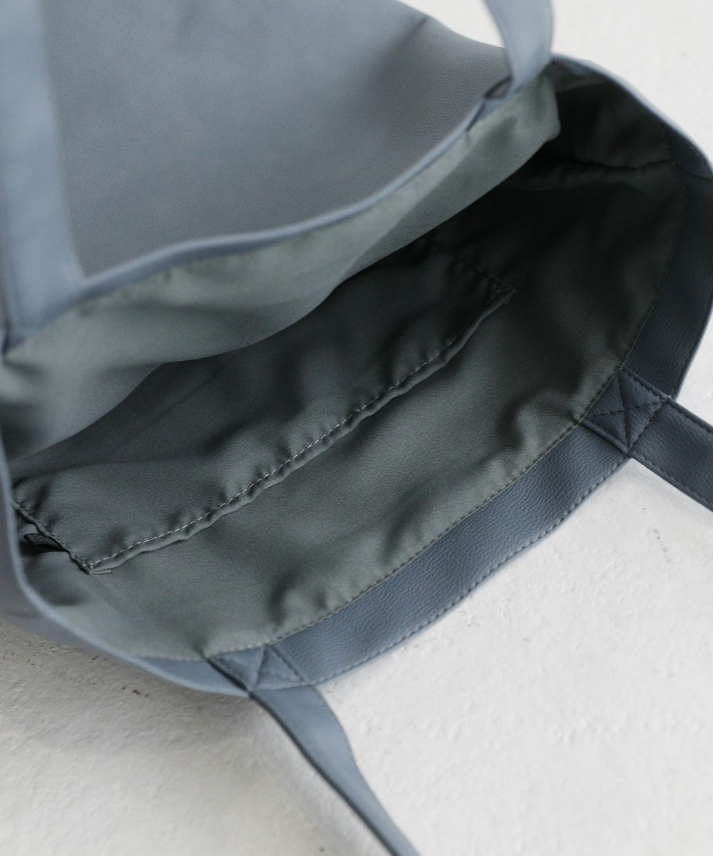ソフトな肌触りのPUレザートートバッグ。マチがあり、A4サイズも楽々入る大容量と内側ポケット仕様により収納分けができる有能なアイテム。ベーシックでコーディネートし易いカラー展開なため、通勤や通学用などオンオフ兼用でお使いいただけます。