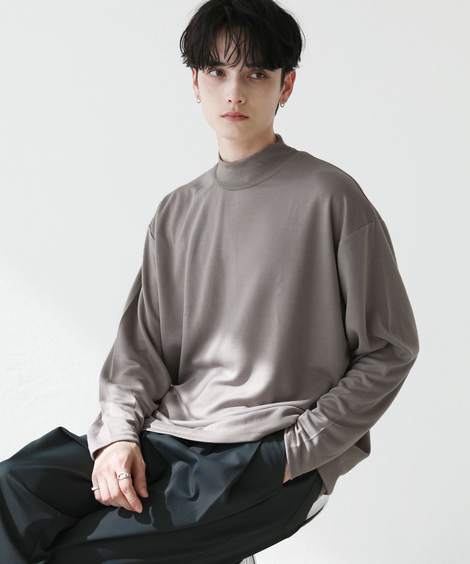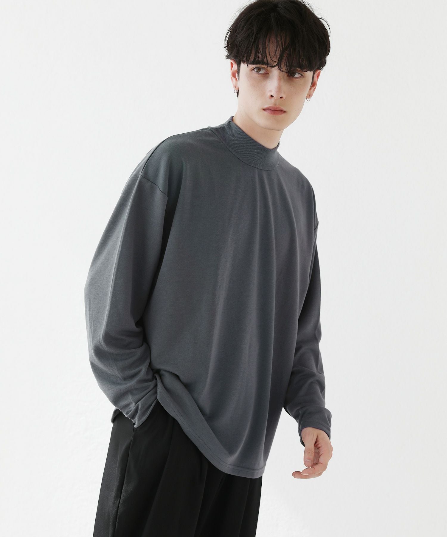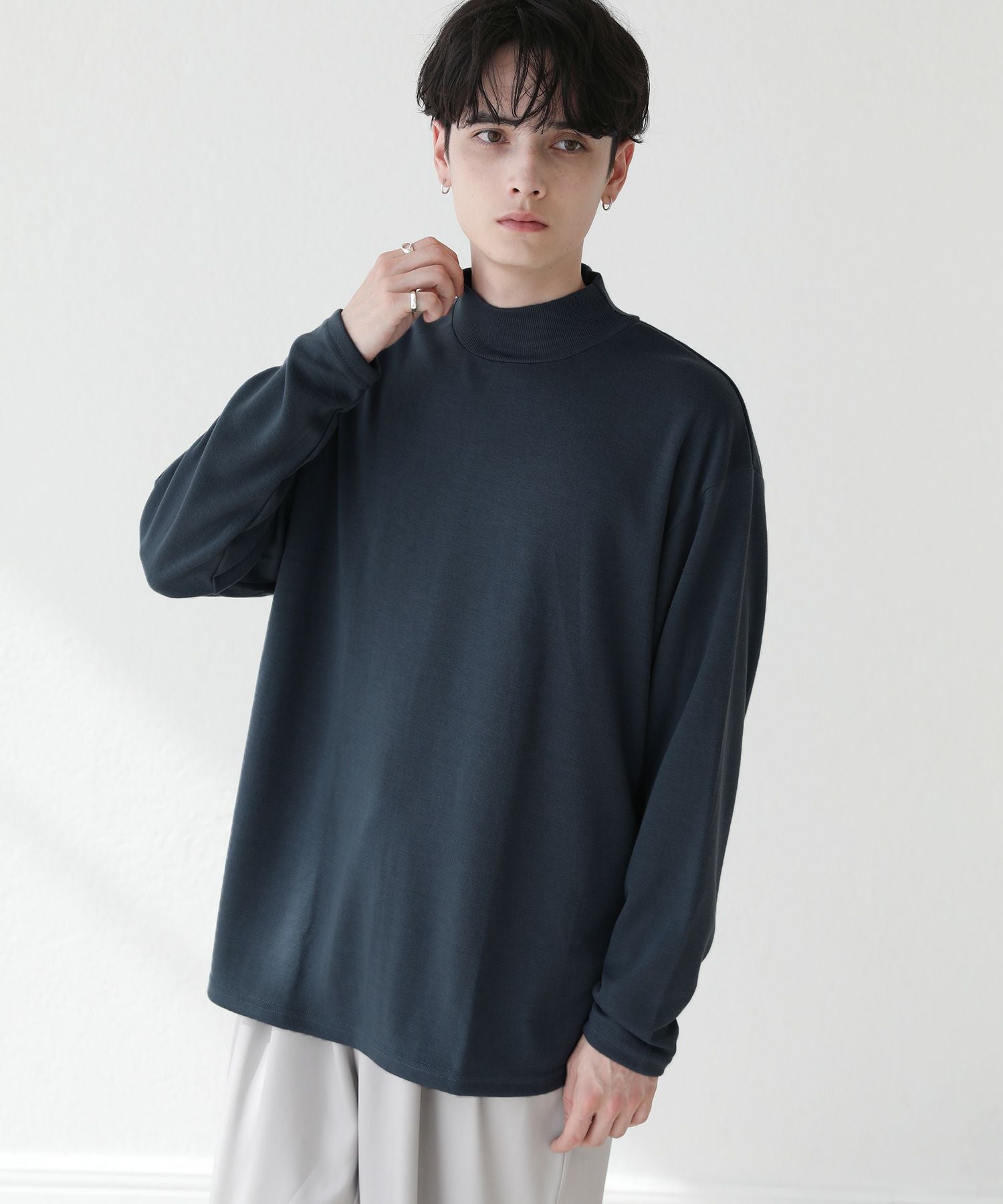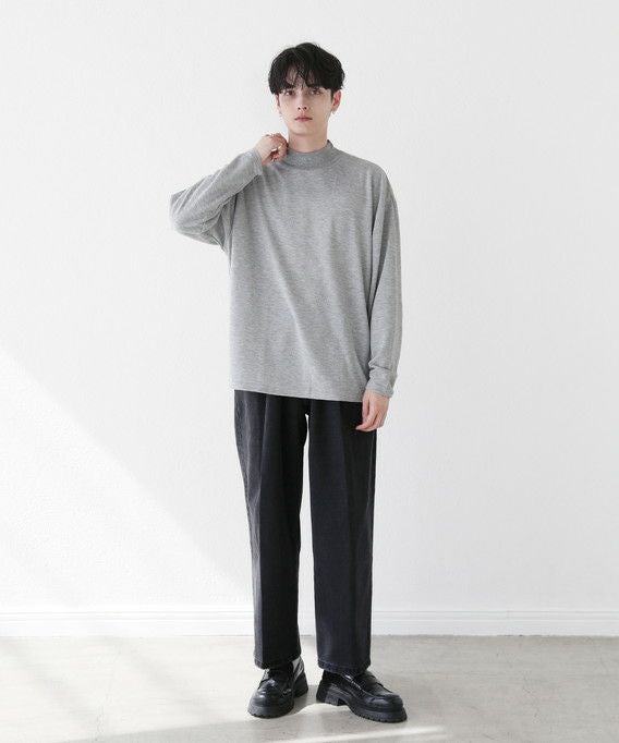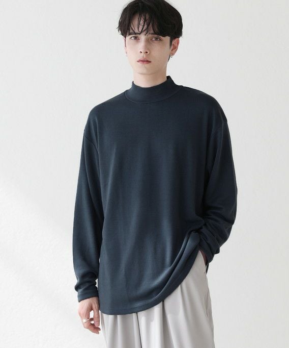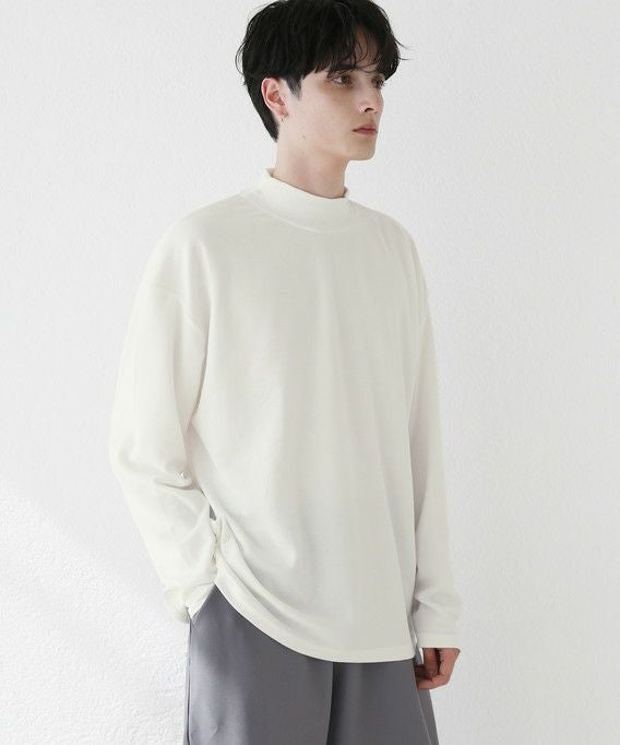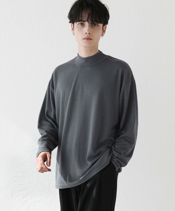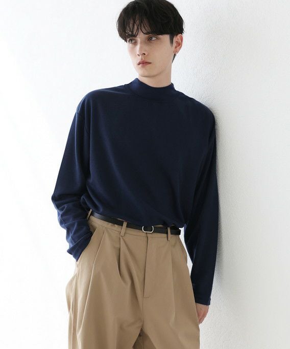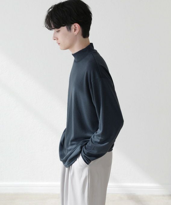 程よいゆとりを持たせたサイズ感で、着こなしの幅を広げるモックネックプルオーバー。首元は折り返しがないモックネック仕様。インナーにも使いやすく、アウターを重ねた際も首周りがごわつかずにバランスをとってくれます。厚すぎず薄すぎない生地感で、季節の変わり目の重ね着に重宝する一着です。