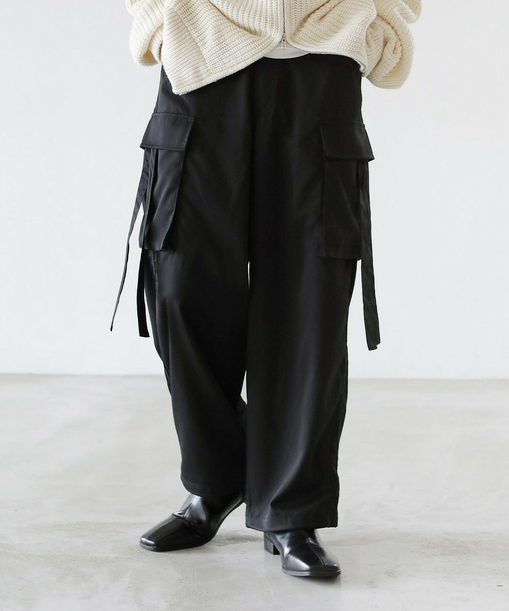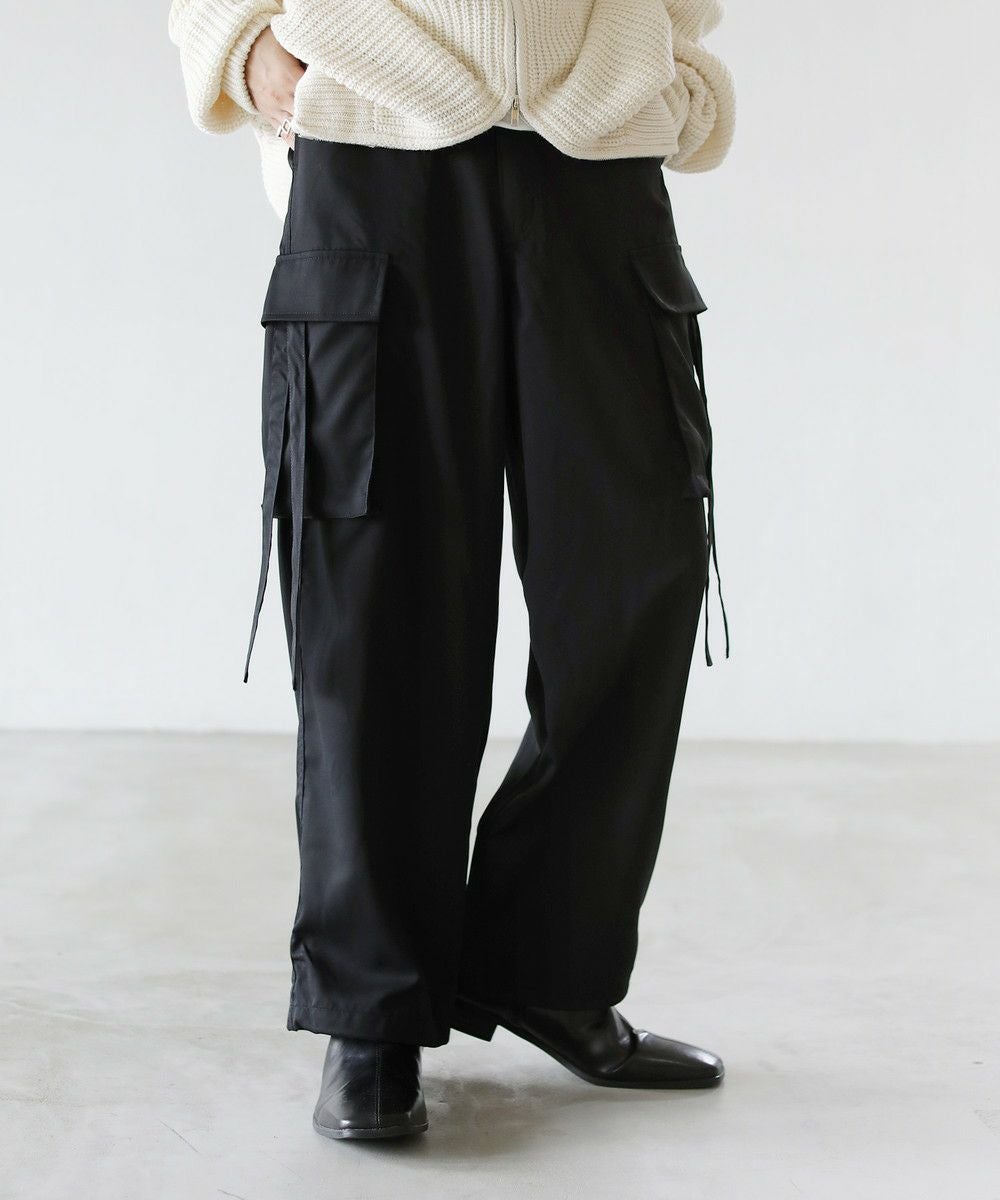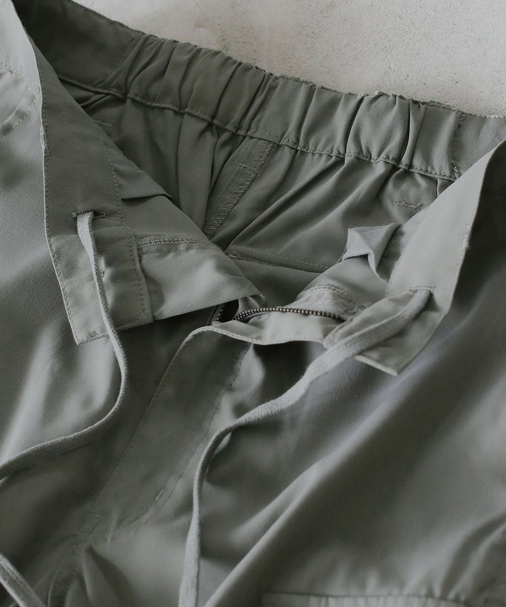 ゆったりとしたサイジングとナチュラルな生地感が特長の、イージーカーゴパンツです。ウエストは紐で調節可能。さらにウエスト後ろはゴム入りで、キレイめなルックスながら穿きやすさも兼ね備えています。