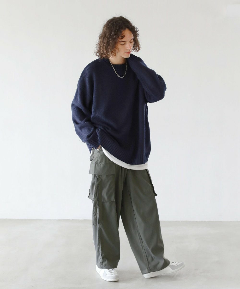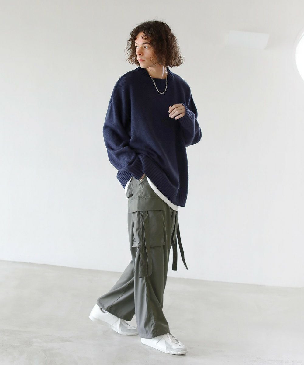 ミリタリーアイテムのジャンルにとらわれることなく、キレイめなテイストのニットやタートルネックアイテムとも相性が良いアイテムです。上下をゆったりとしたサイジングで揃えて、トレンド感のあるシルエットを作るのもおすすめ。手軽に旬のコーディネートが楽しめます。