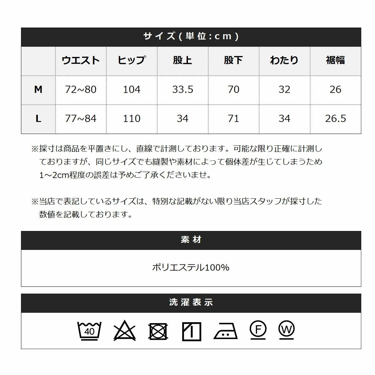 ※商品特性、縫製や素材により同サイズでも、若干の誤差が生じてしまうことを予めご了承ください。