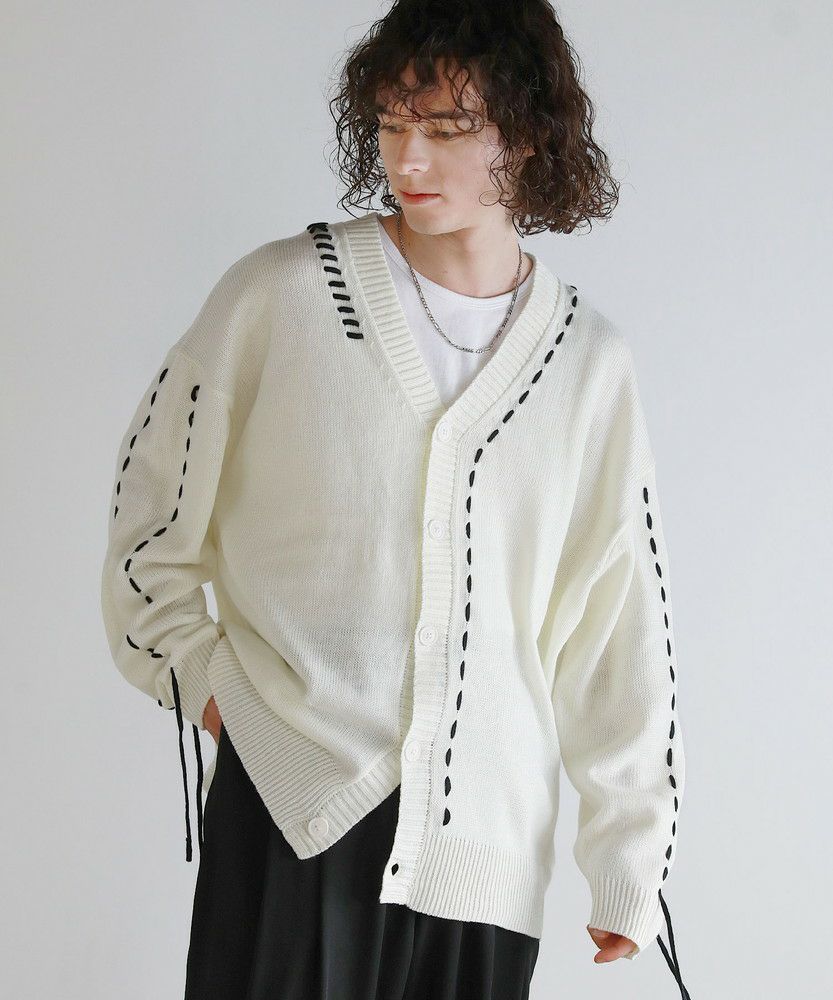 Buyer's select/ビックシルエット配色ハンドステッチ長袖ニットカーディガン