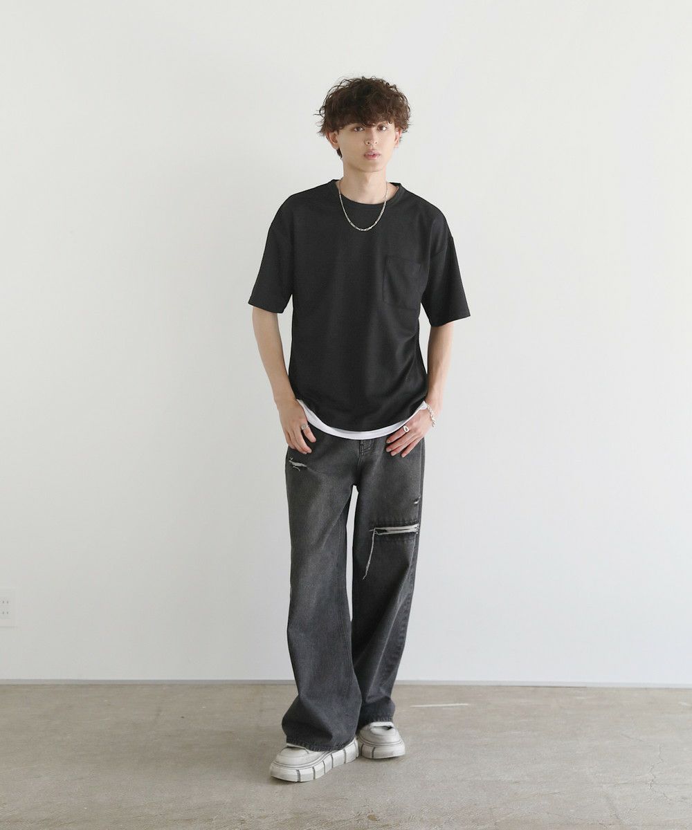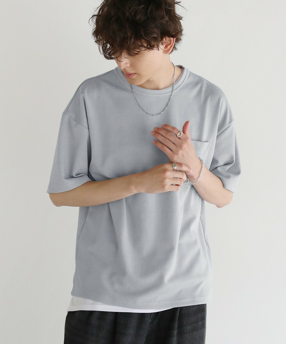 Buyer's Select/楊柳ジャガード 半袖胸ポケット クルーネックTシャツ