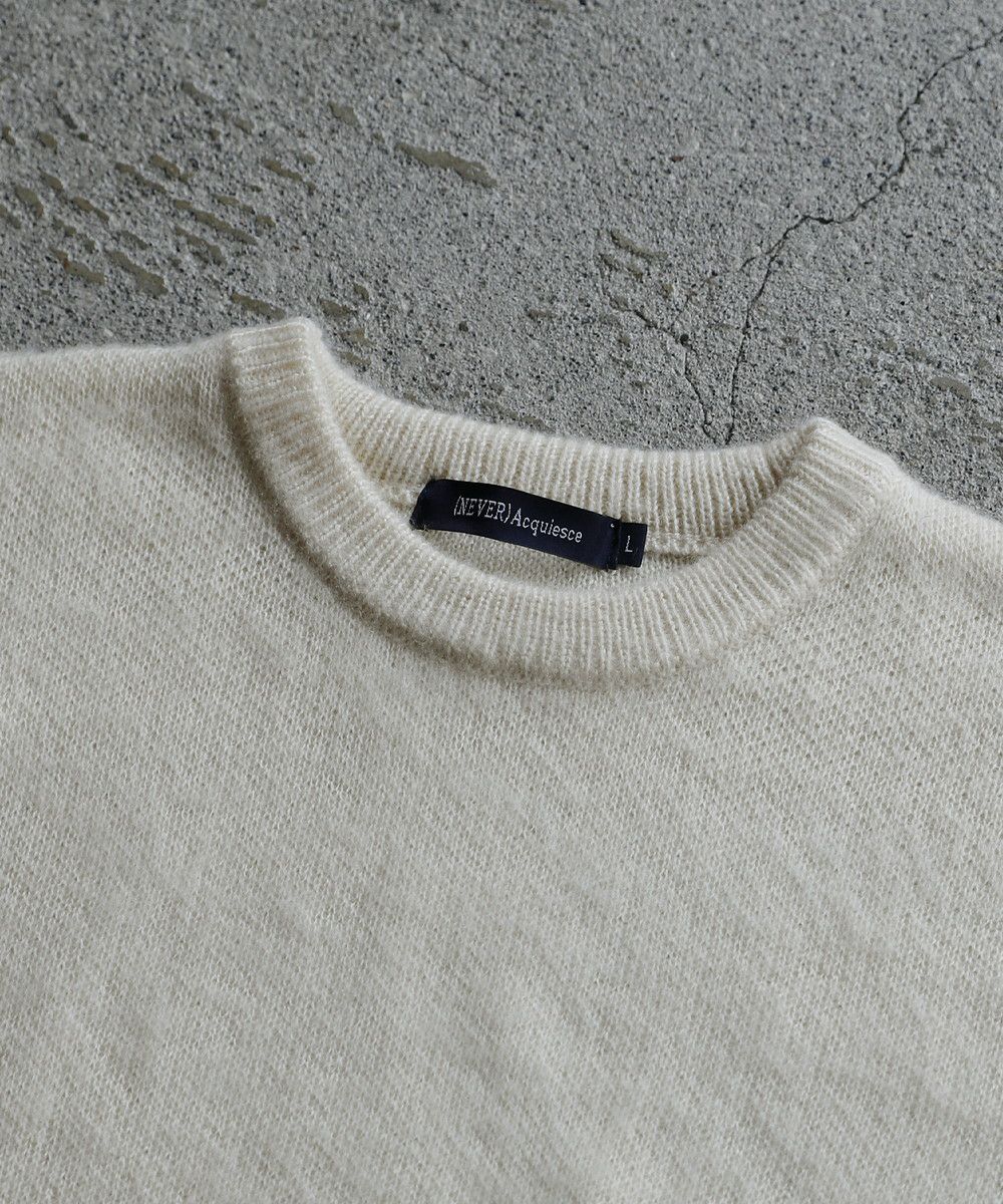 ふわっとしたタッチのモヘアニット素材を使用。アクリル素材なのでチクチクしにくい、優しい肌触りのアイテムです。