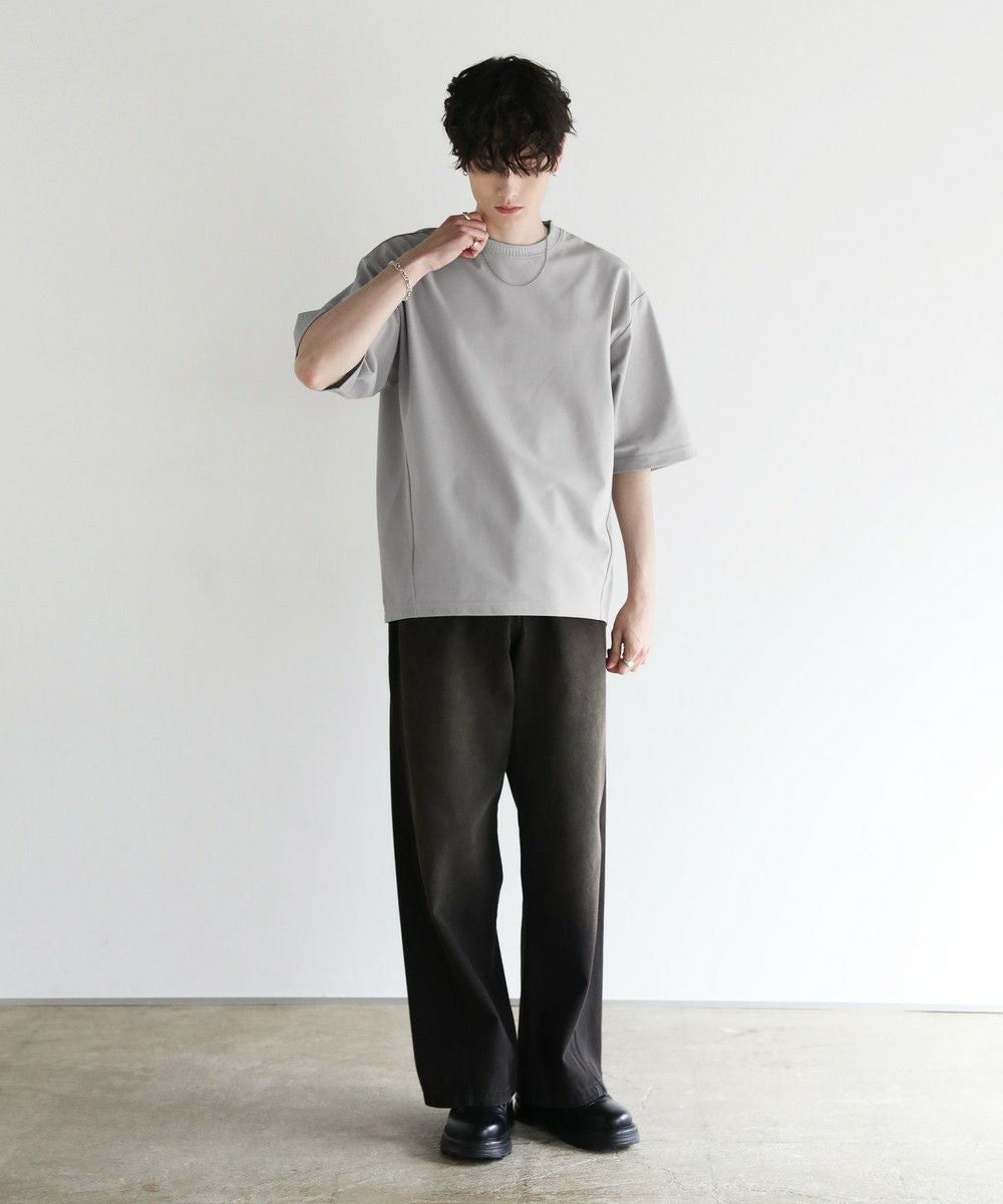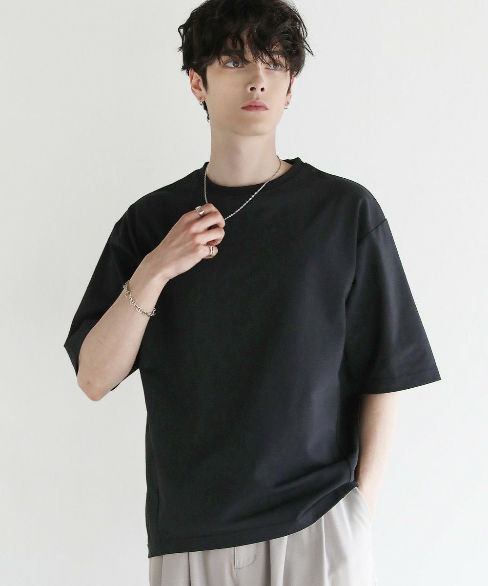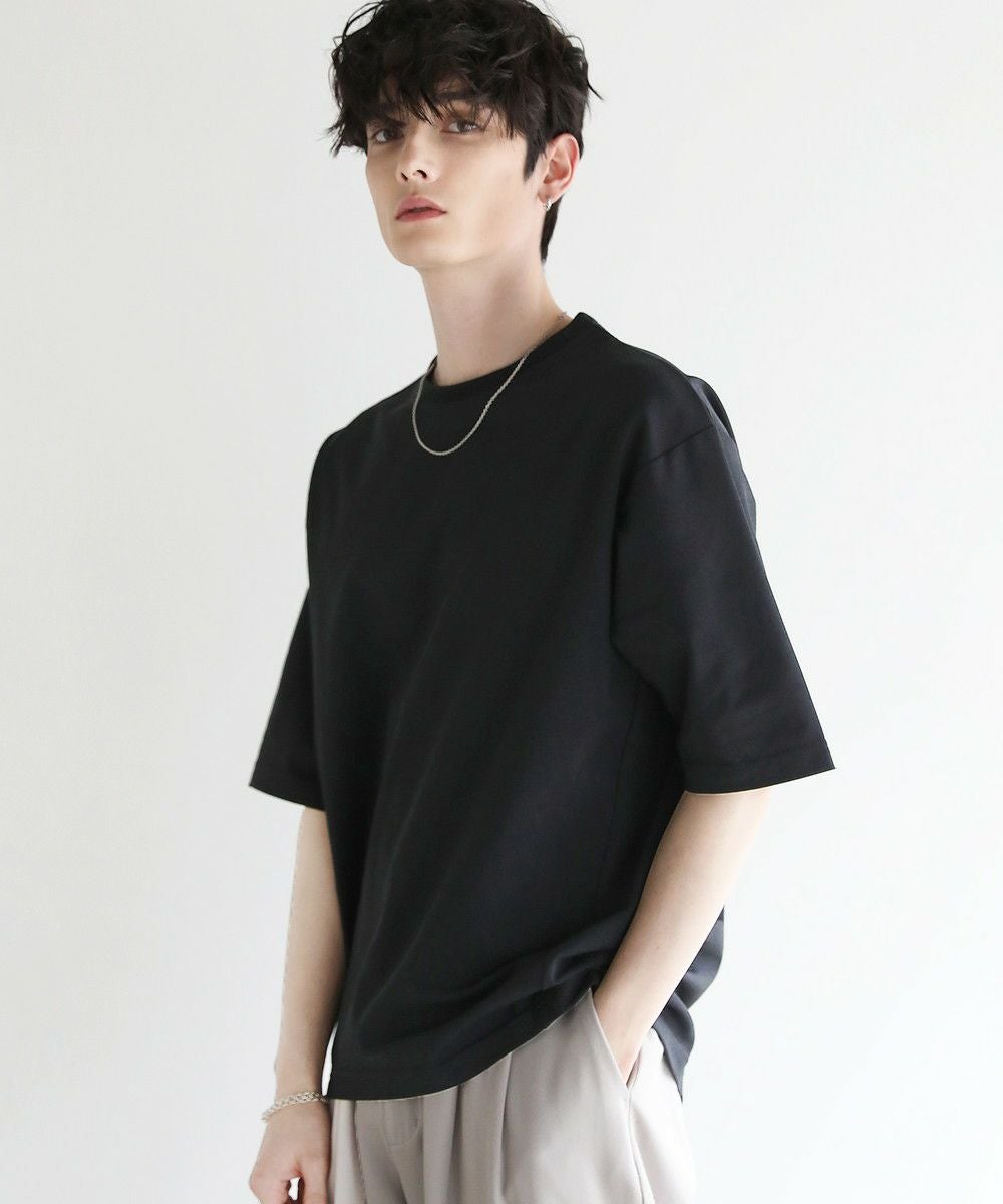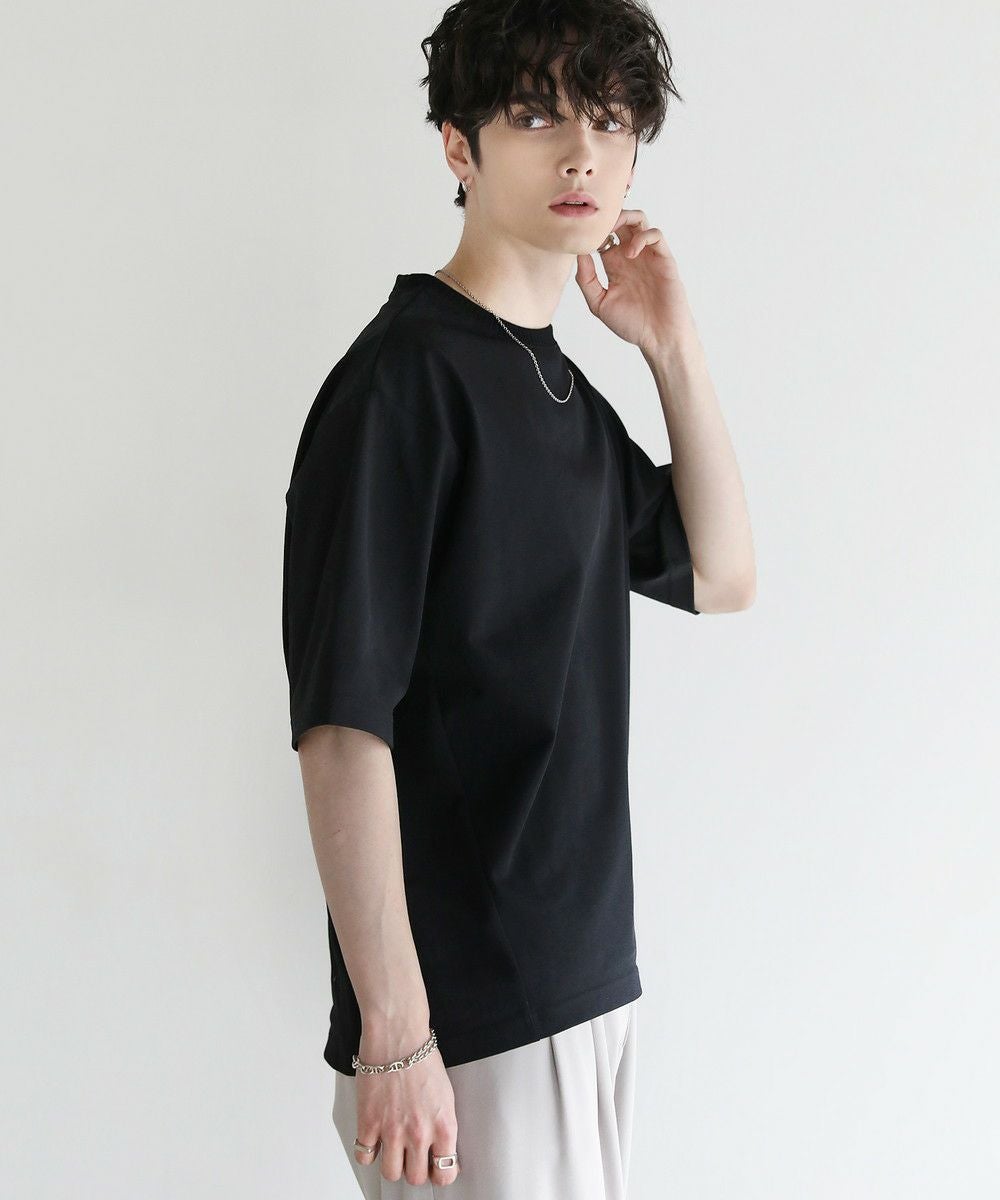 汗ばむ季節にぴったりの機能を備えた半袖Tシャツ。サイドの縫い目をフロント側に入れ込んで前後差を付けた、立体的な作りに仕立てました。さらにドロップショルダーに5分袖と、トレンドのオーバーサイズ感を演出するデザインを取り入れつつも、大きすぎずコンパクト過ぎないルーズシルエットに仕上げています。カラーは普段の着こなしに合わせやすい4色展開。定番のブラック、ライトグレーに落ち着いたアッシュブラウン、ブルーなど色違いで複数枚持っておくのもおすすめです。夏らしい涼し気な素材感とデザイン性を持たせたTシャツは爽やかな大人カジュアルコーデにぴったりです。