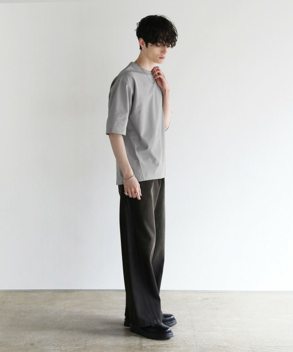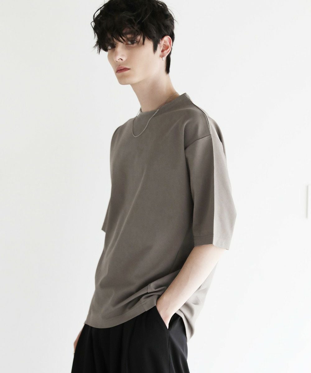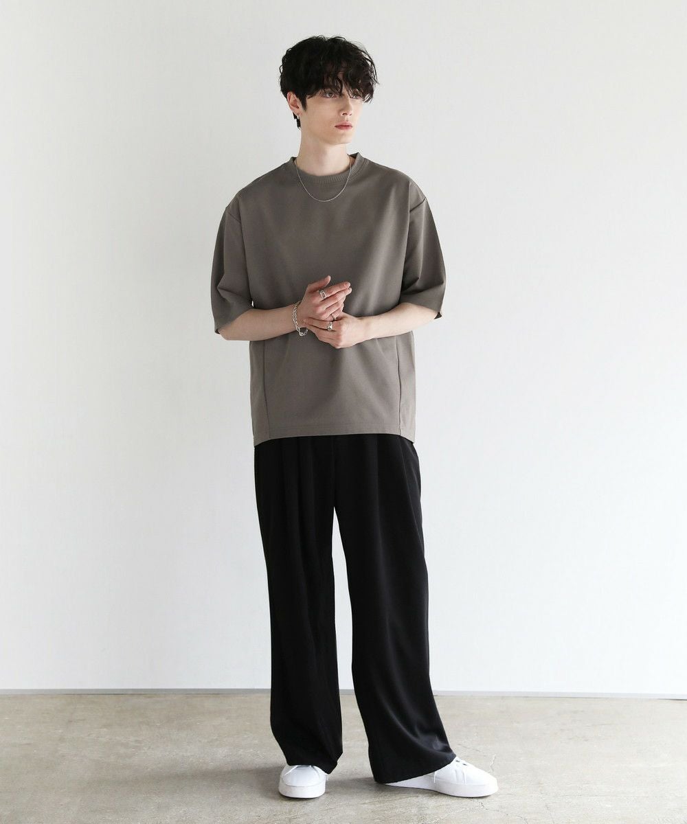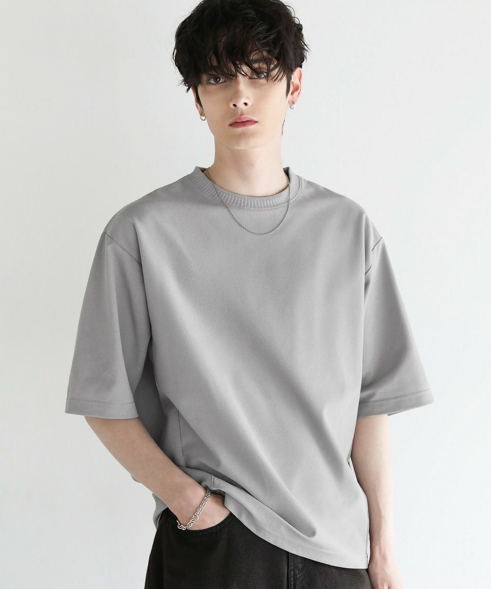 汗ばむ季節にぴったりの機能を備えた半袖Tシャツ。サイドの縫い目をフロント側に入れ込んで前後差を付けた、立体的な作りに仕立てました。さらにドロップショルダーに5分袖と、トレンドのオーバーサイズ感を演出するデザインを取り入れつつも、大きすぎずコンパクト過ぎないルーズシルエットに仕上げています。カラーは普段の着こなしに合わせやすい4色展開。定番のブラック、ライトグレーに落ち着いたアッシュブラウン、ブルーなど色違いで複数枚持っておくのもおすすめです。夏らしい涼し気な素材感とデザイン性を持たせたTシャツは爽やかな大人カジュアルコーデにぴったりです。