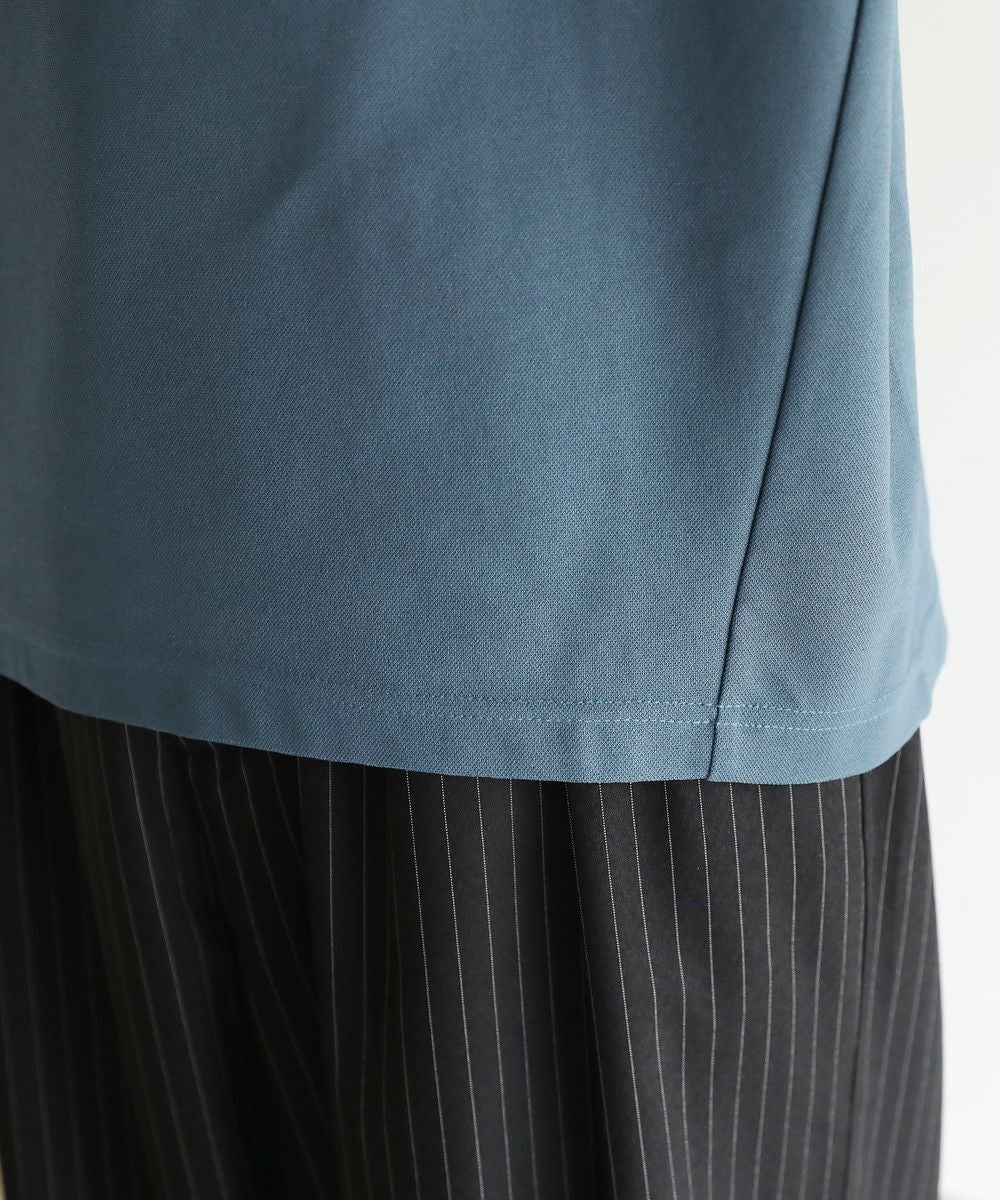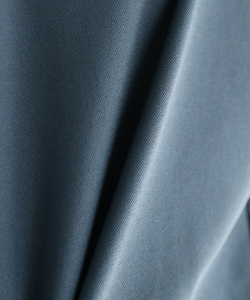生地は通常よりも糸の撚りを強めた「強撚糸(きょうねんし)」というハイツイスト糸で編み立てたカノコニット地。細かい凹凸があり、汗で肌に張り付くのを防いでくれます。夏でも快適に過ごせるひんやりとした接触冷感、ドライな着心地が続く吸水速乾、強い日差しから肌を守るUV機能付き。さらに洗濯機洗いが可能なイージーケア素材のため、汗ばむ夏のデイリーウェアとして気兼ねなくご着用いただけます。
