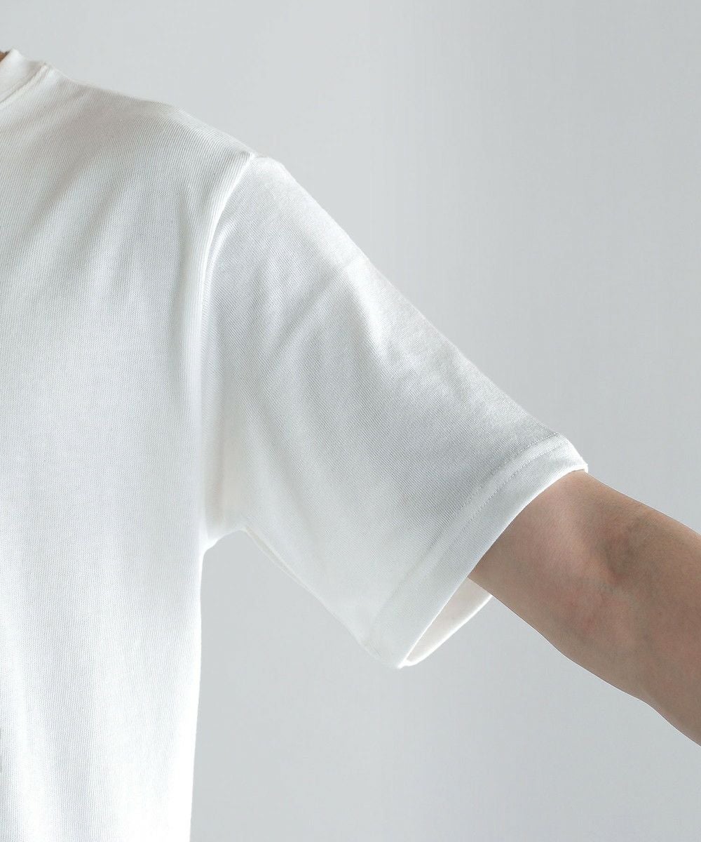 肌なじみの良い綿ポリ素材のTシャツ。抜群の伸縮性で優しく体にフィットし、ストレスフリーな着心地です。