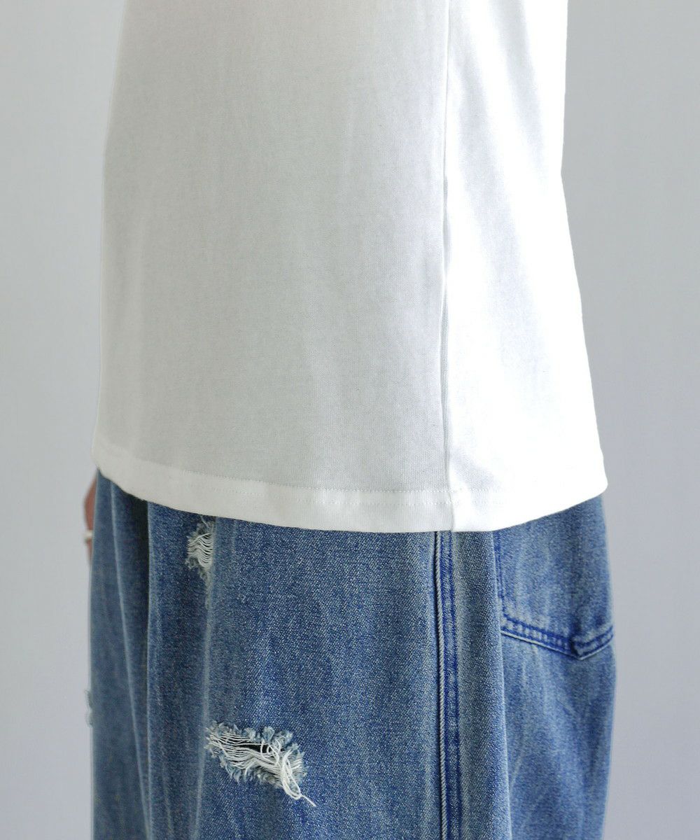 首元はベーシックなクルーネック仕様のため、どんなボトムスとも合わせやすい万能アイテム。カジュアルなデニムと合わせていただくだけでお洒落な大人カジュアルコーデが完成します。