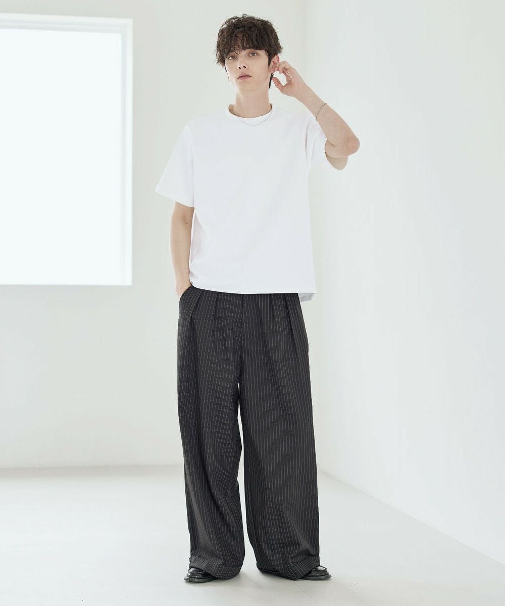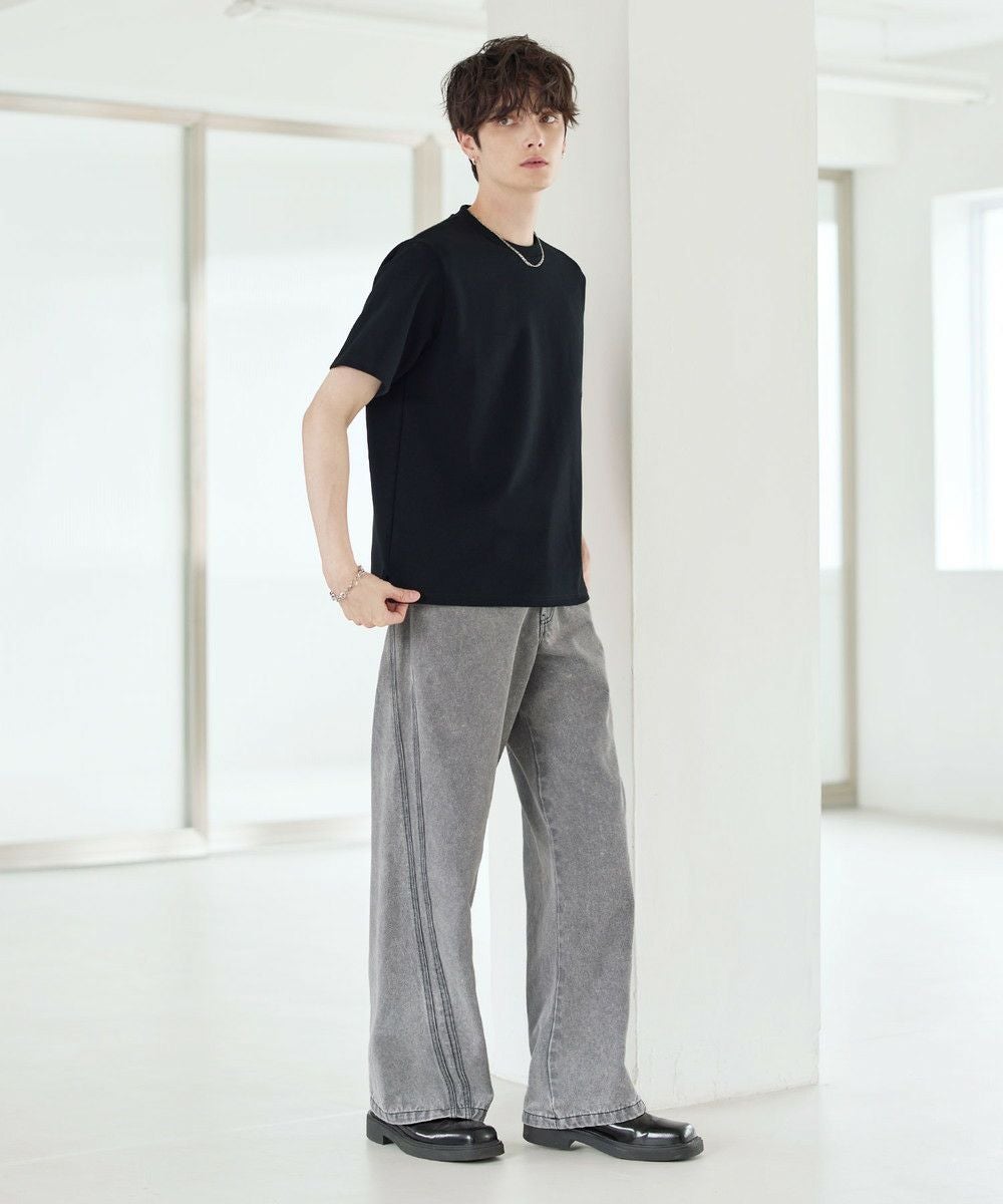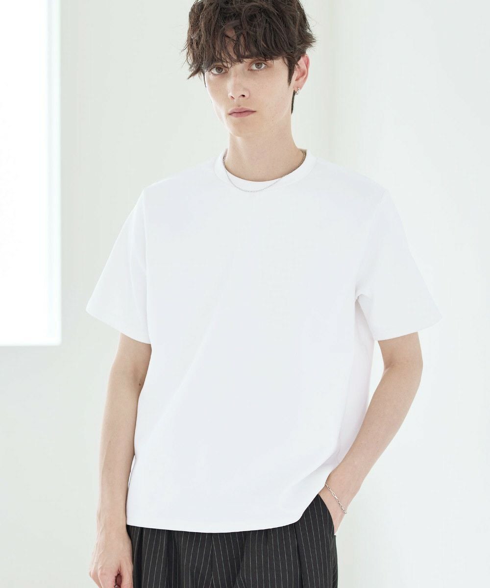 膨らみ感のある優しい着心地のポンチ生地を採用。生地表面はさらっと滑らかで、ヘビーウェイトでありながらもキレイめな表情です。さらに肌に触れるとひんやり感じられる接触冷感機能、抗菌防臭加工も施しました。素材の綿による吸湿性の高さと抗菌防臭機能が合わさり、汗ばむ季節の着用でも清潔感が続きます。ストレッチ性にも富んでおり、着心地の良さも抜群。見た目の良さだけでなく、機能面にも優れた生地です。