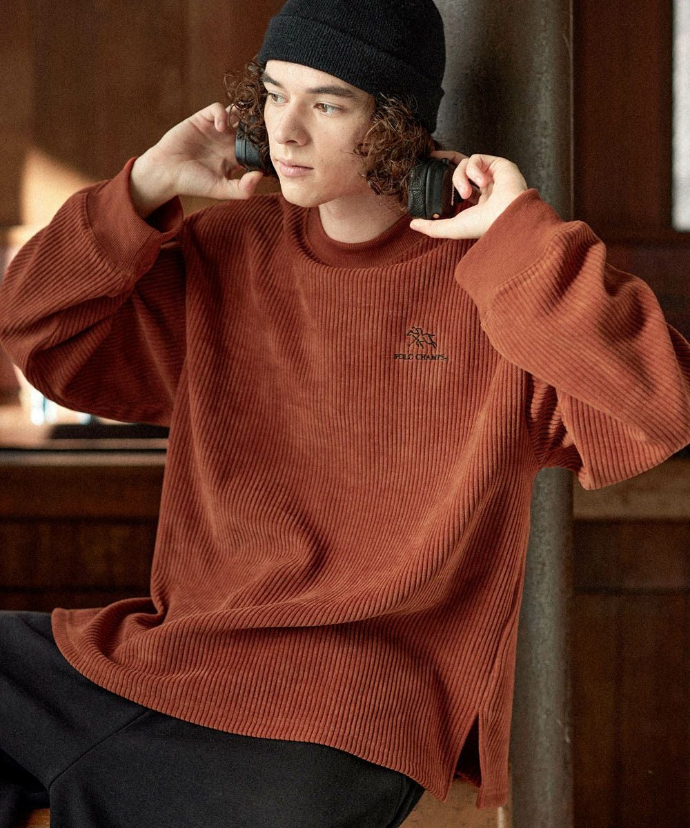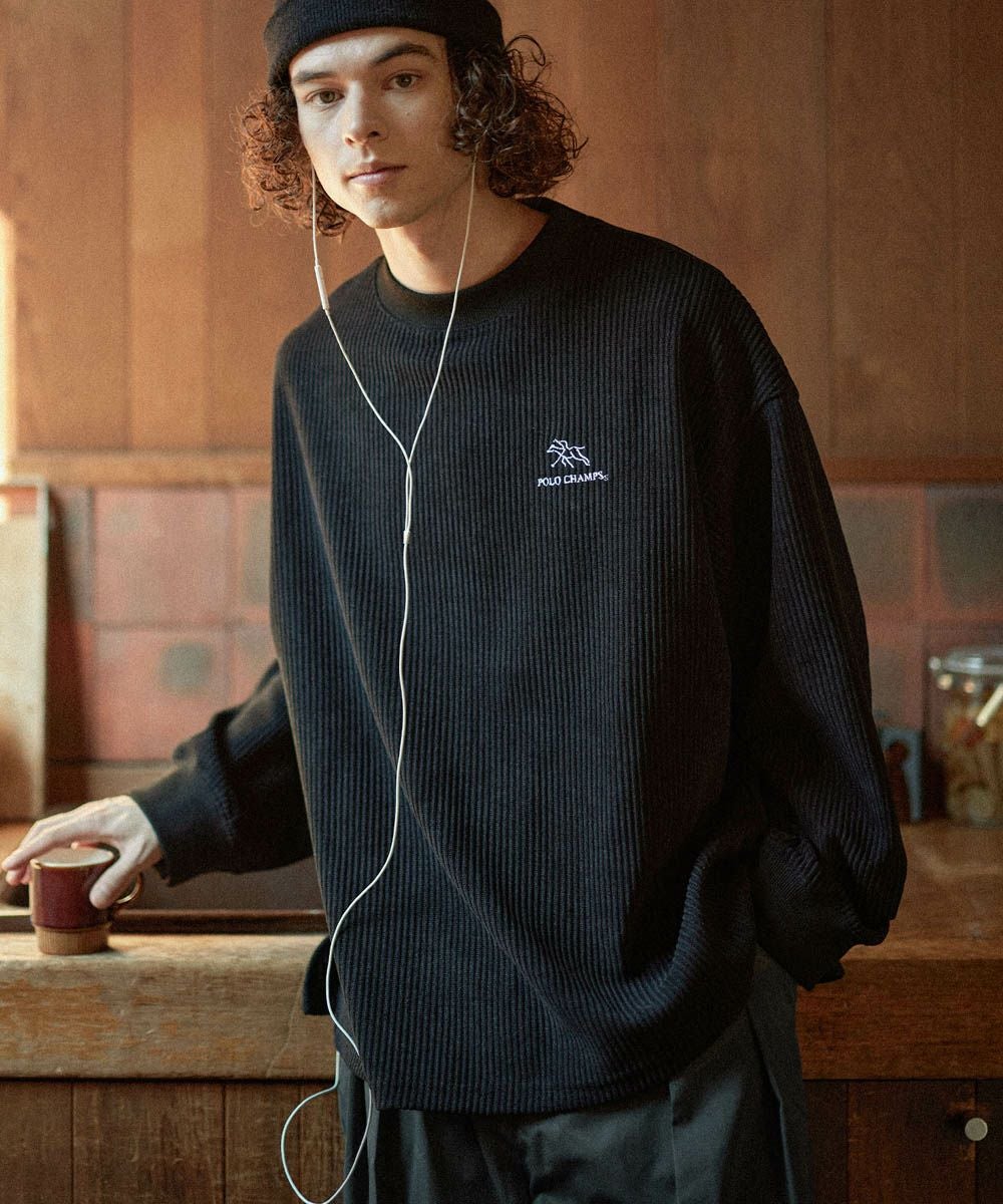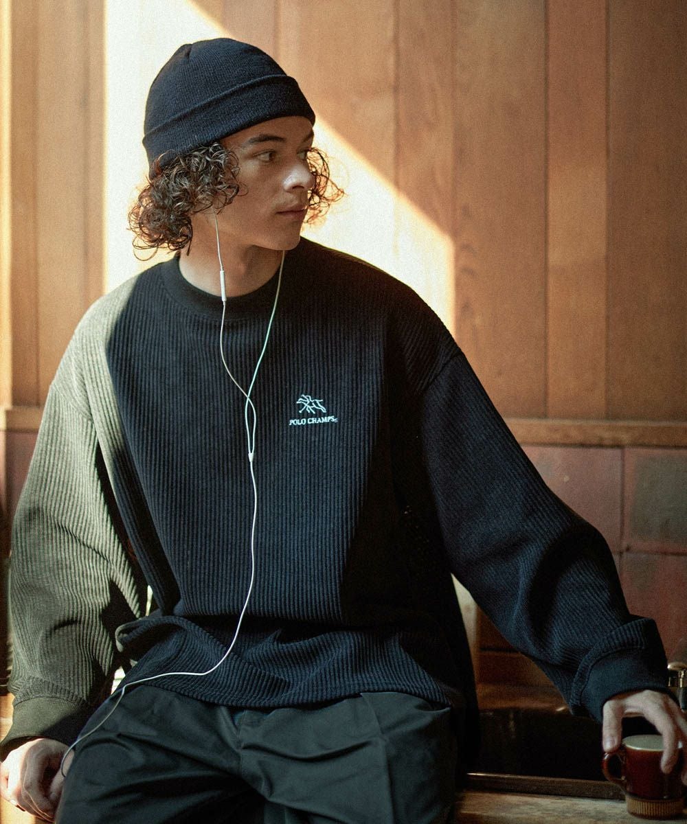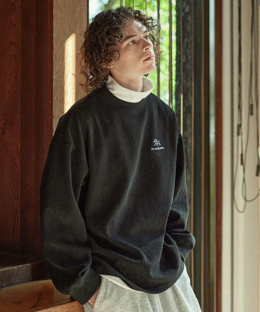 【POLO CHAMPS 別注】カットコーデュロイロゴ刺繍モックネックプルオーバー