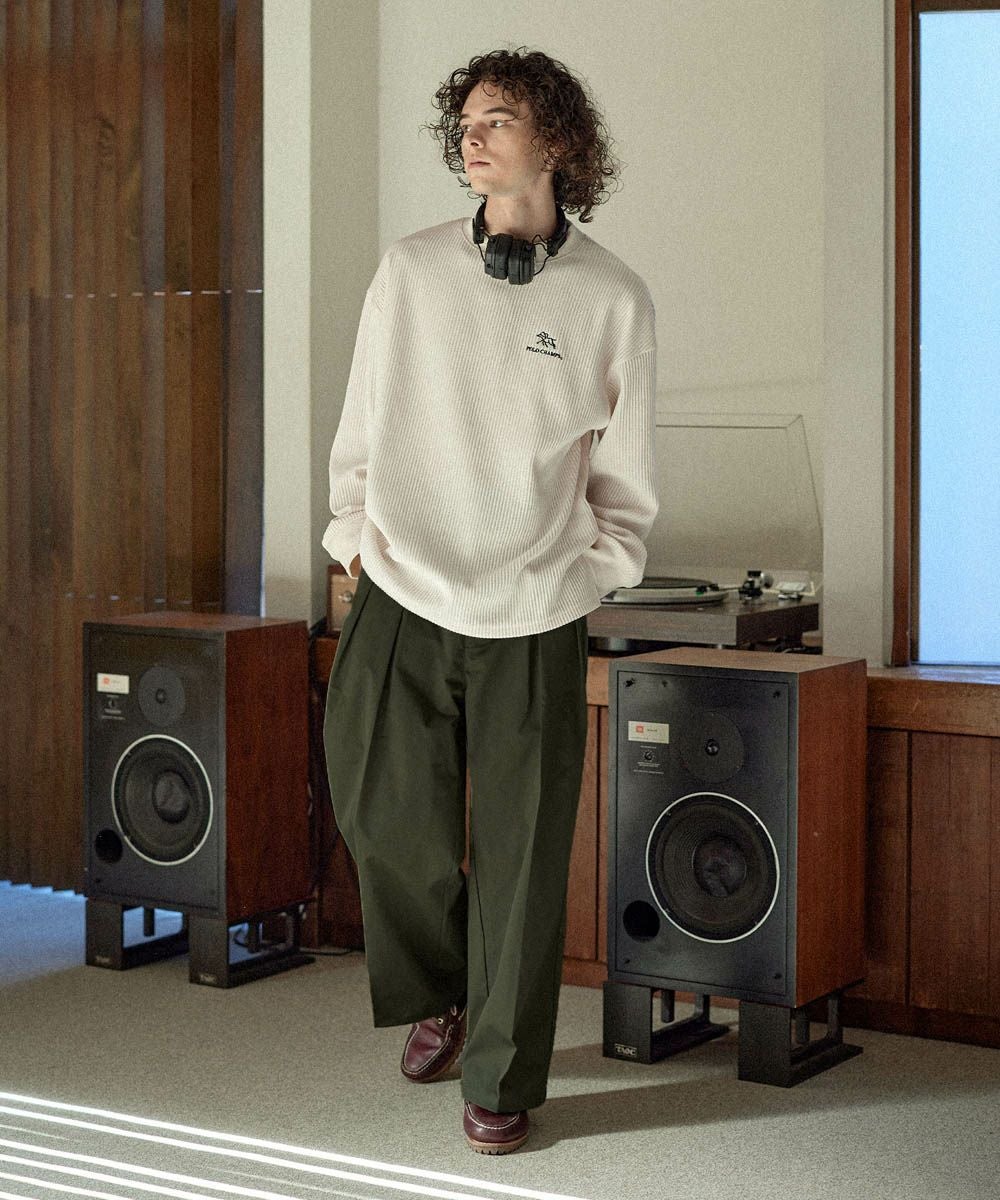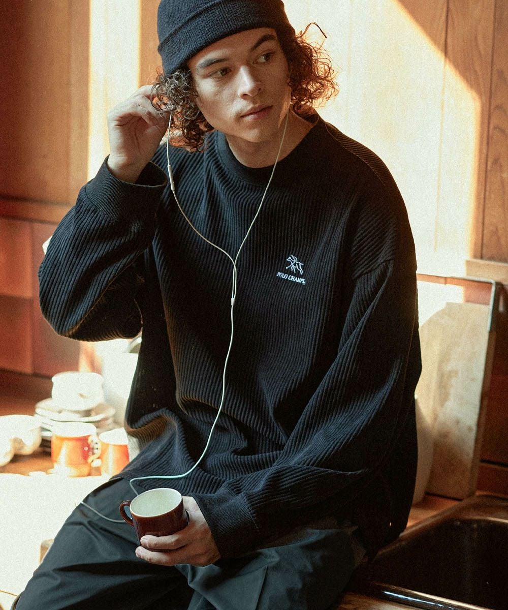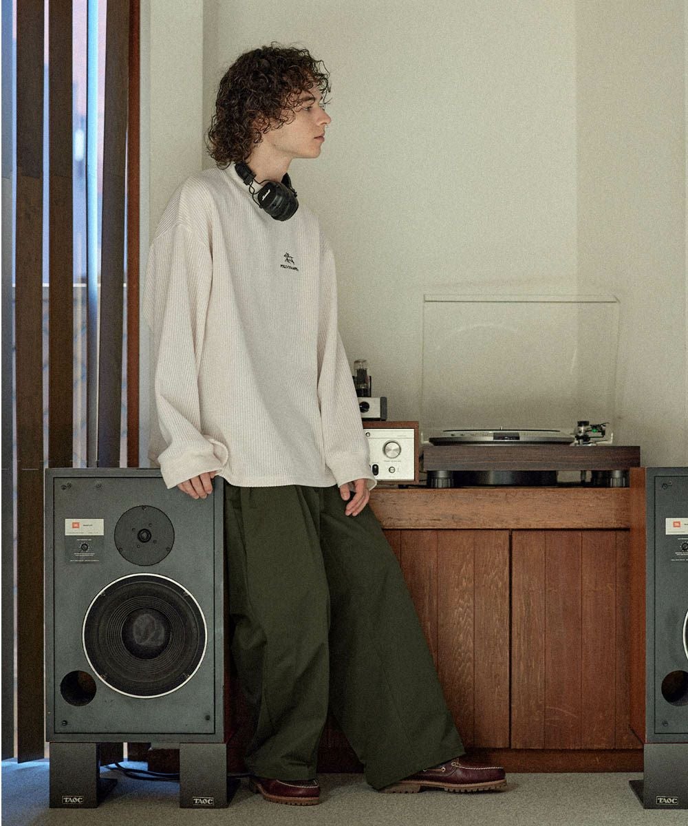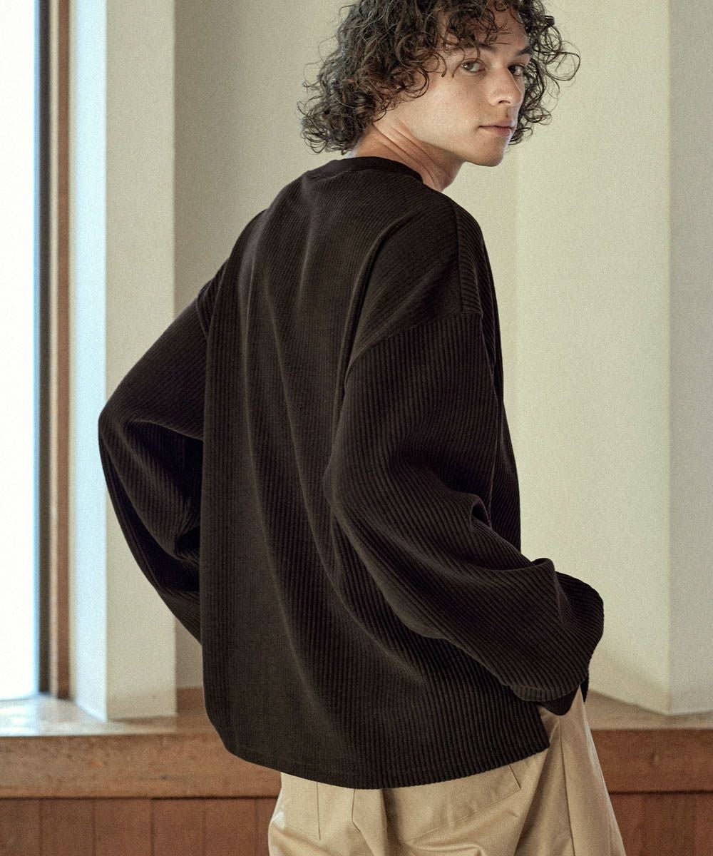 ウォーム感のあるコーデュロイ生地を使用したモックネックプルオーバー。胸元のブランド刺繍ロゴがワンポイントになり、1枚でコーディネートが完成するアイテムです。ゆったりとしたシルエットにドロップショルダー、サイドスリットが抜け感たっぷりのデザイン。