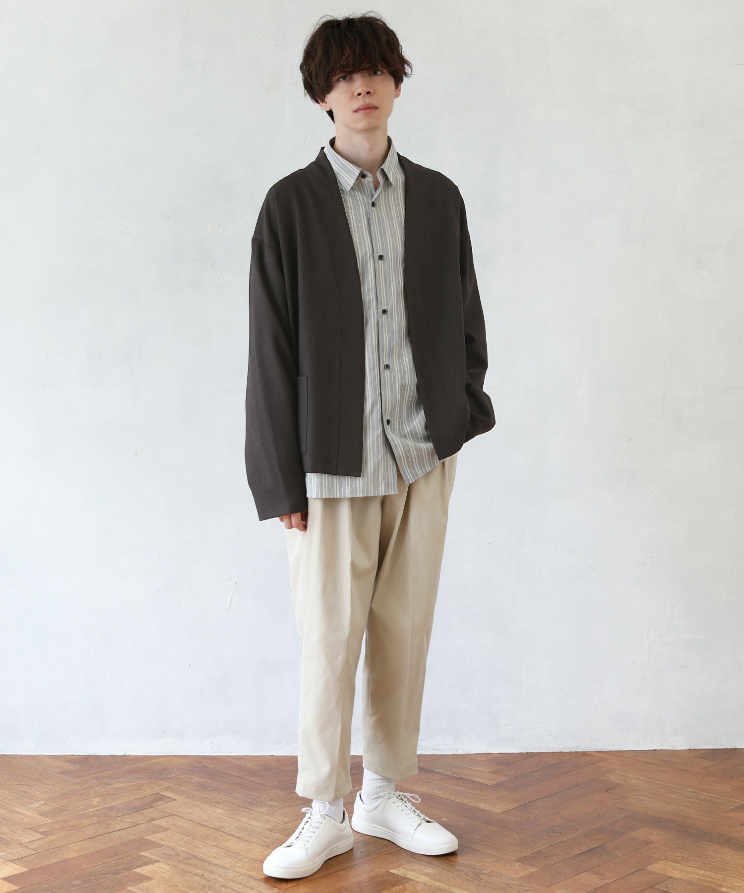 ボタンレスのフロントとゆったりとしたワイドシルエットがリラックス感のあるスタイリングを演出します。
