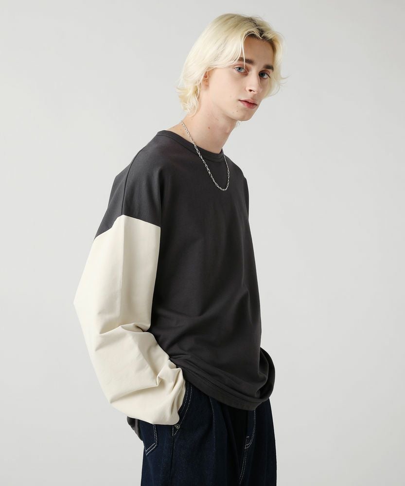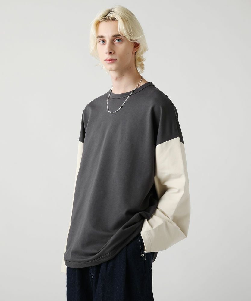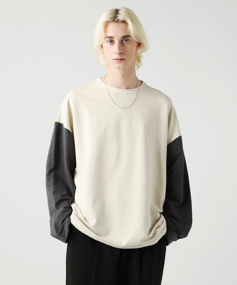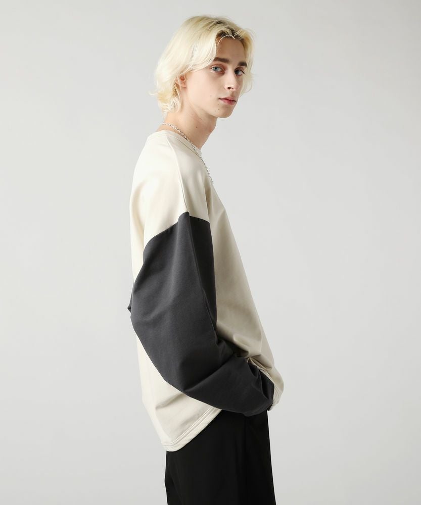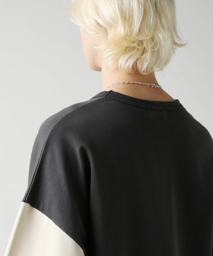 コンパクトな表情でストレッチ性のあるミニ裏毛を使用したベースボールTシャツ。アイボリーとチャコールという旬のくすみカラーで配色した、大胆な切り替え袖がおしゃれな一着です。ラウンドした裾や、袖のボリューム感がアクセントになり、ゆったりとしたシルエットが大人のリラックスコーデにぴったりです。