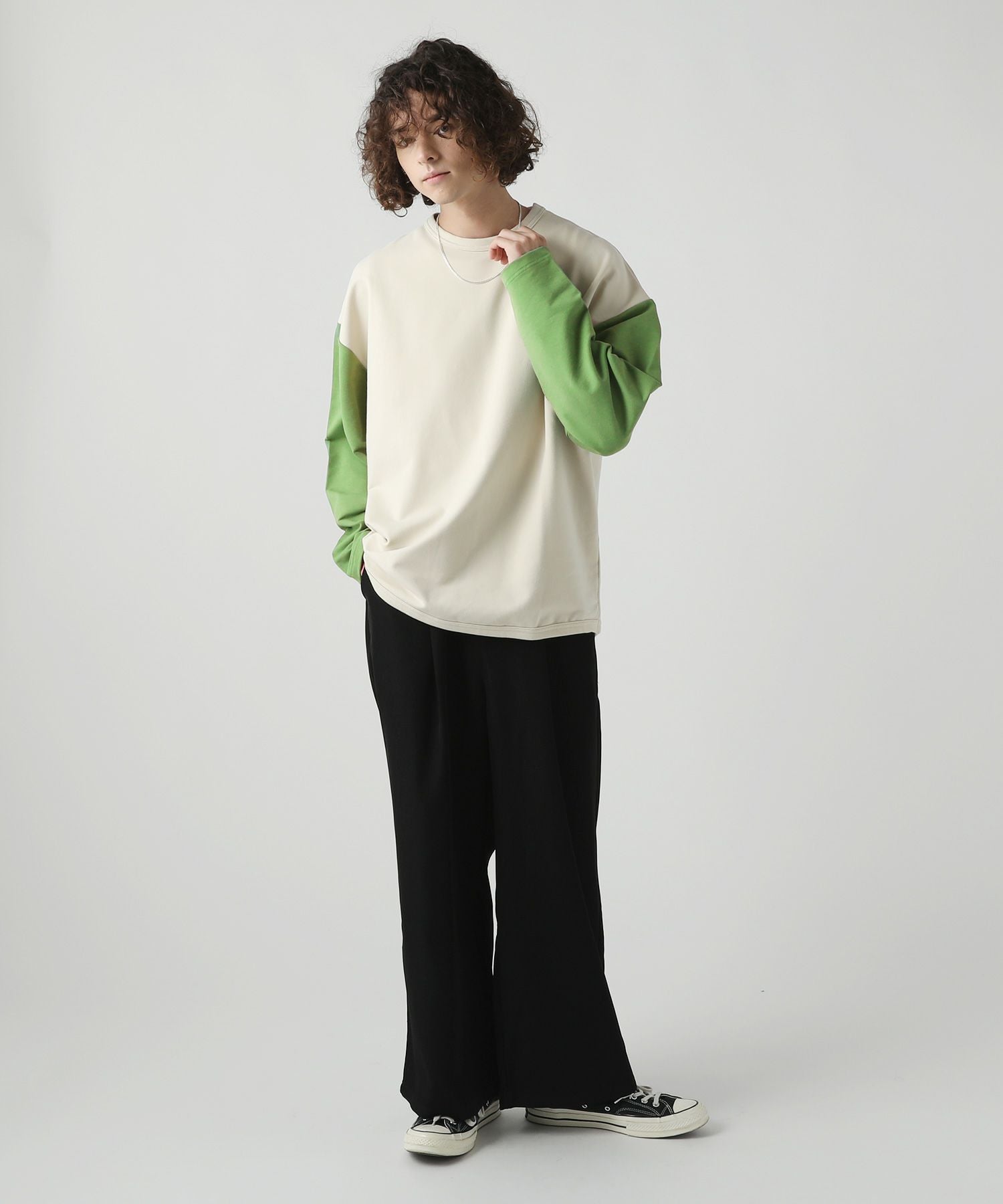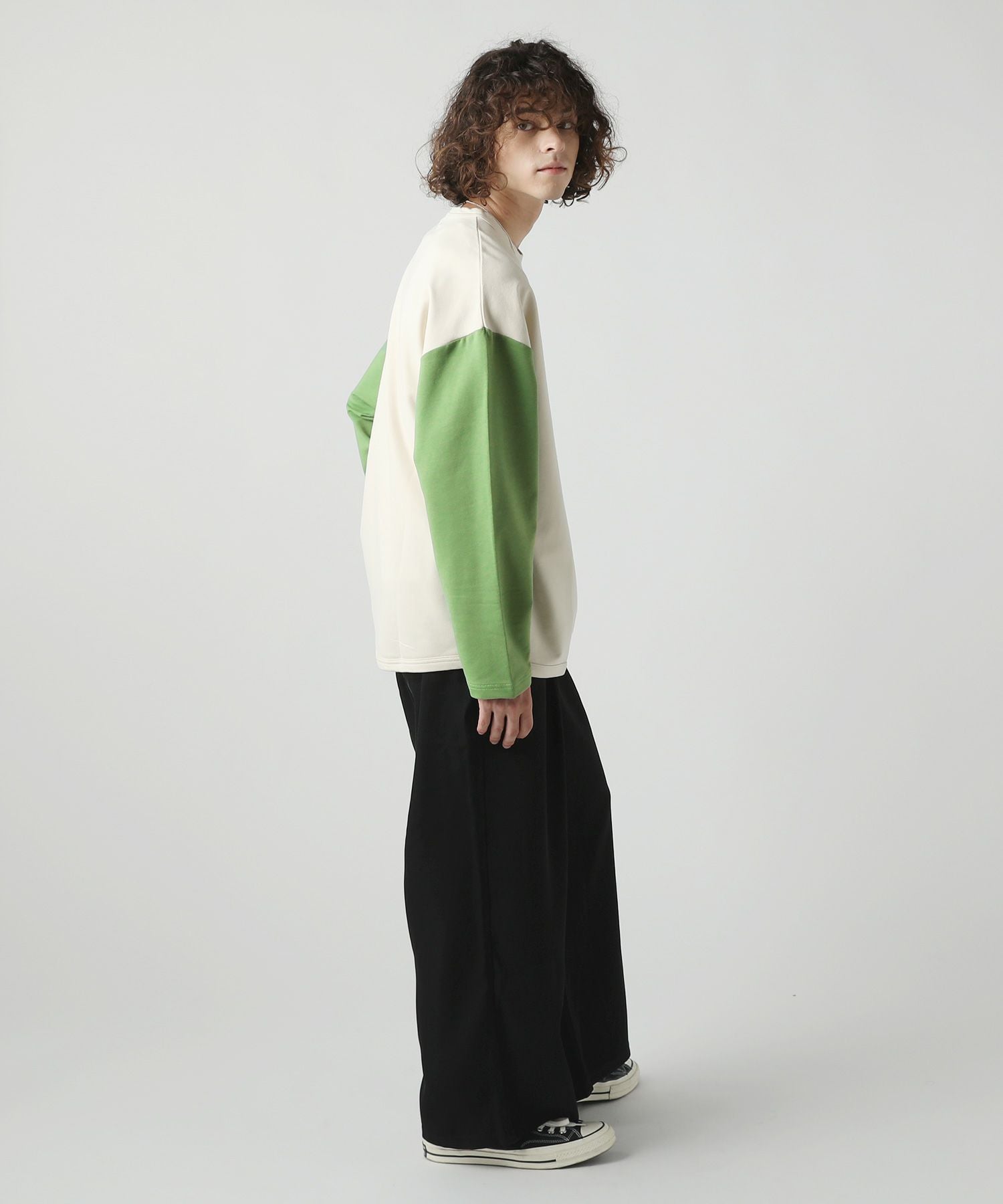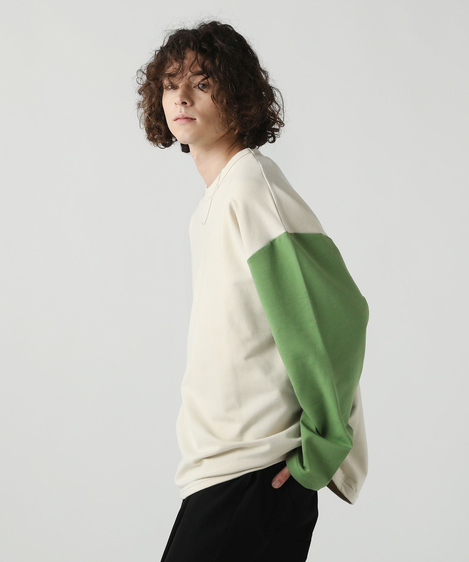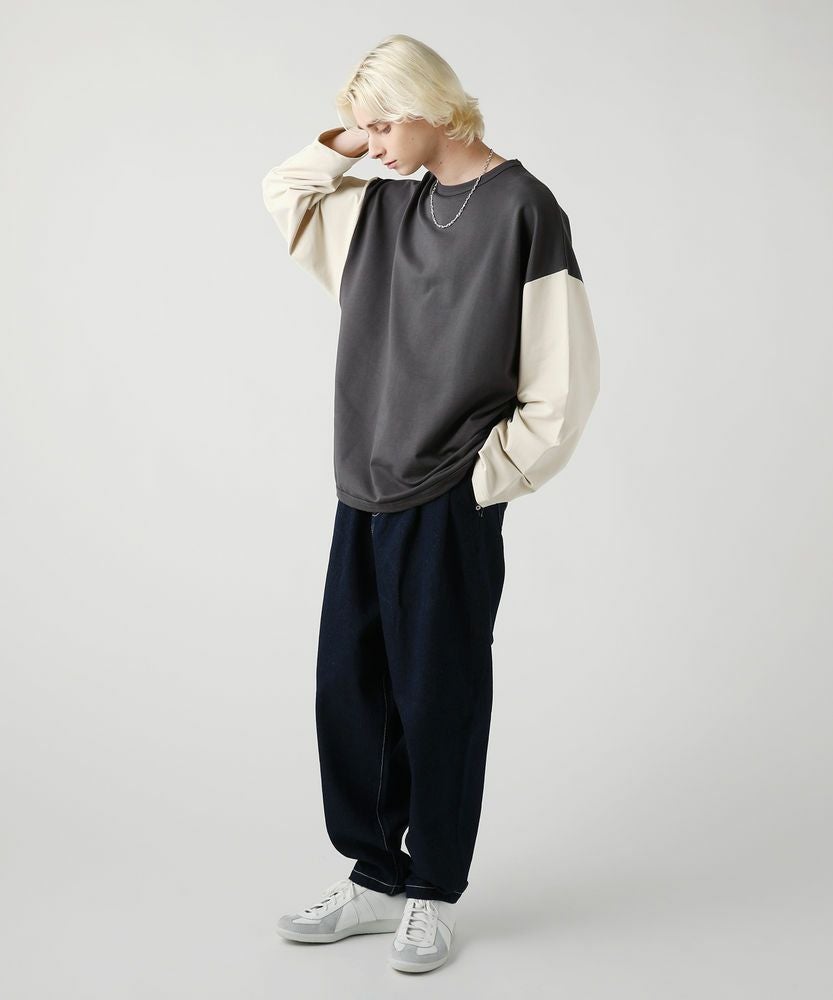 コンパクトな表情でストレッチ性のあるミニ裏毛を使用したベースボールTシャツ。アイボリーとチャコールという旬のくすみカラーで配色した、大胆な切り替え袖がおしゃれな一着です。ラウンドした裾や、袖のボリューム感がアクセントになり、ゆったりとしたシルエットが大人のリラックスコーデにぴったりです。