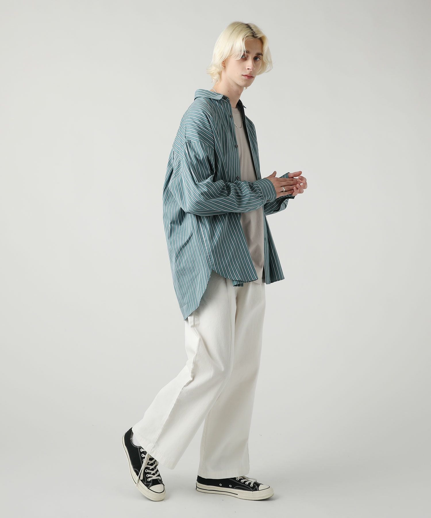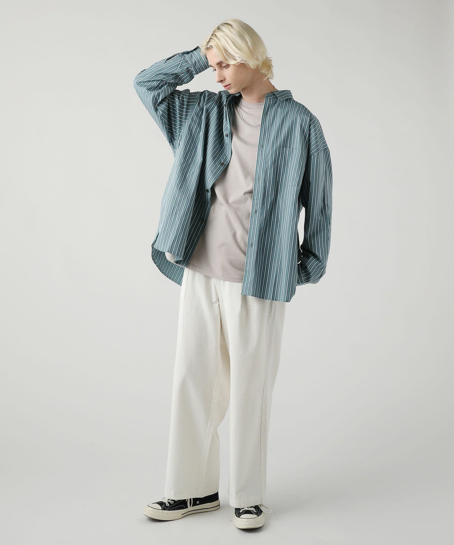 100/2 ドビーストライプオーバーサイズシャツ