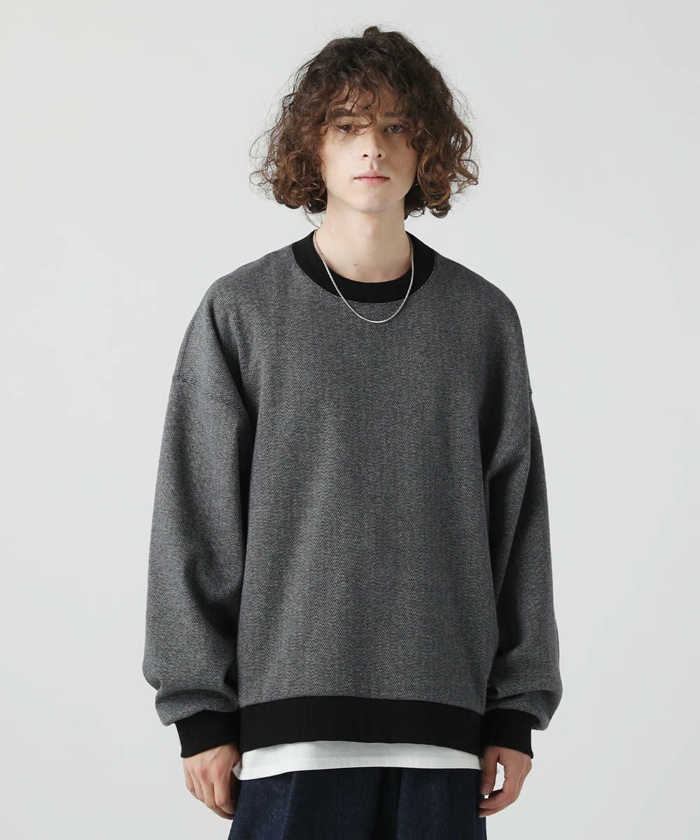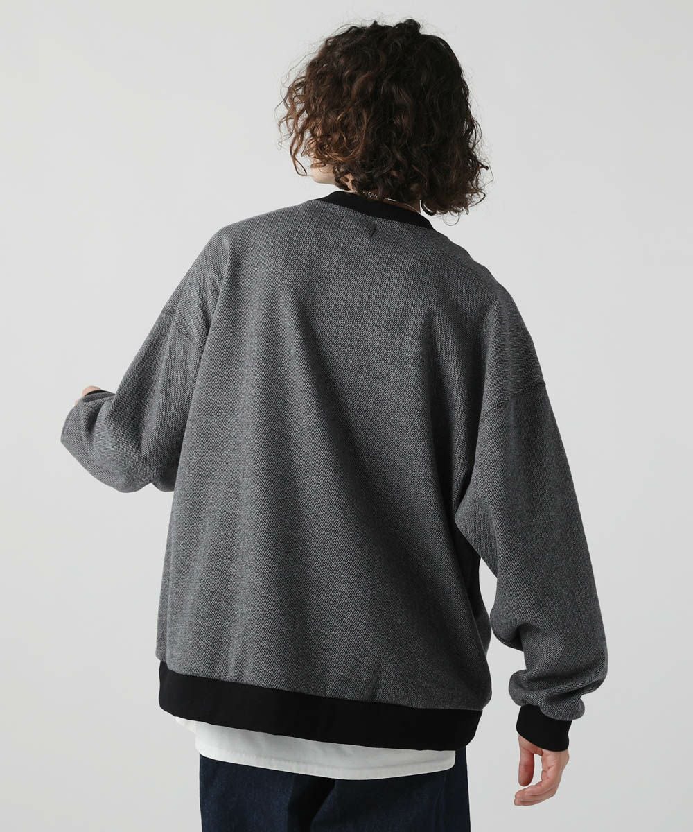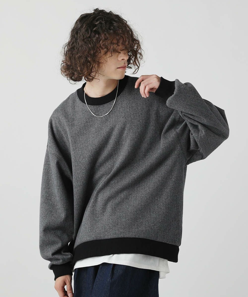 ■ボンバーヒート素材とヘリンボーン柄が温かみのあるプルオーバー。