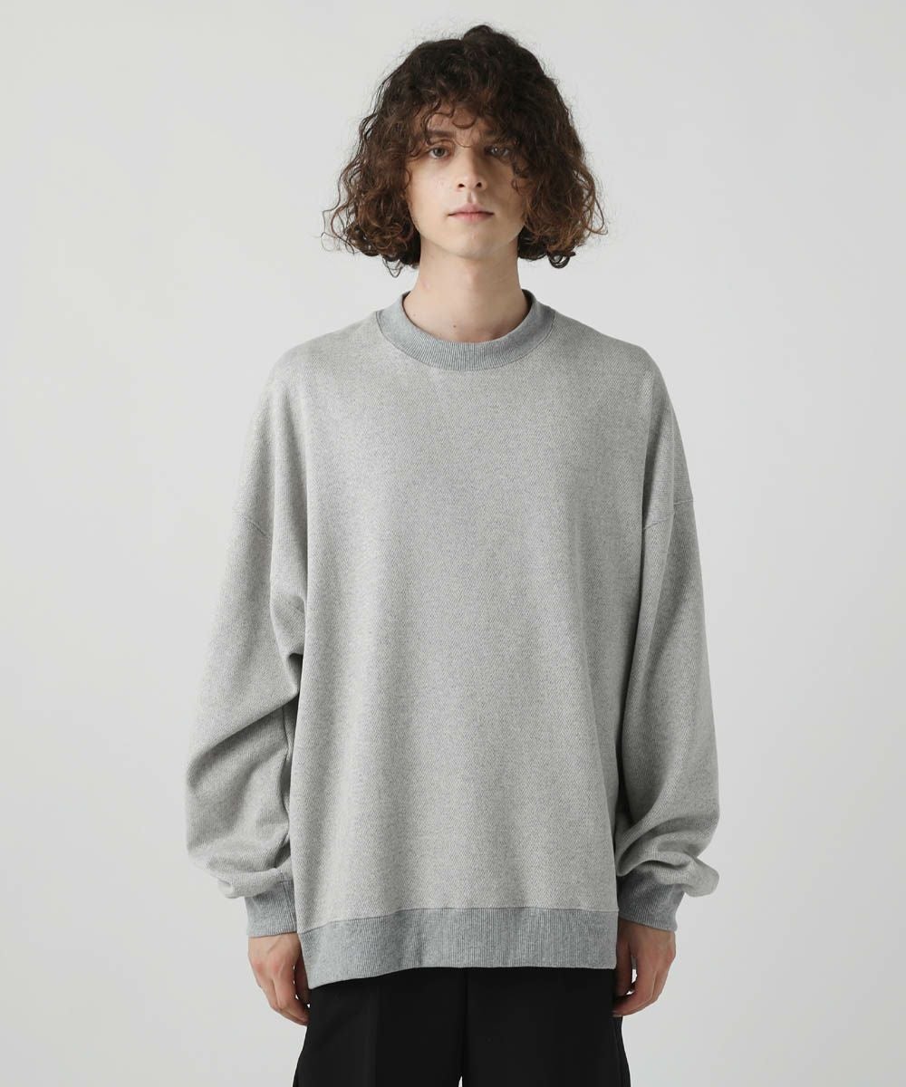 ゆったりとしたオーバーサイズのシルエットで裾は前後差のあるラウンドヘムが特徴的です。シンプルなデザインながら着た時に前後のバランスが取れたシルエットに。たまり袖のゆるっとした雰囲気もポイントで1枚でトレンド感のある着こなしに見せてくれます。