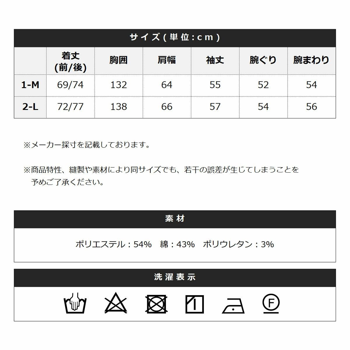 ポリエステル:54% 綿:43% ポリウレタン:3%