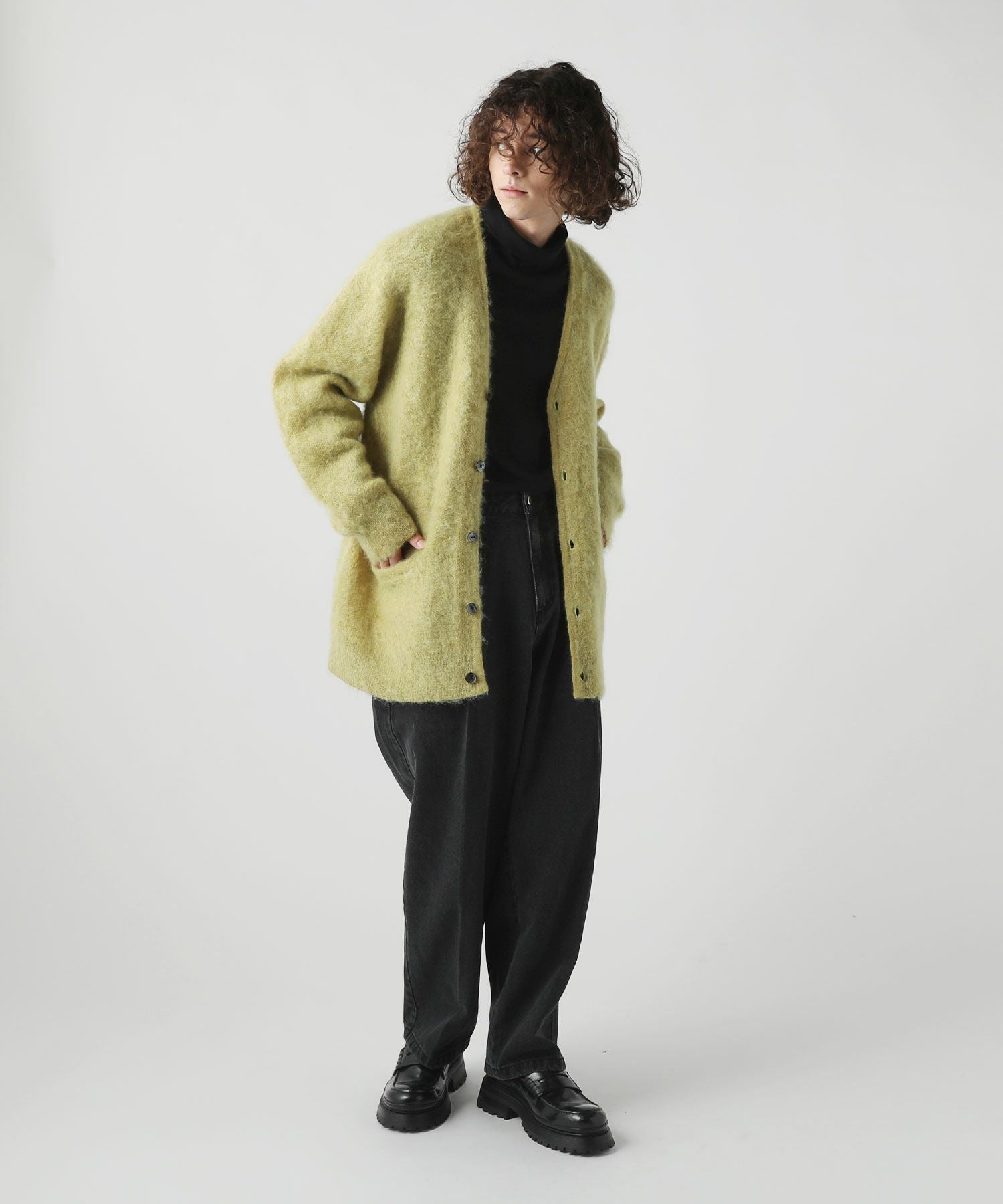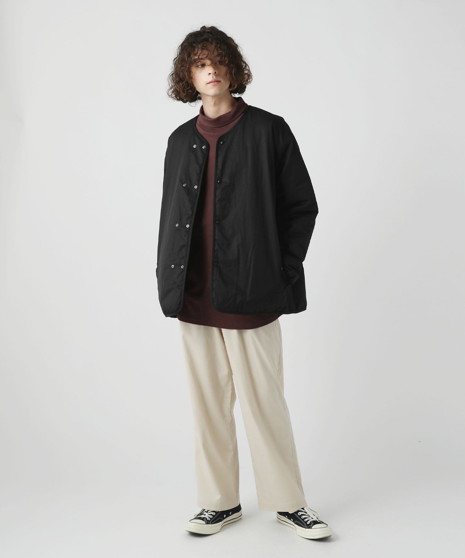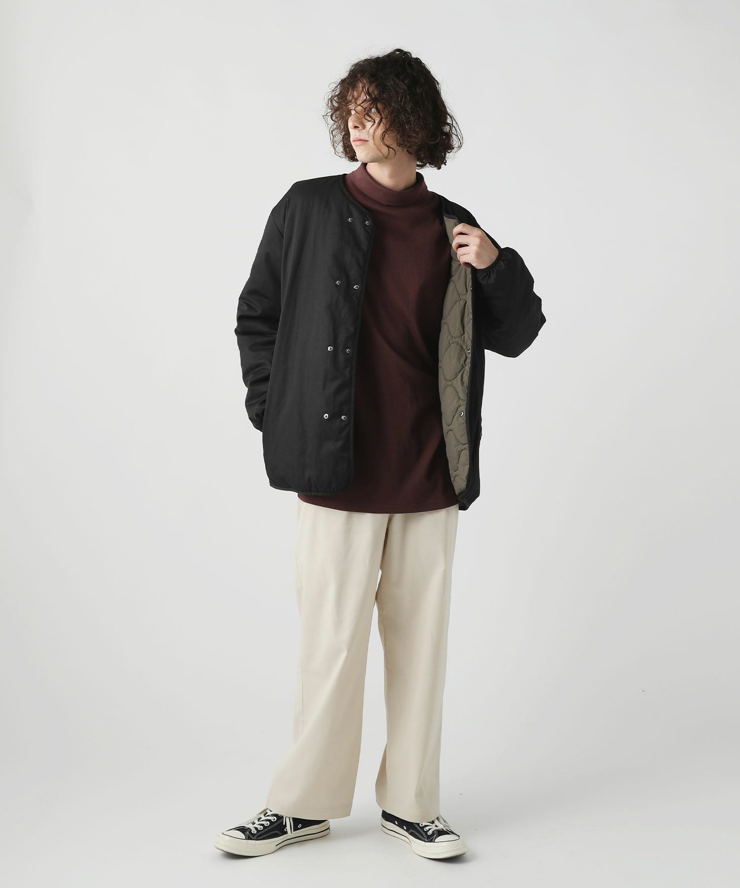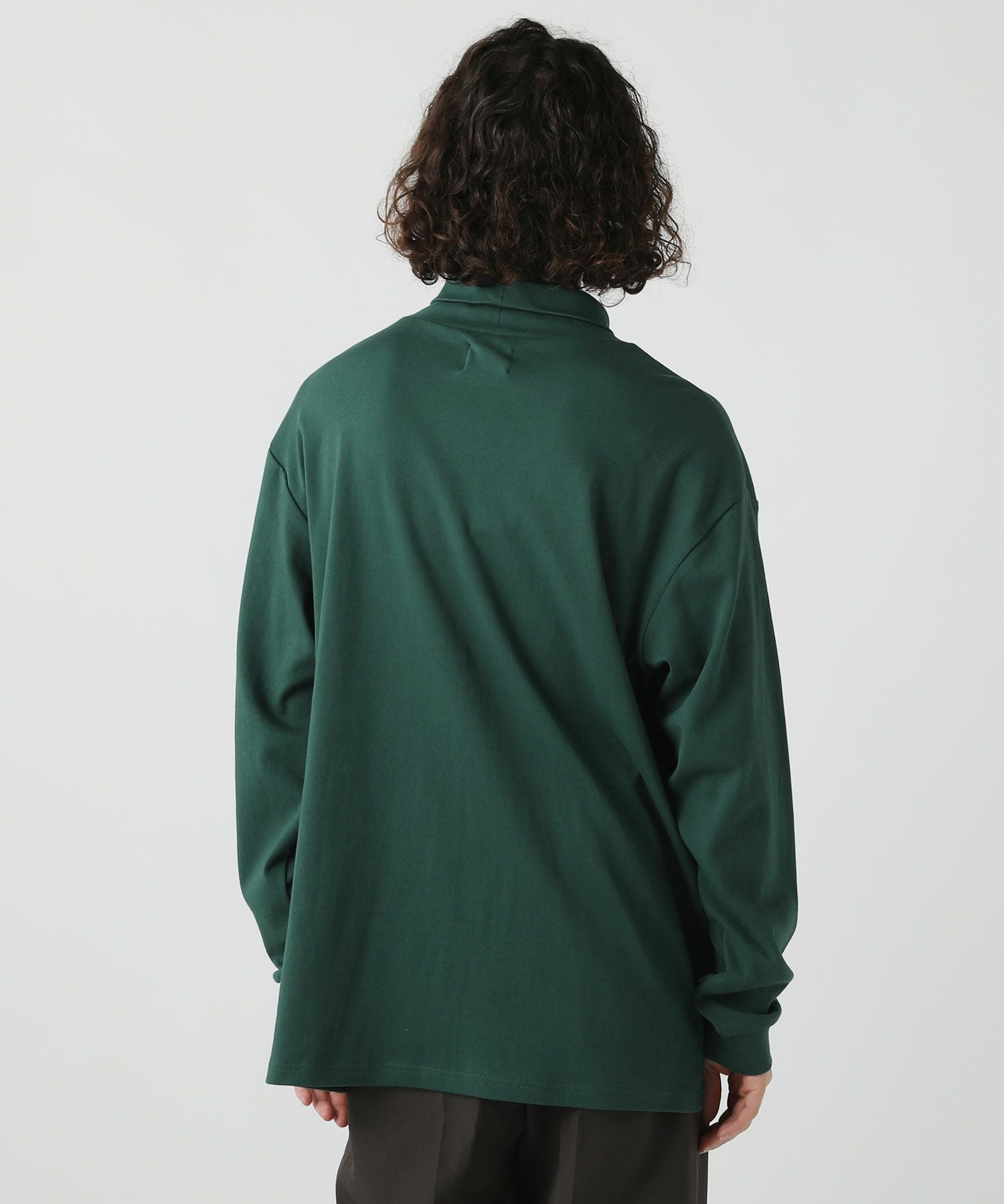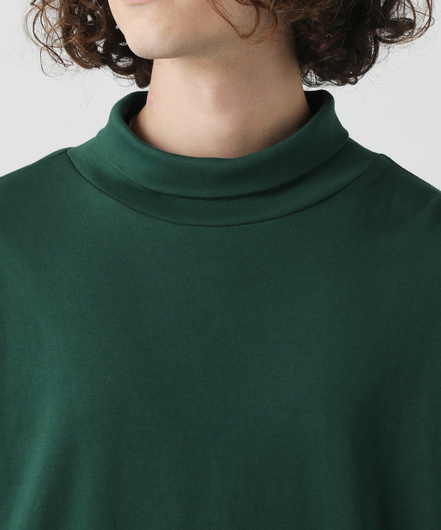 ネックにはしっかりゆとりをもたせ、締め付け感なくラクに着られるタートルネックに仕上げました。ゆとりがあるのでタートルネックを折り返してモックネックのようにご着用いただくこともできます。着こなしの幅が広がるネックデザインです。