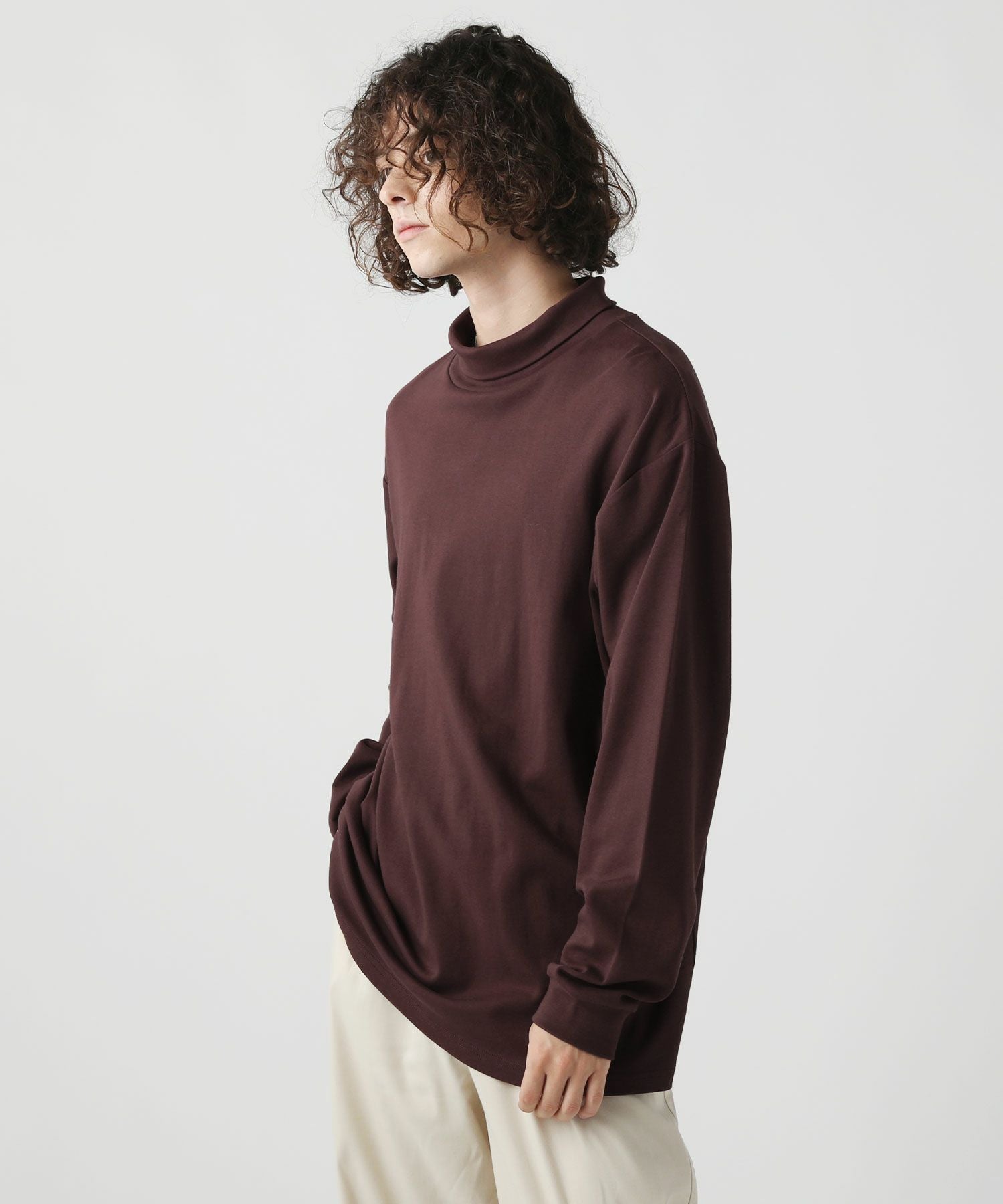 きめ細かなスムース生地で上品に仕上げたタートルネックカットソー。インナーとしてだけでなく、一枚着としてもお洒落に着られるゆったりめなシルエット。飽きのこないシンプルなデザインで高い着回し力を発揮する一着です。上質な生地感でコーデに品の良さをプラスしてくれる、大人なデイリーカットソーです。
