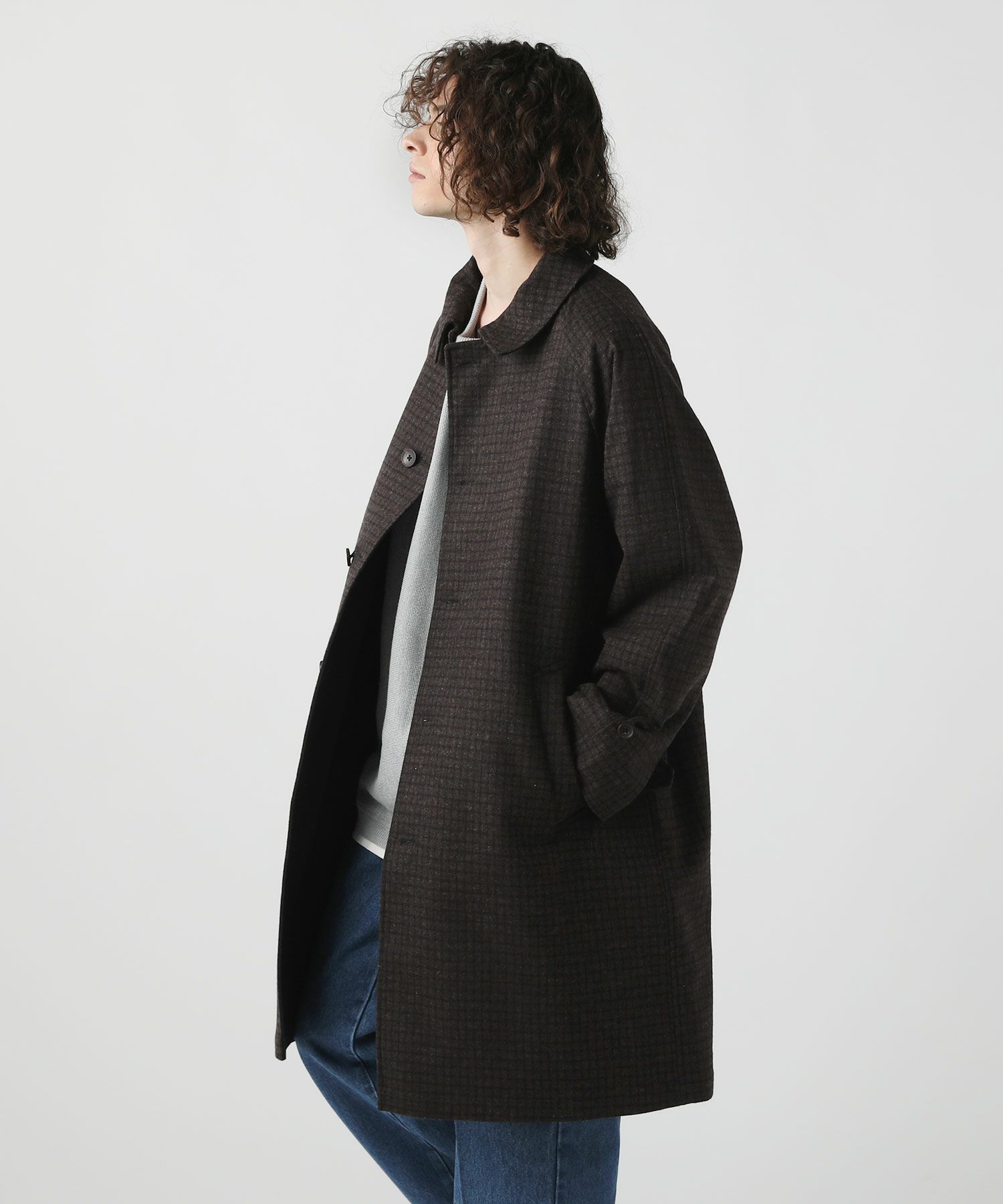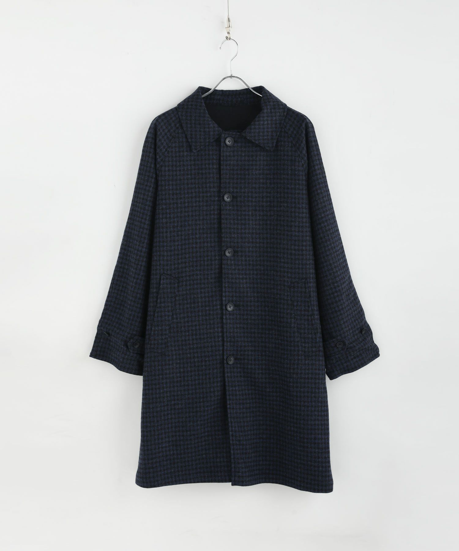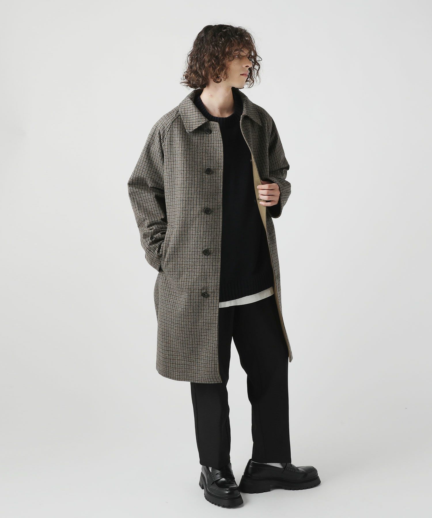 気分に合わせて着こなしに変化をつけられるリバーシブルコート。 表地はウォーム感のあるウール混素材を使用したクラッシックなチェック柄、裏地は上品な艶のあるシンプルな無地のギャバジン生地です。