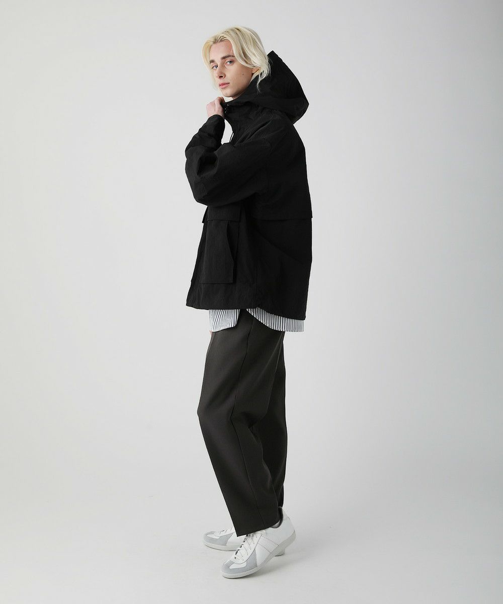 身幅にゆとりを持たせたオーバーサイズで、丈に前後差があるラフなシルエットが特徴。