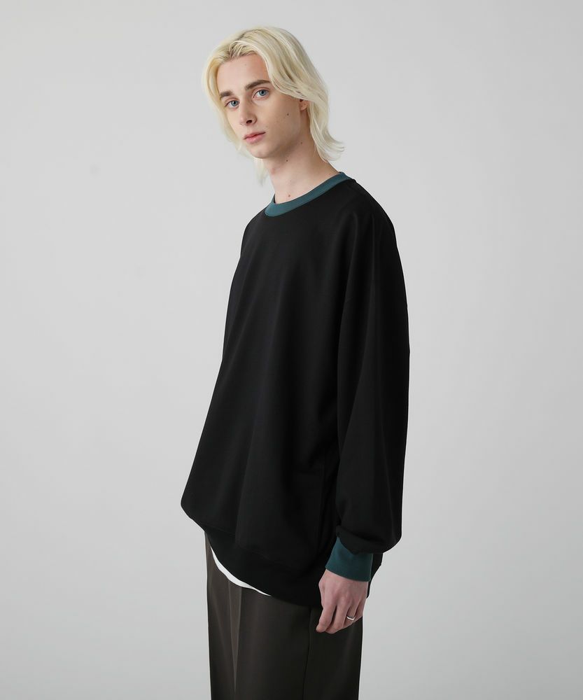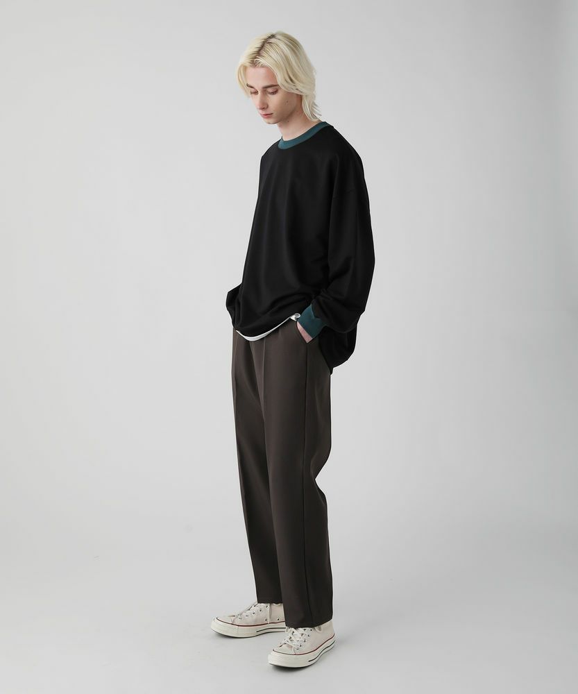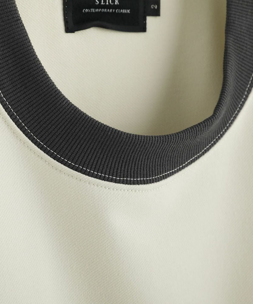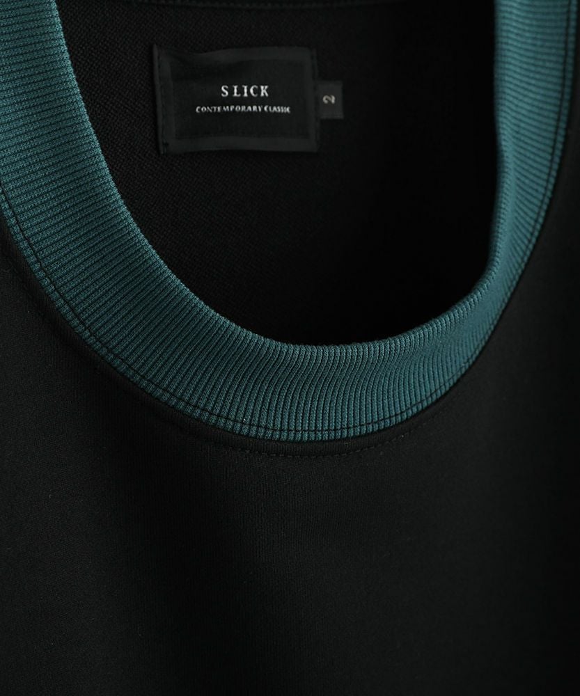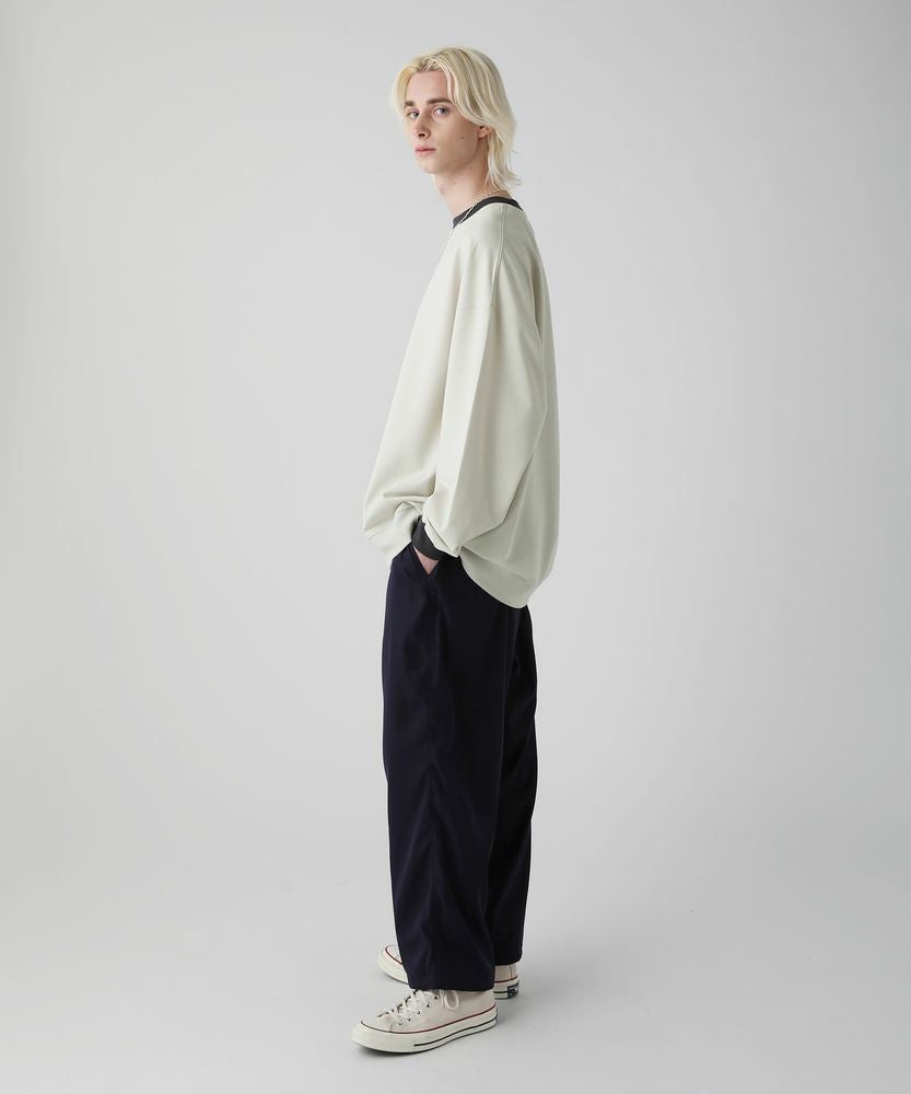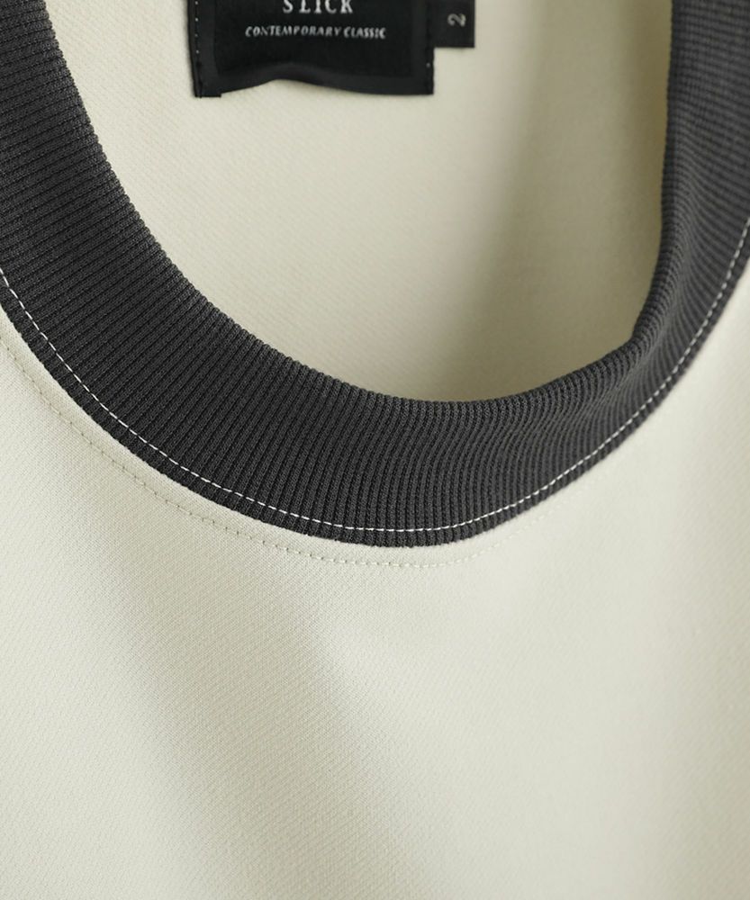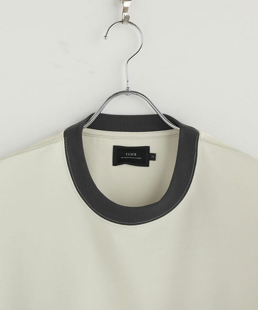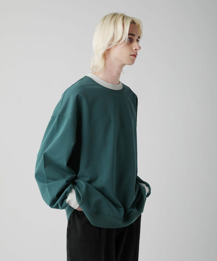 袖口と首元のリブ配色がアクセントになったトリムスウェットです。スポーティな印象のあるトリムウェアを旬のくすみカラーで配色することで、トレンド感のある一着に仕上げました。