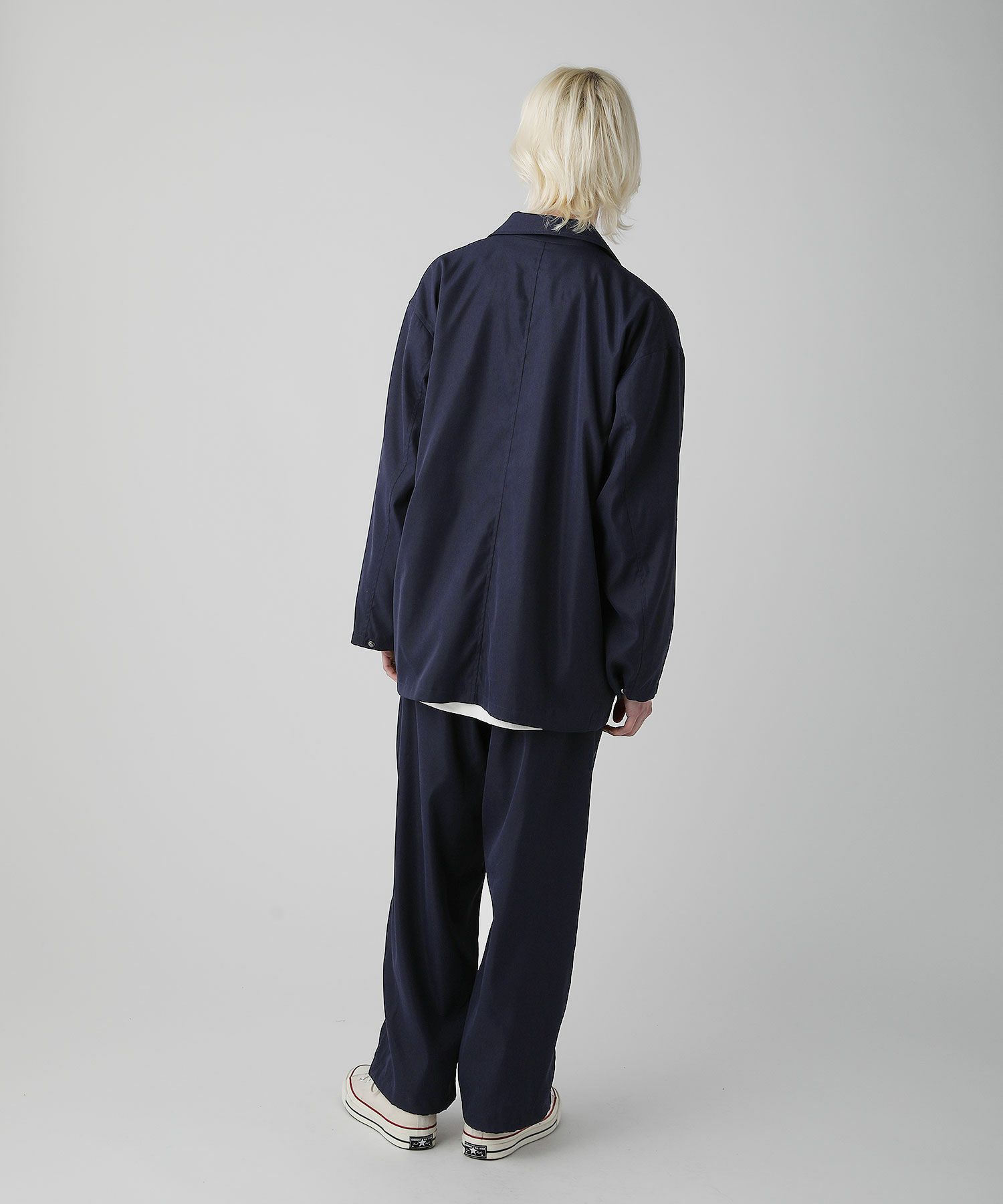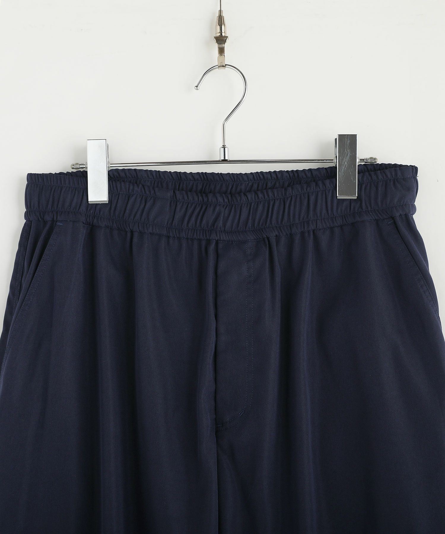 リラックス感のあるゆったりとしたテーパードシルエットのトラウザーパンツ。ストレッチ性のある綿ライクなポリエステルツイルを使用し、リラックス感のあるシルエットに仕上げました。 ポリエステル素材なので、ご自宅でのイージーケアが可能です。
