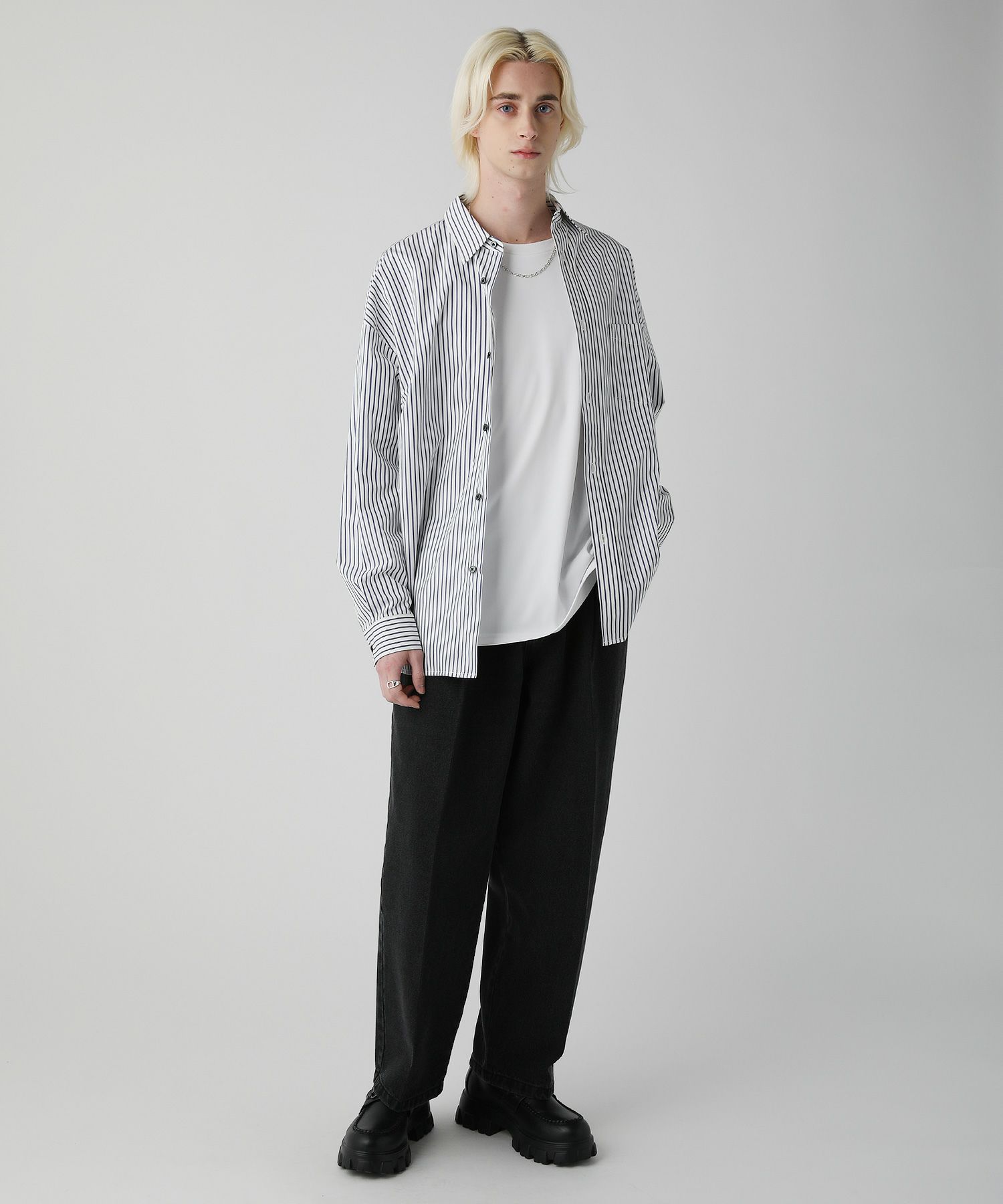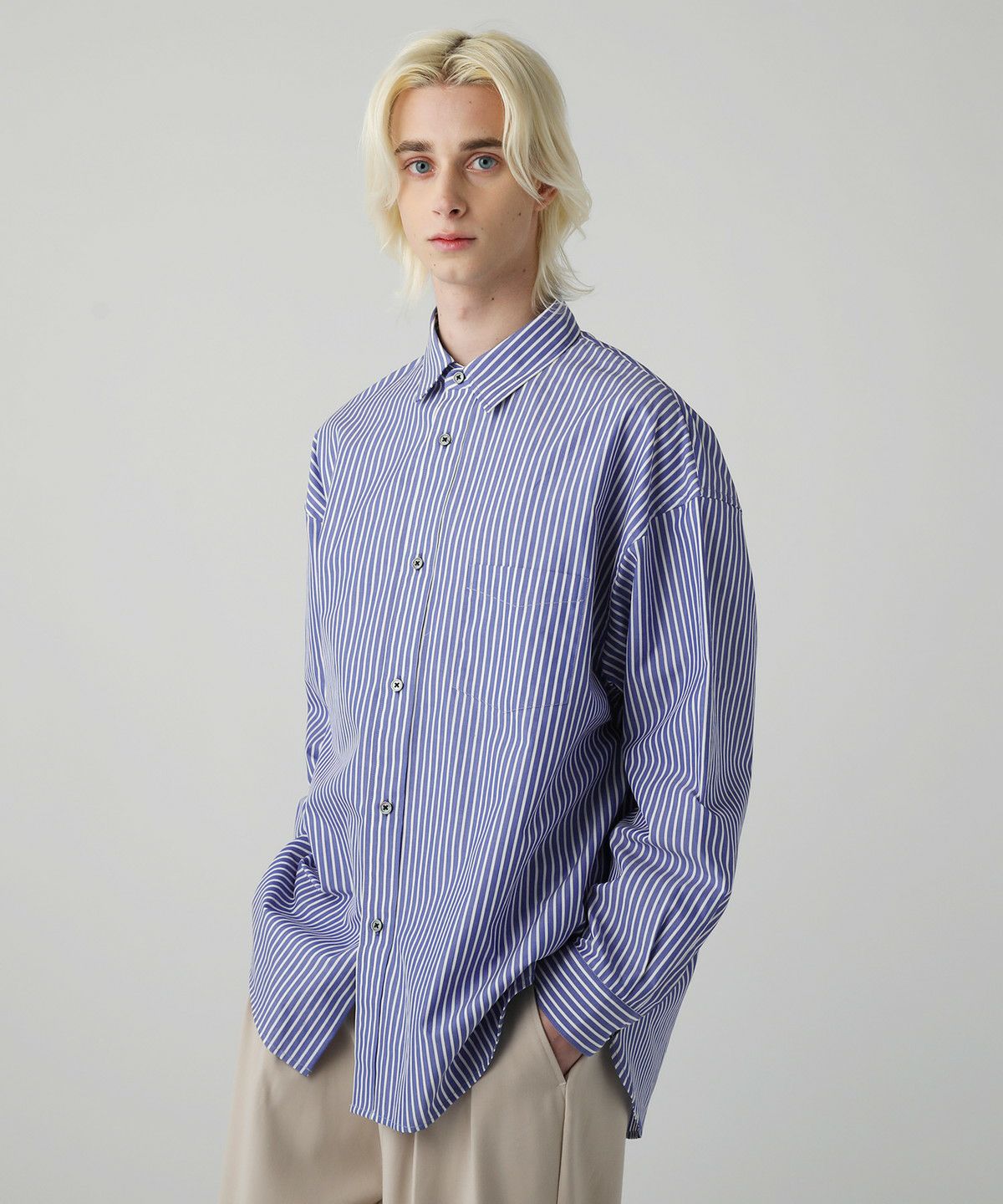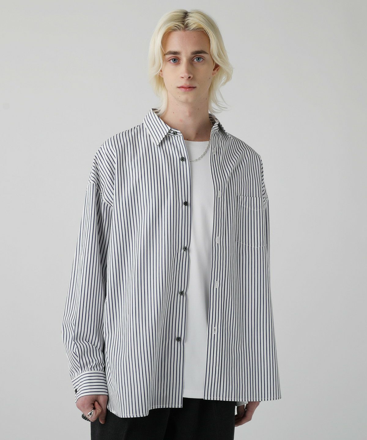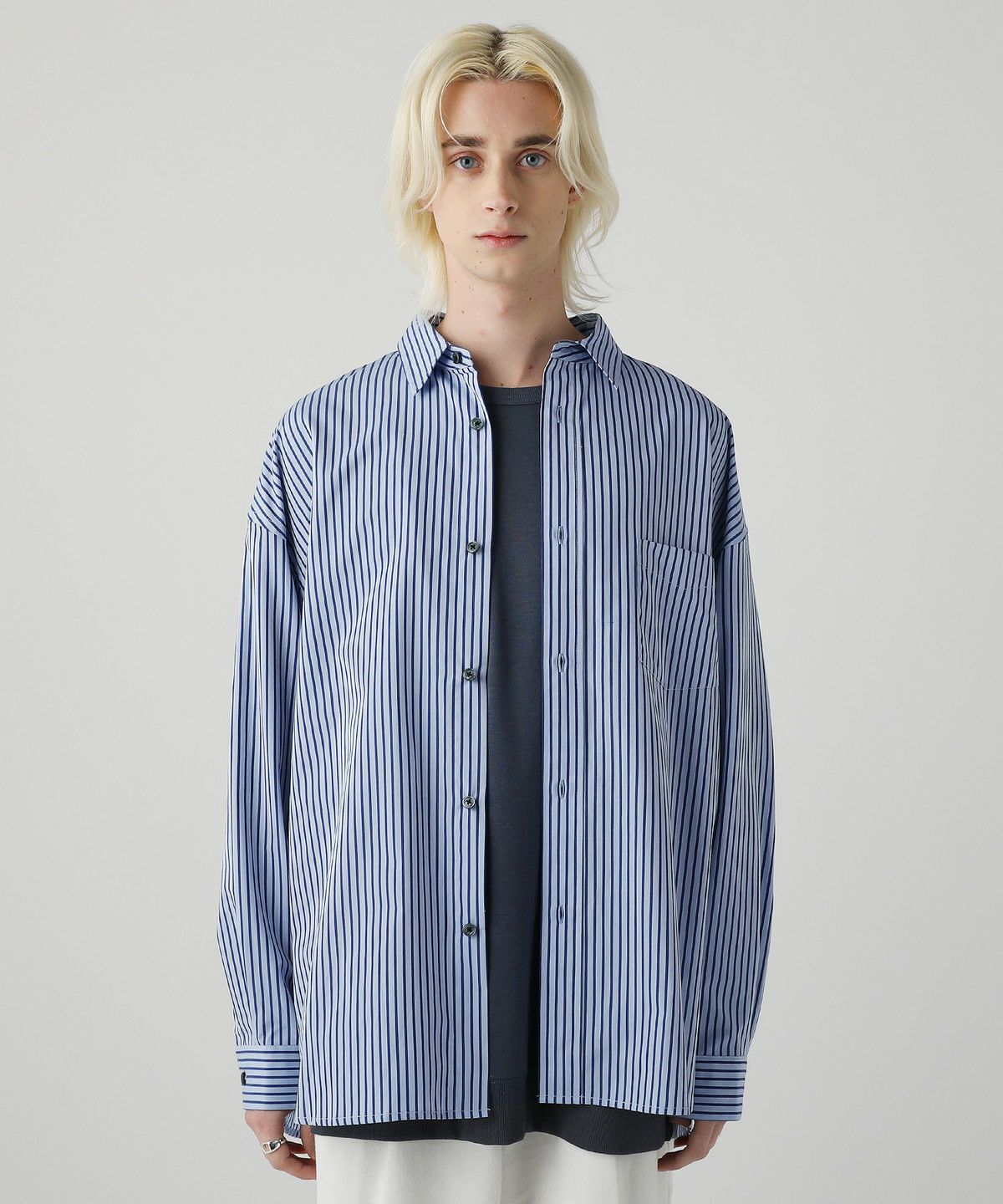 120/2ブロードストライプオーバーサイズ長袖シャツ