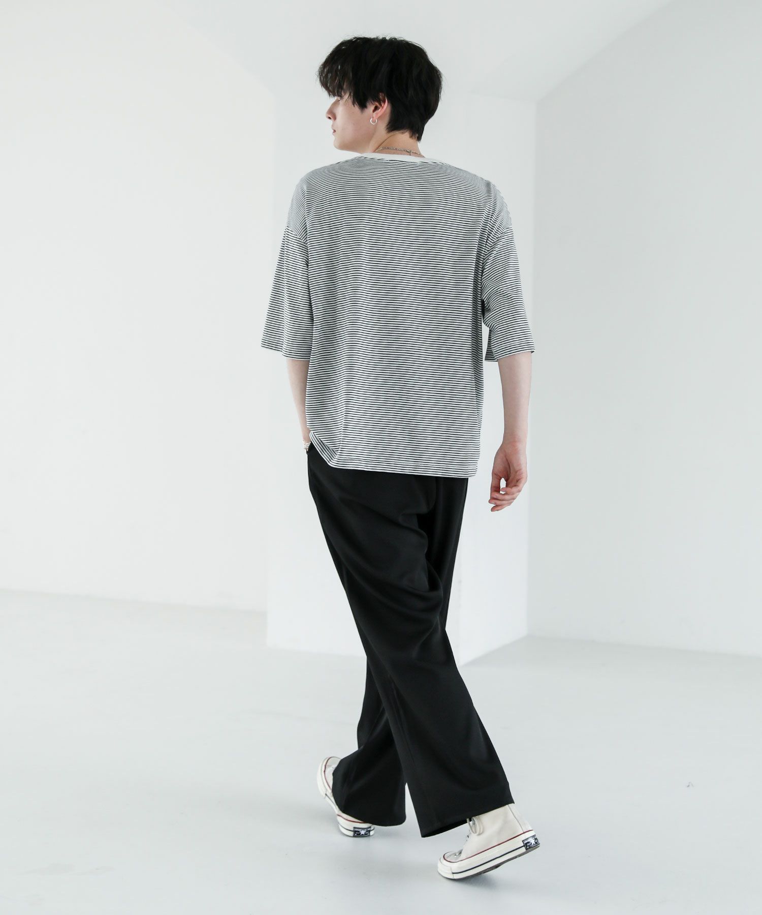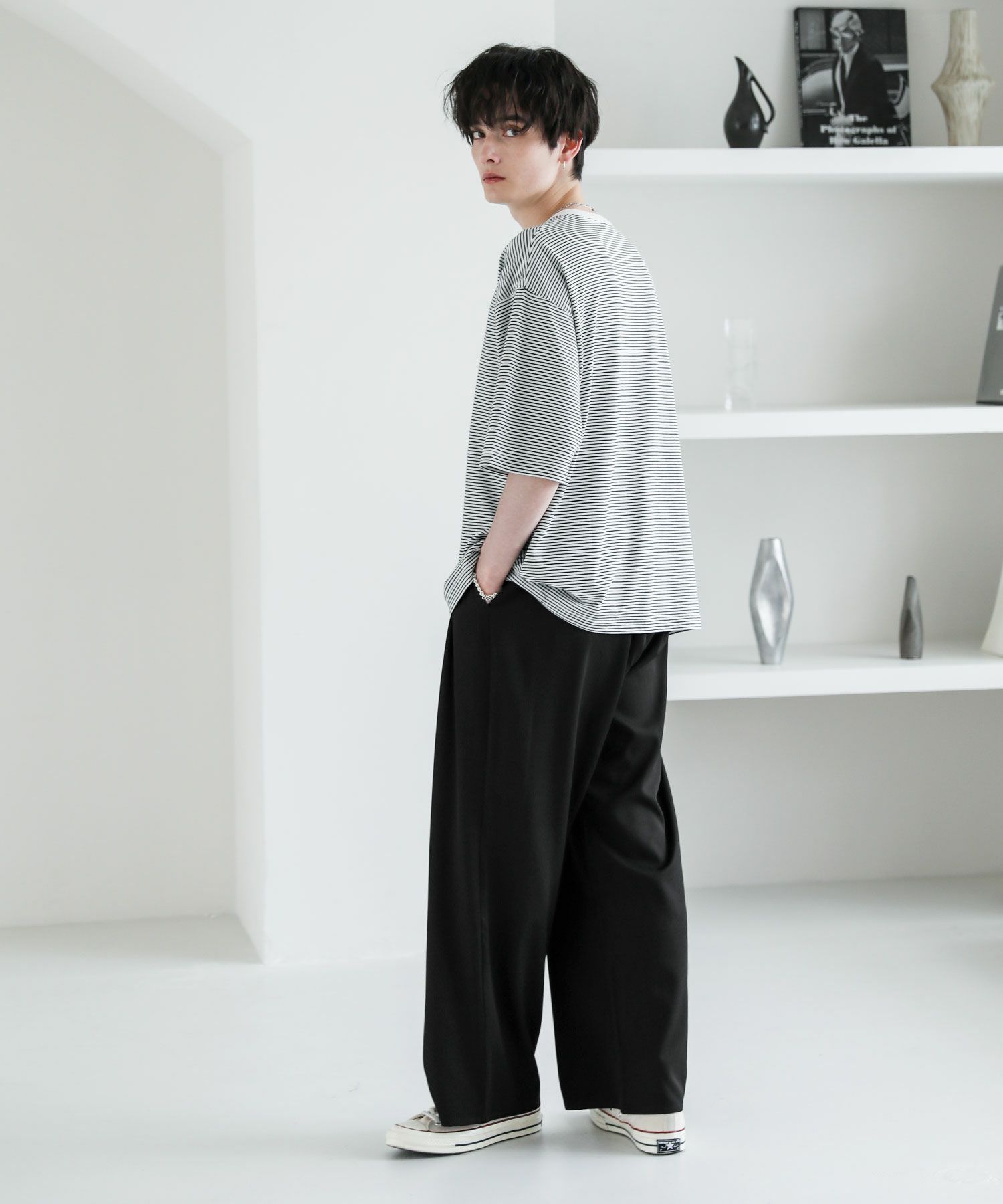【2点セット】ボーダービッグTee/タックワイドスラックス