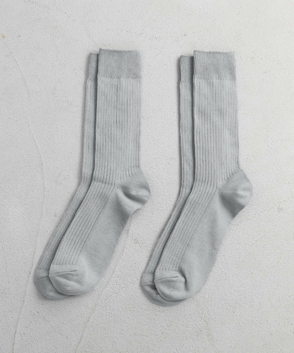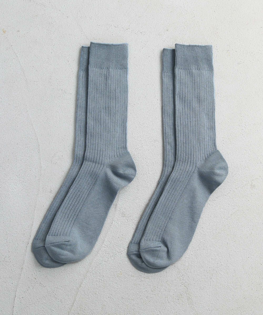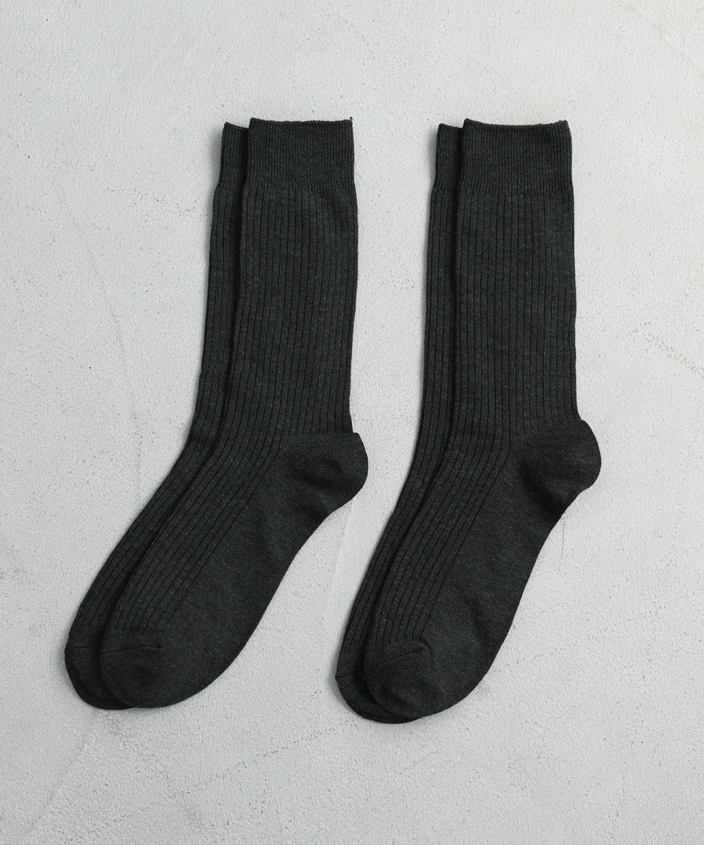 抗菌・防臭加工を施した、機能性の高いリブ編みソックスです。へたりにくくしっかりとした生地感でありながら、靴を履いてもごわつかない程よい厚みなので履く季節を問いません。ポリウレタン由来の程よい伸縮性で締めつけ感がなく、優しく足全体を覆ってくれるので、日常的に重宝します。