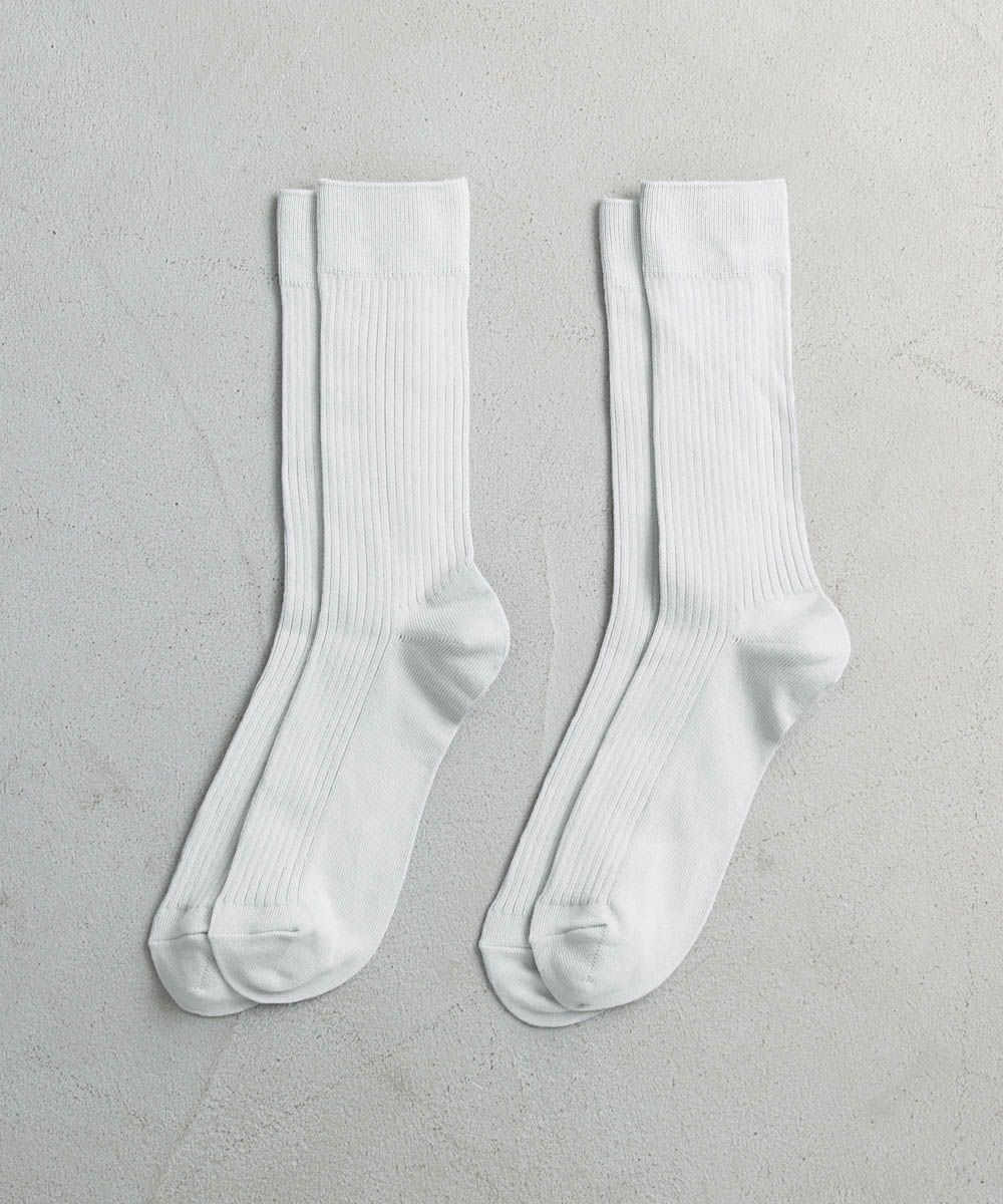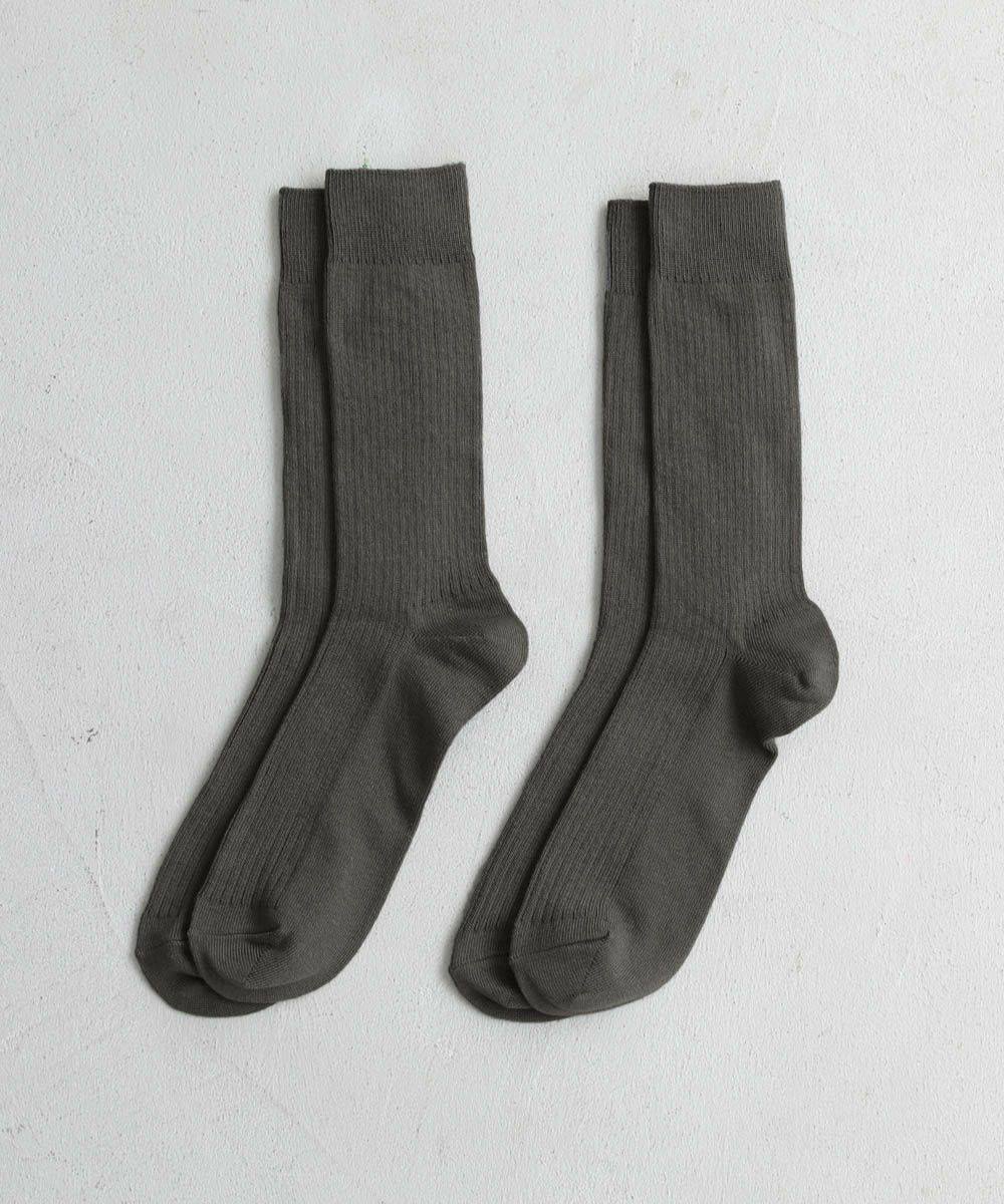 抗菌・防臭加工を施した、機能性の高いリブ編みソックスです。へたりにくくしっかりとした生地感でありながら、靴を履いてもごわつかない程よい厚みなので履く季節を問いません。ポリウレタン由来の程よい伸縮性で締めつけ感がなく、優しく足全体を覆ってくれるので、日常的に重宝します。