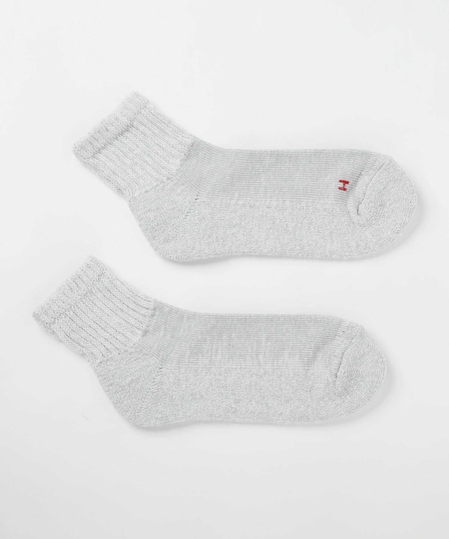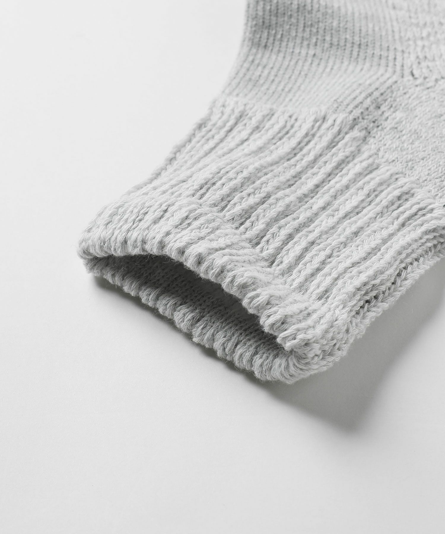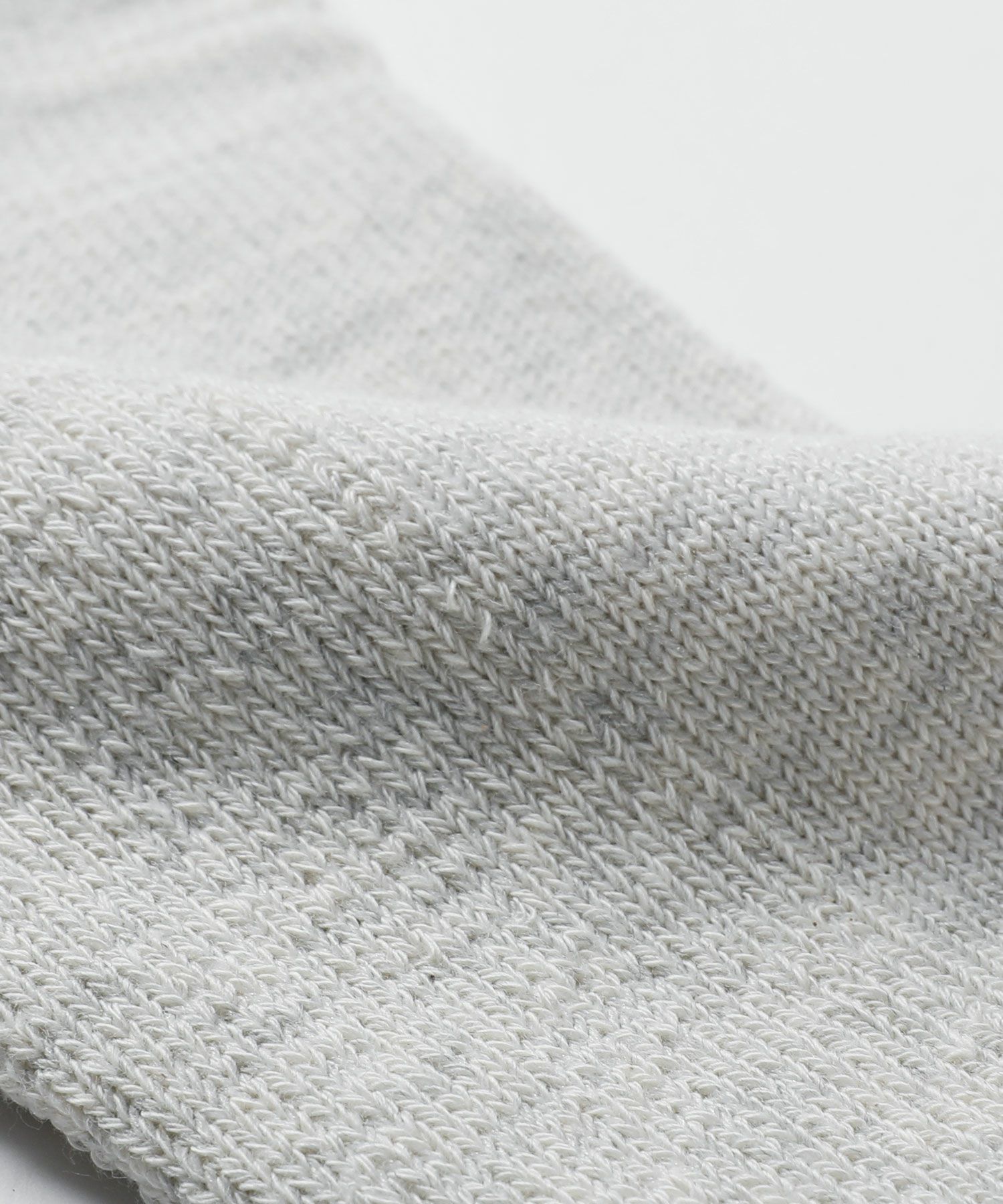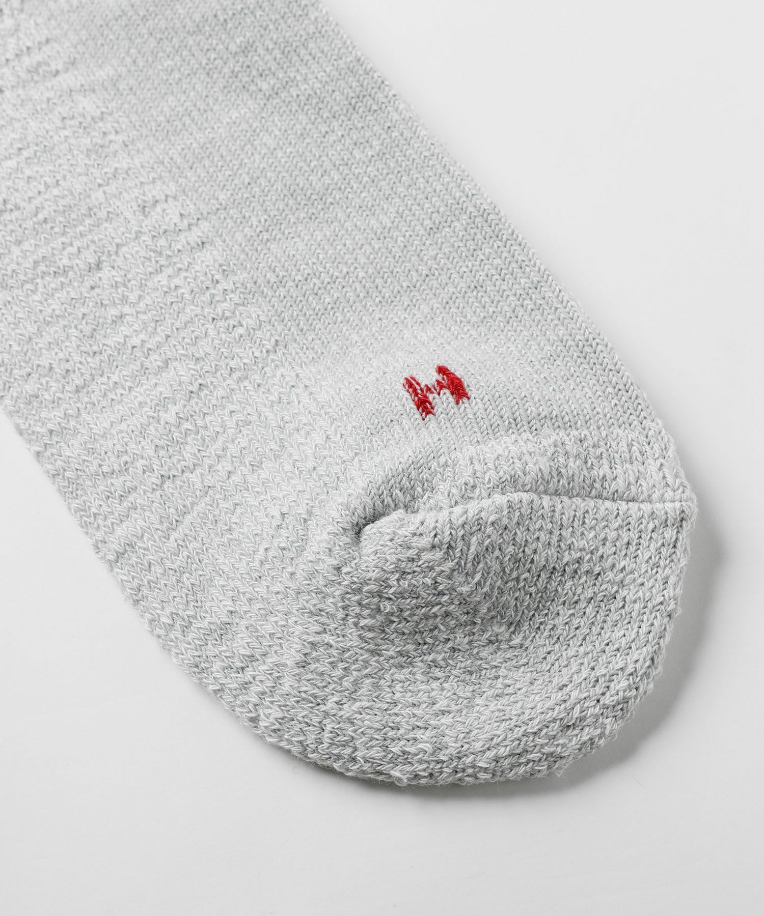 専用の編み機で仕立てられた生地となっており、足の甲は薄手で涼しく、かかとや足底、つま先はふかふかと厚みのある仕上がりになっています。しっかりとした生地感ながら通気性があるのでムレにくく、快適な履き心地のアイテムです。
