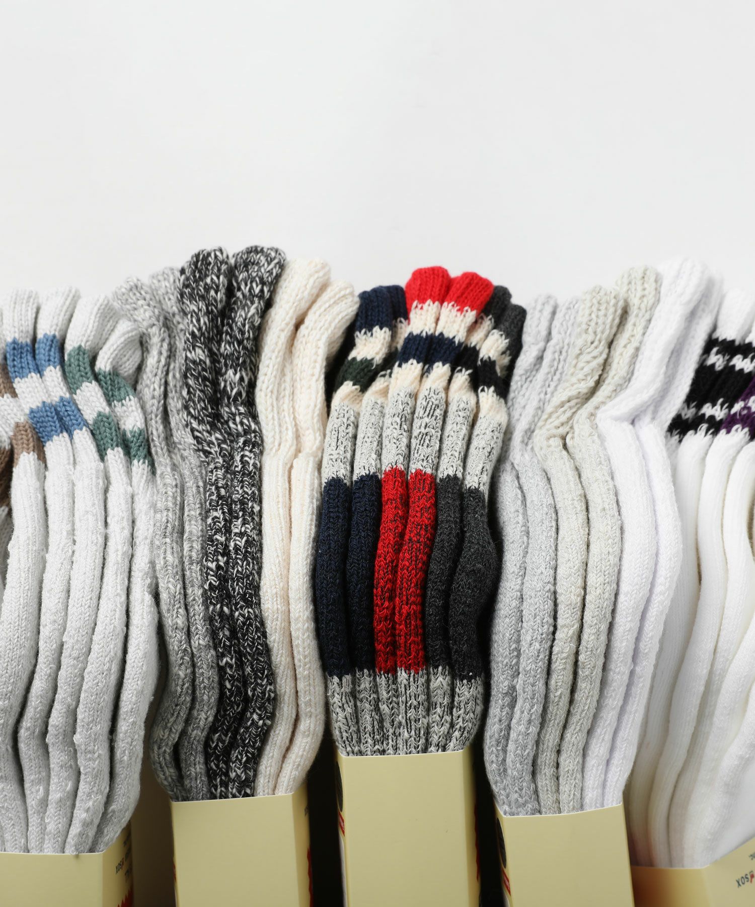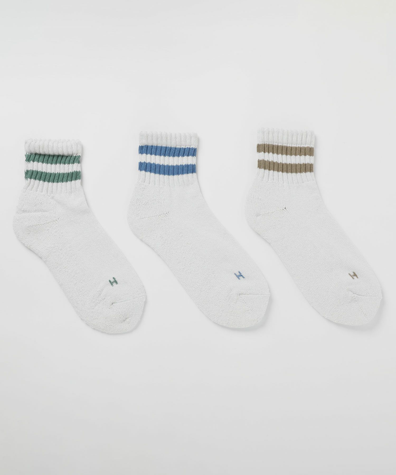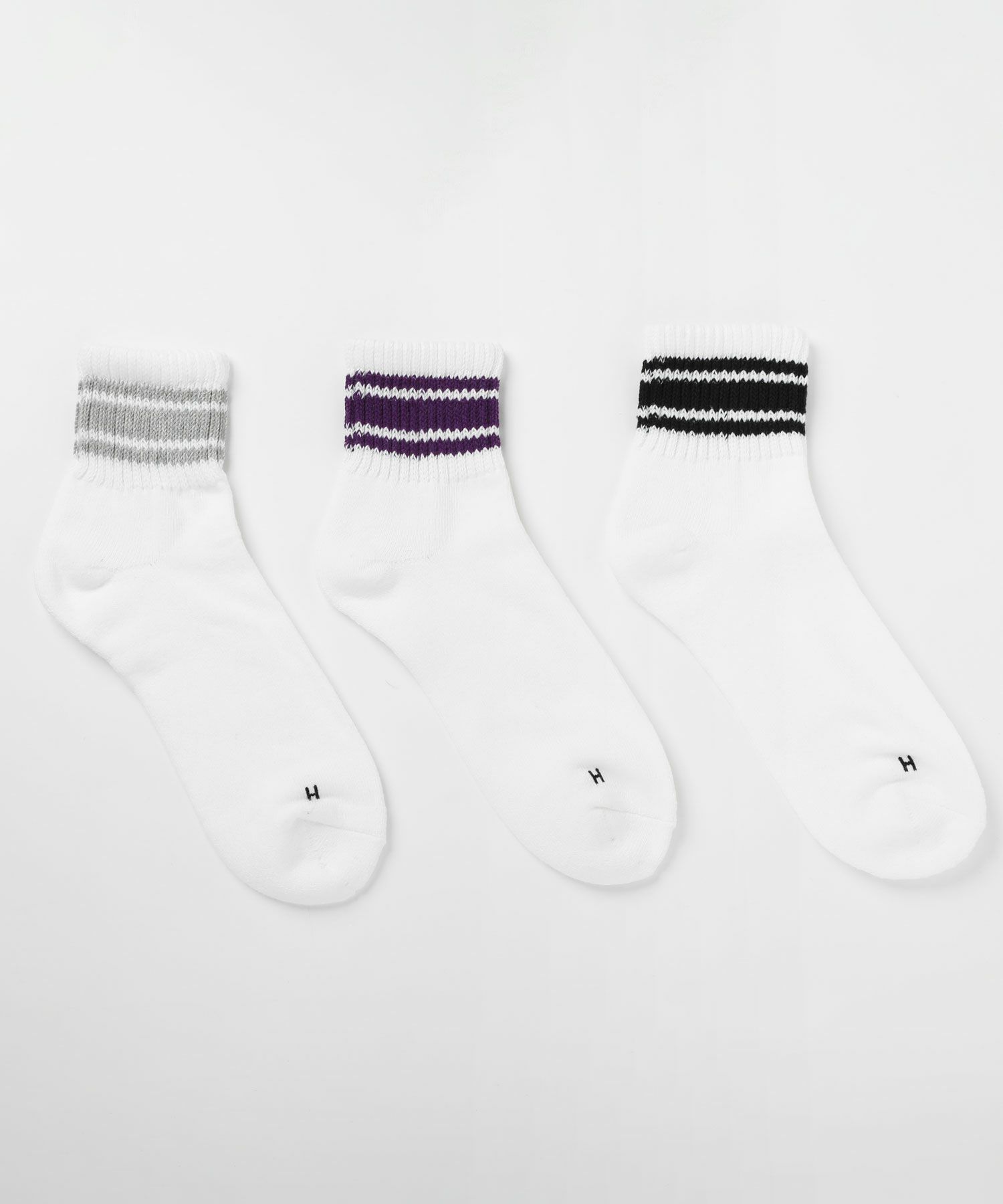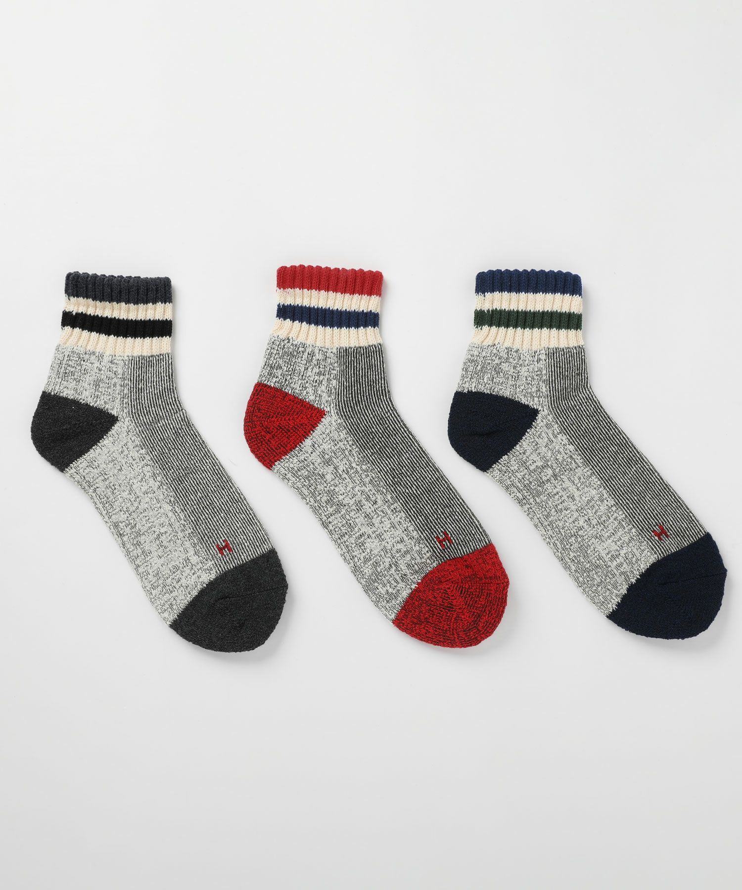 色違いの3足セットでお買い得なのはもちろんのこと、無地ベースのアイテムからスポーティーなライン柄、アウトドアテイストな配色のものまで、幅広いバリエーションというのも嬉しいポイント。